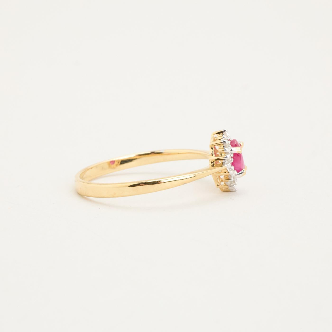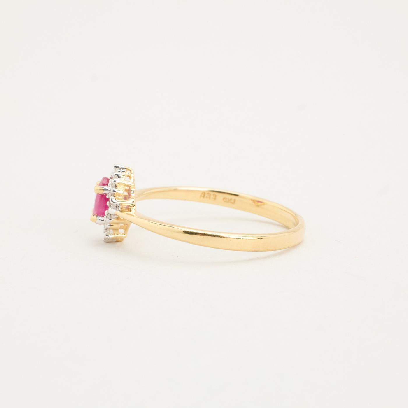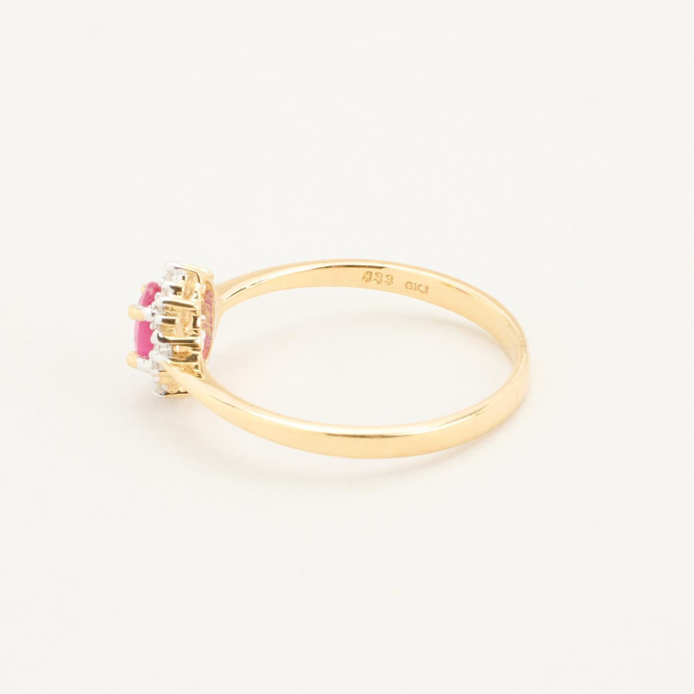 Rosetring i 8K guld og hvidguld med en diamant (0.03 ct) og en rubin, Str. 54