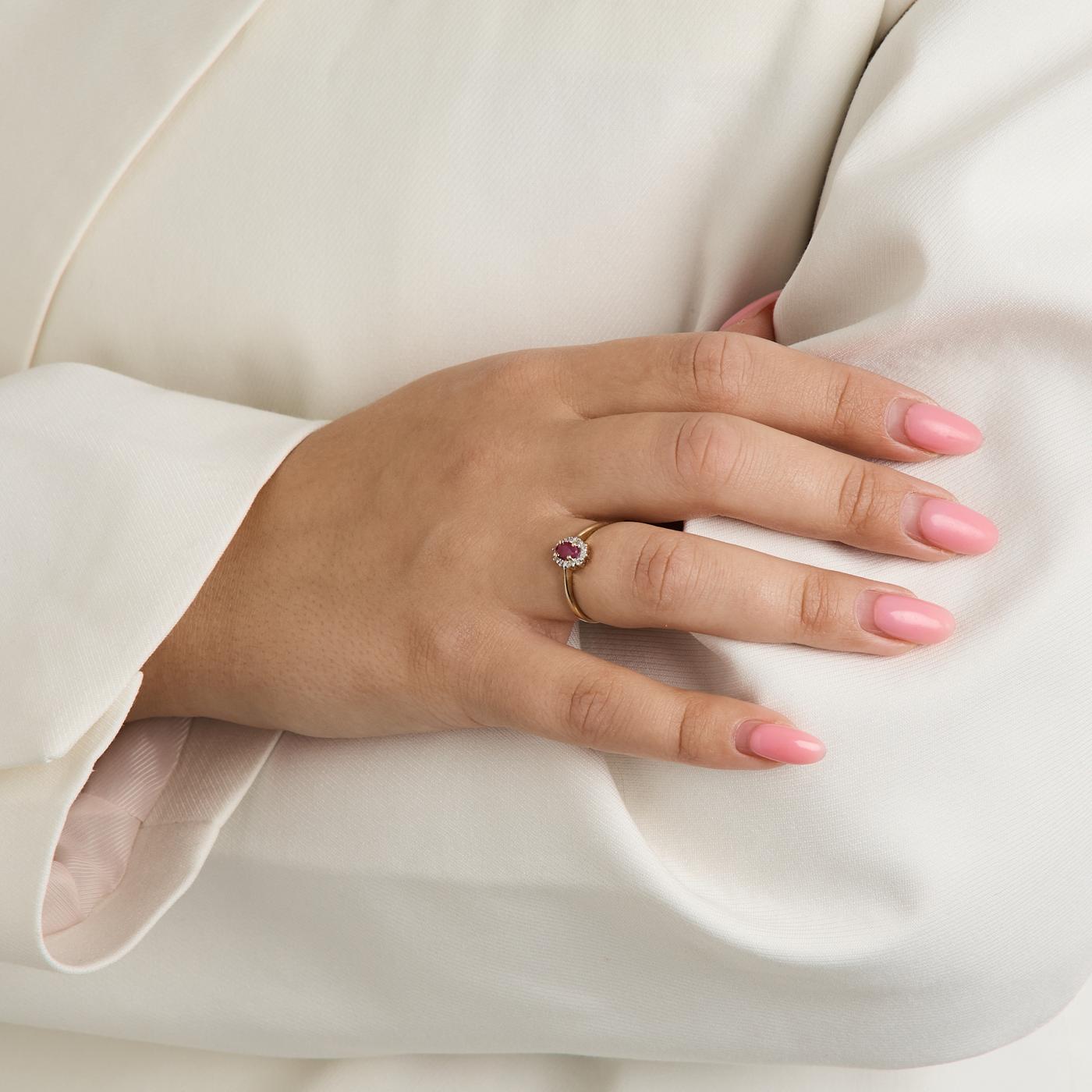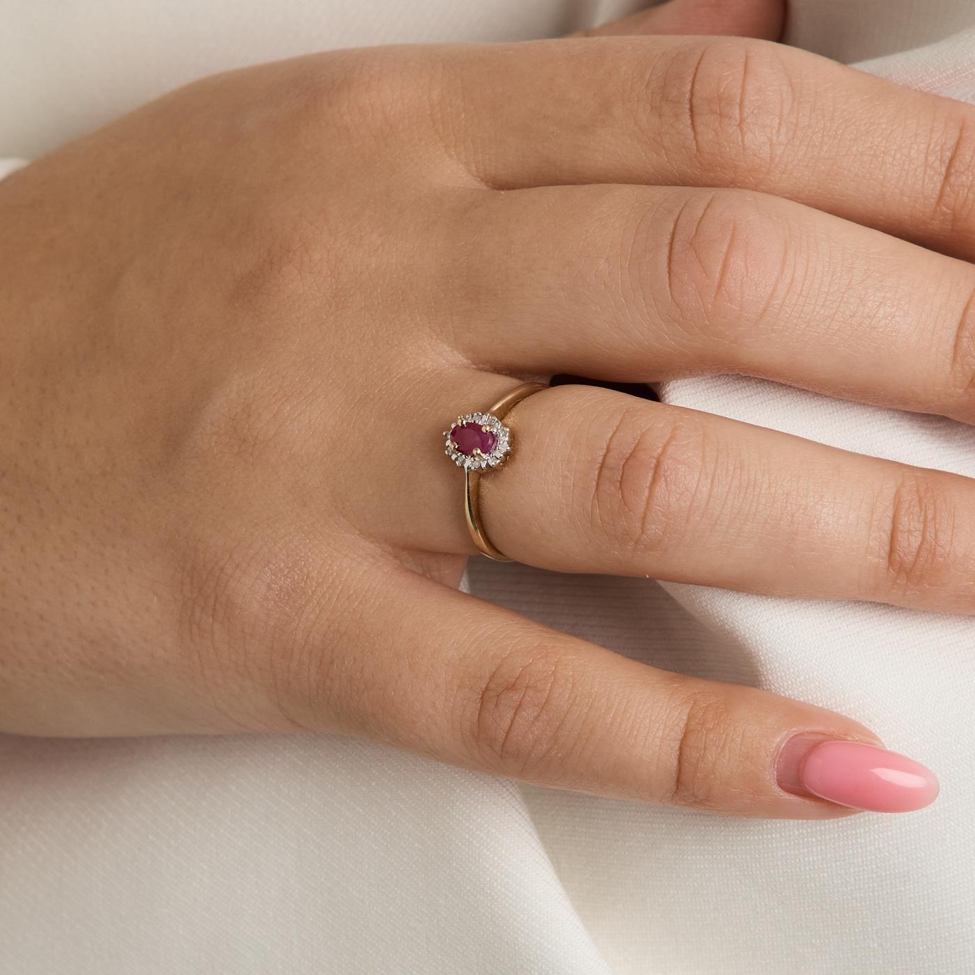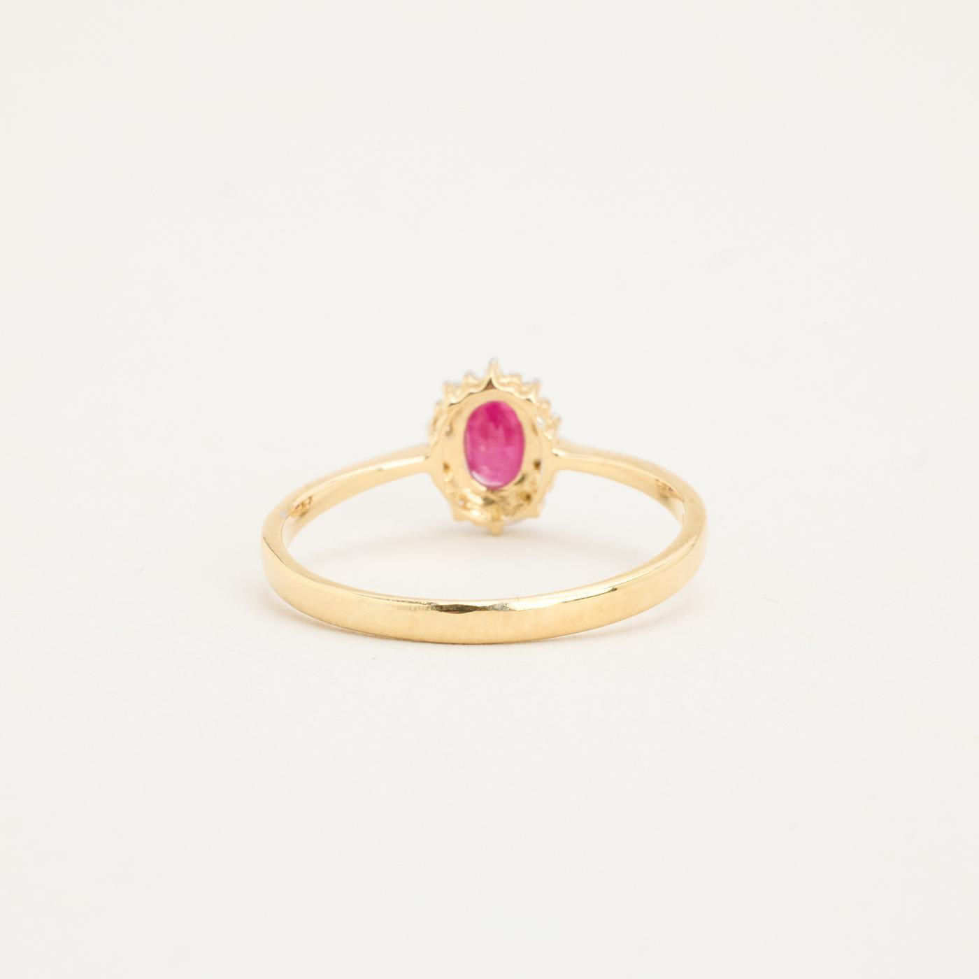 Rosetring i 8K guld og hvidguld med en diamant (0.03 ct) og en rubin, Str. 54