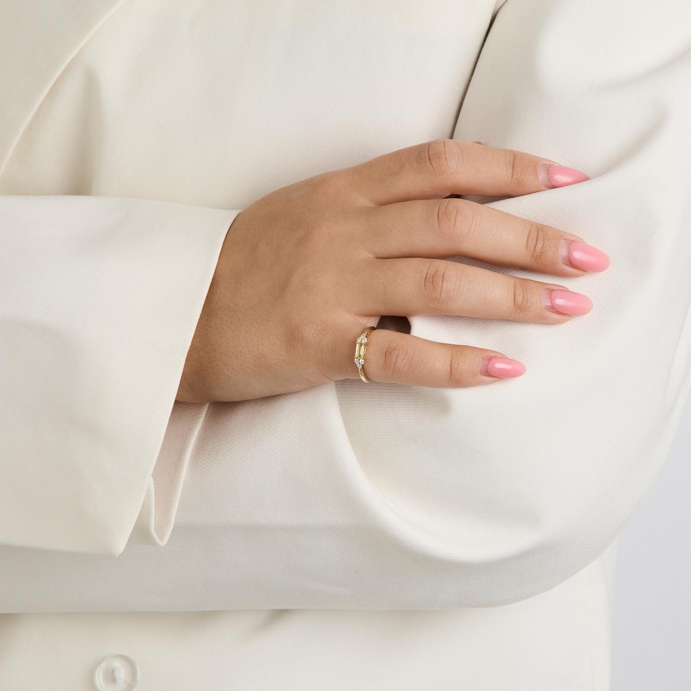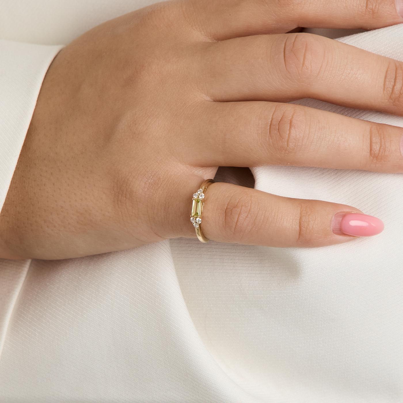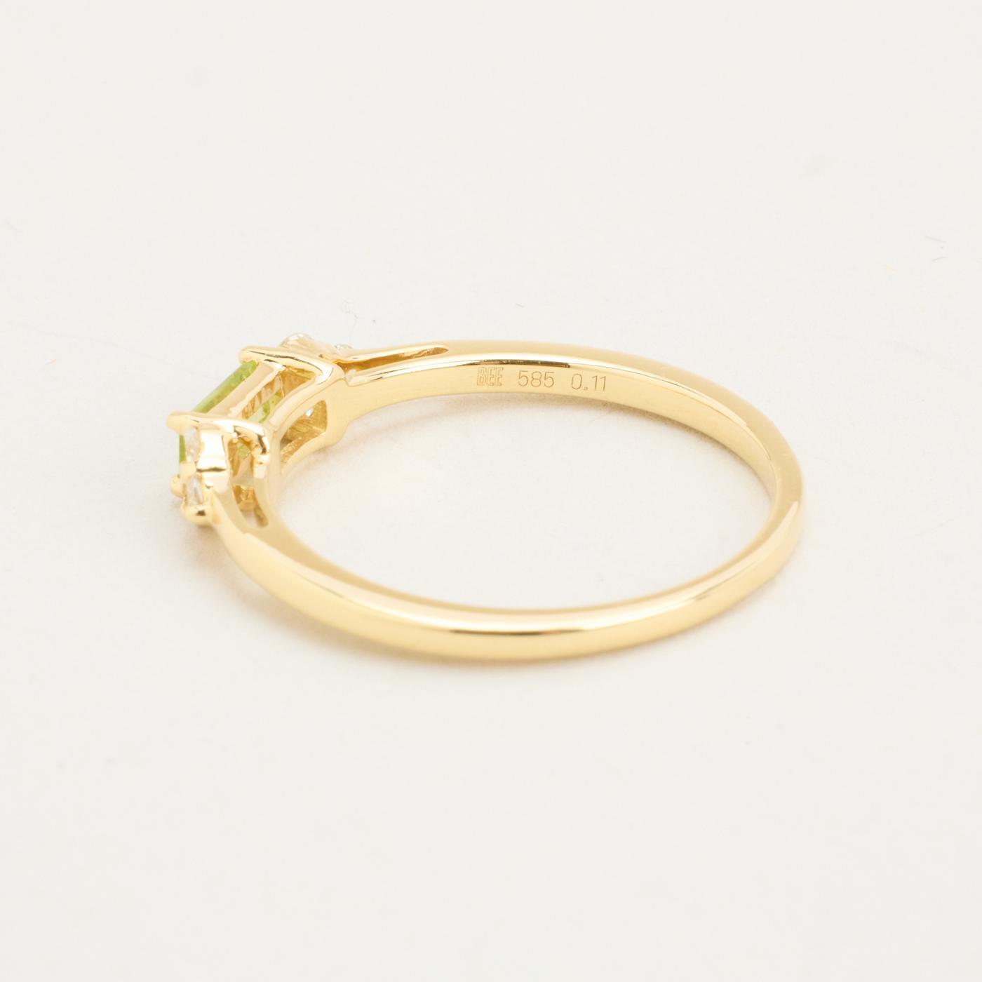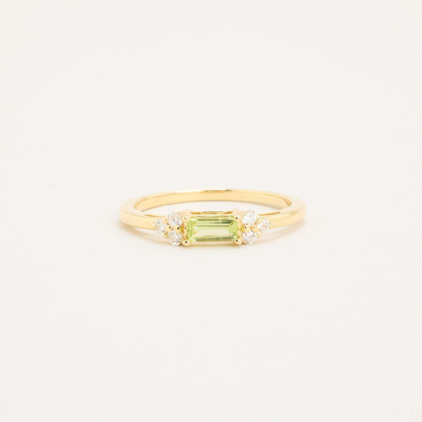 Clusterring i 14K guld med grønne sten og hvide sten (0.09 ct), Str. 50