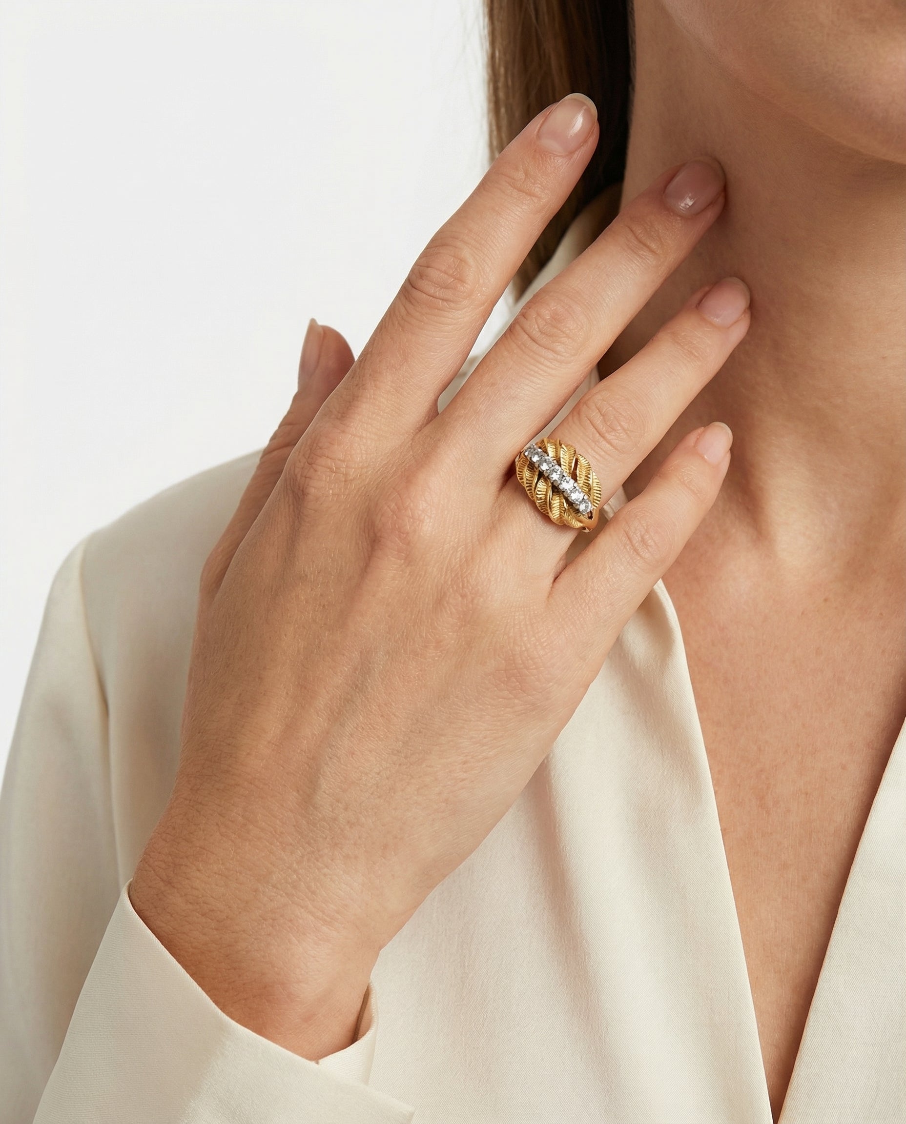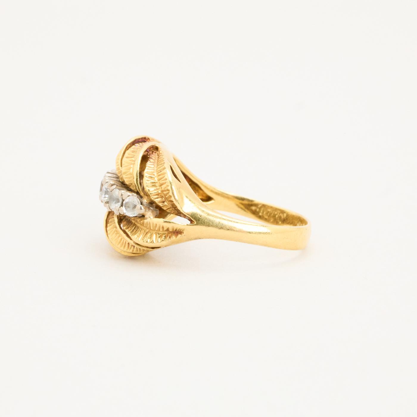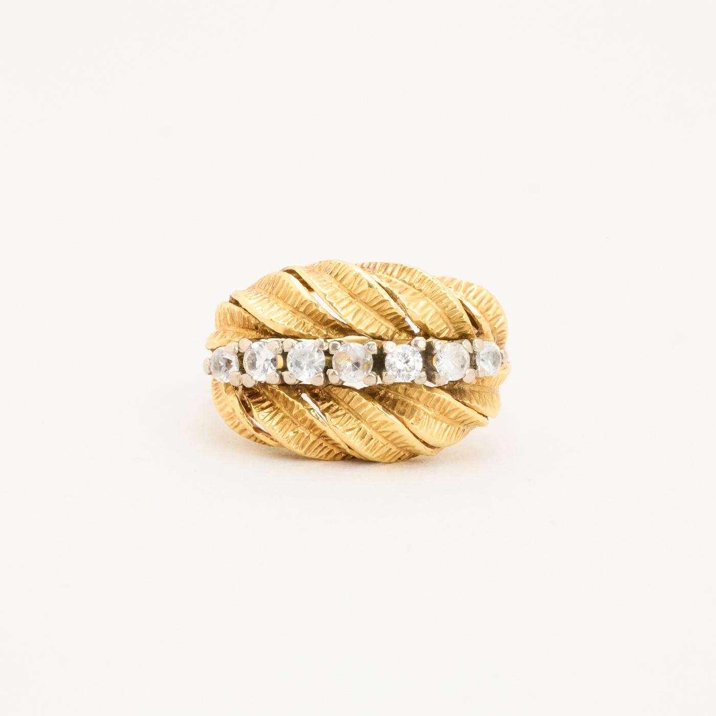 Gypsyring i 18K guld med hvide sten, Str. 56