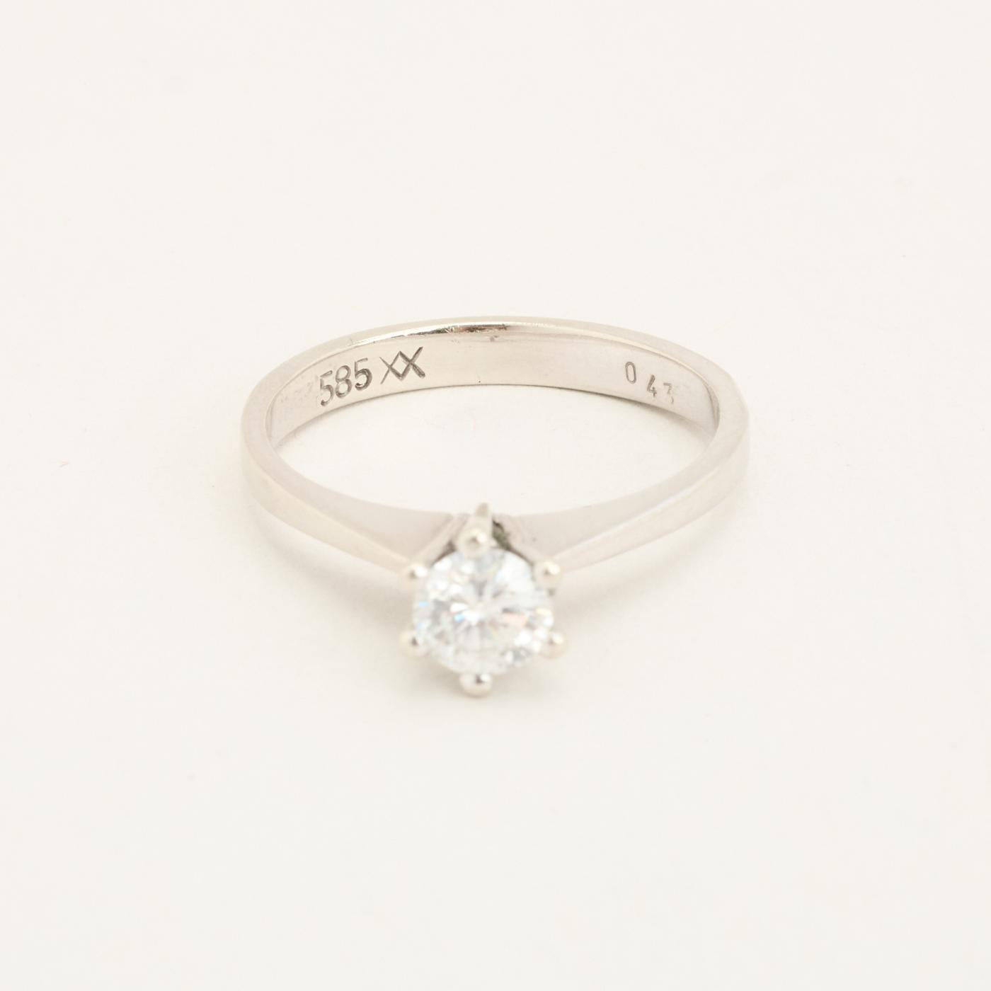 Solitairering med diamant (0.43 ct) i 14 karat str. 52