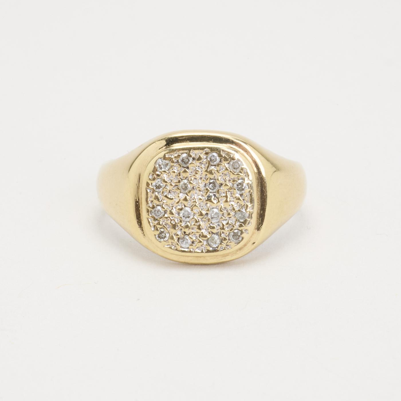 Signetring i 9K guld med diamanter (0.12 ct), Str. 58