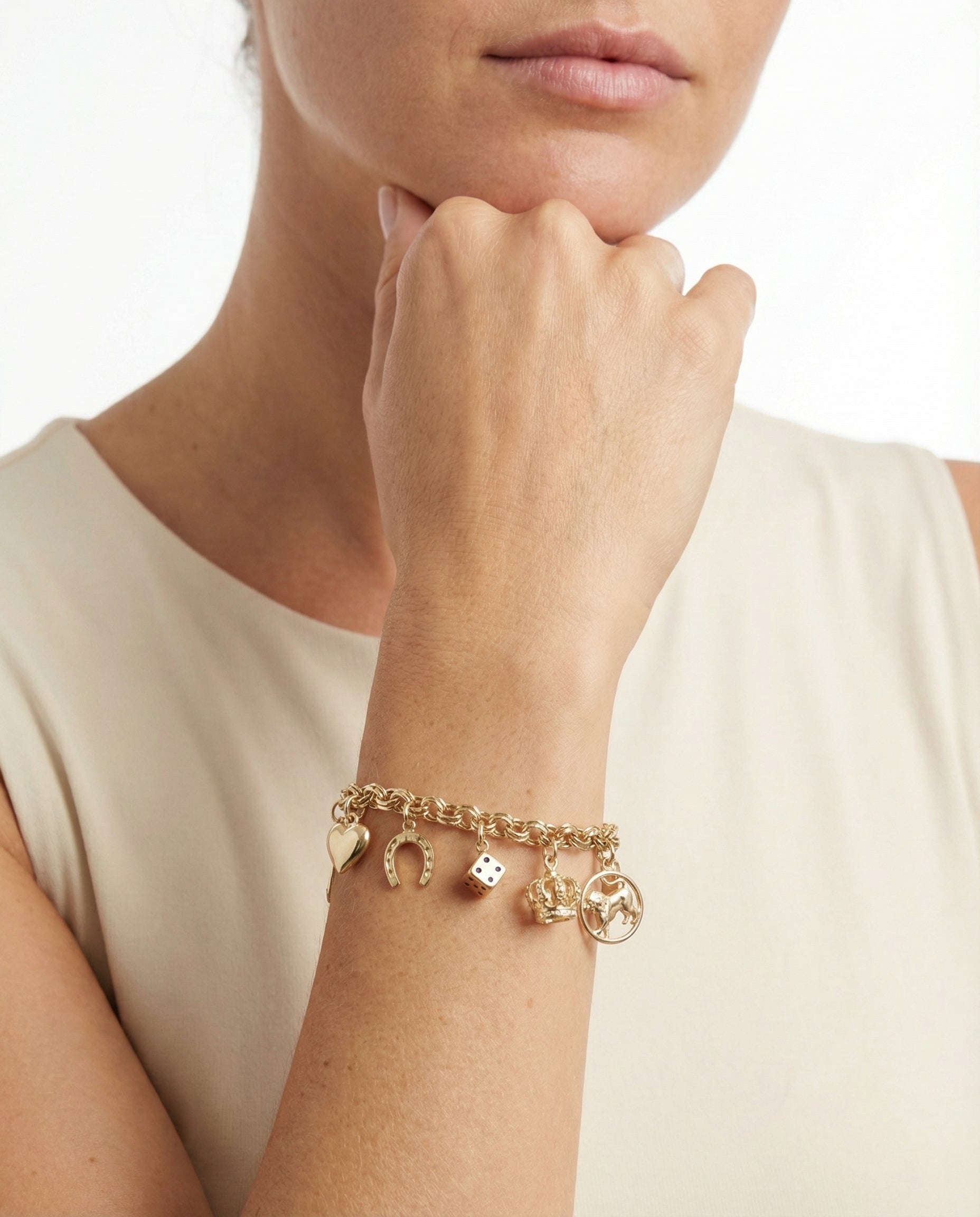 Bismark Charm-armbånd i 14K guld, 20.5 cm, 14 g