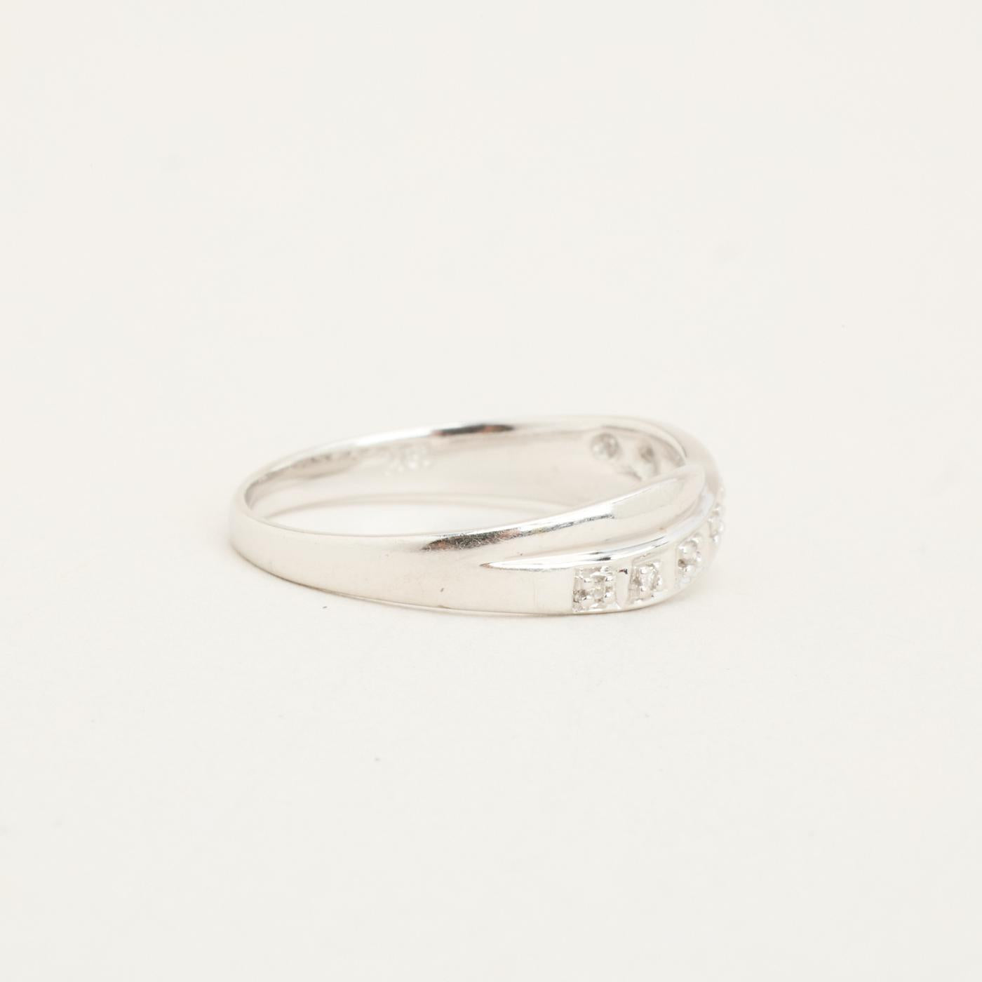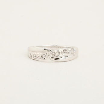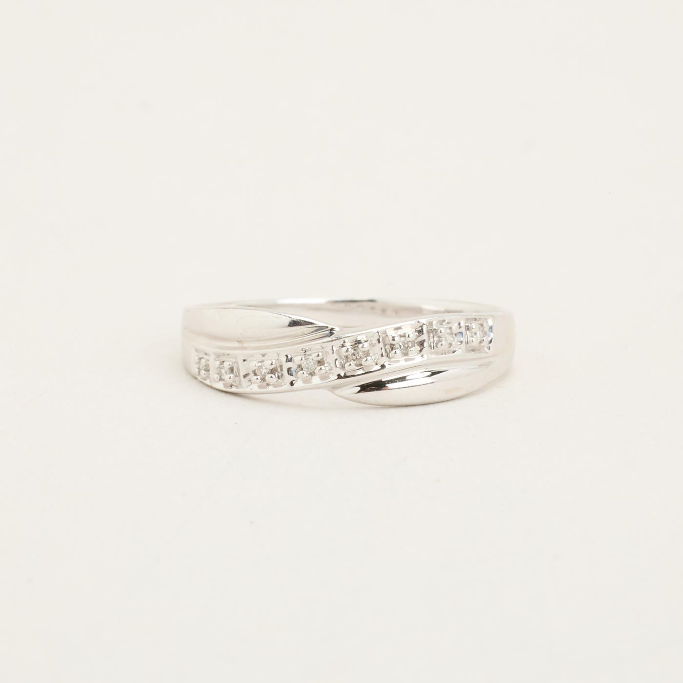 Crossoverring i 18K hvidguld med diamanter (0.03 ct), Str. 55
