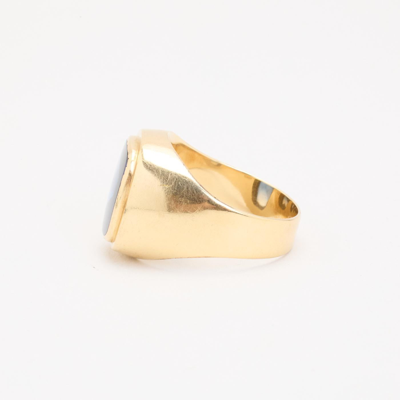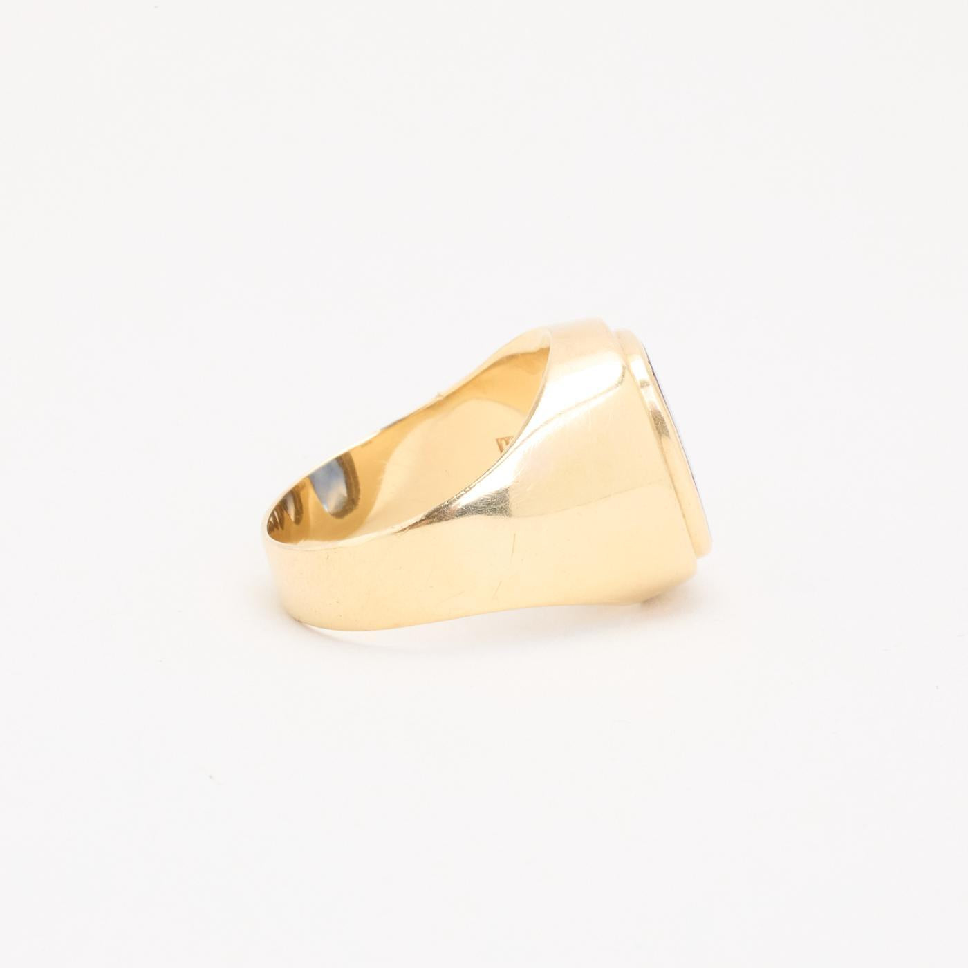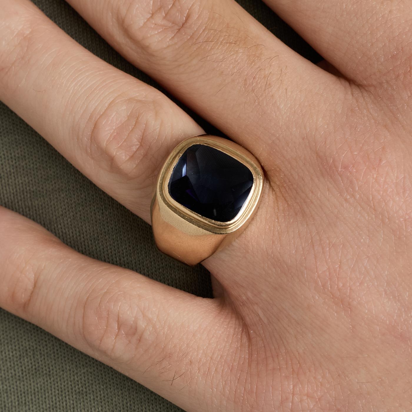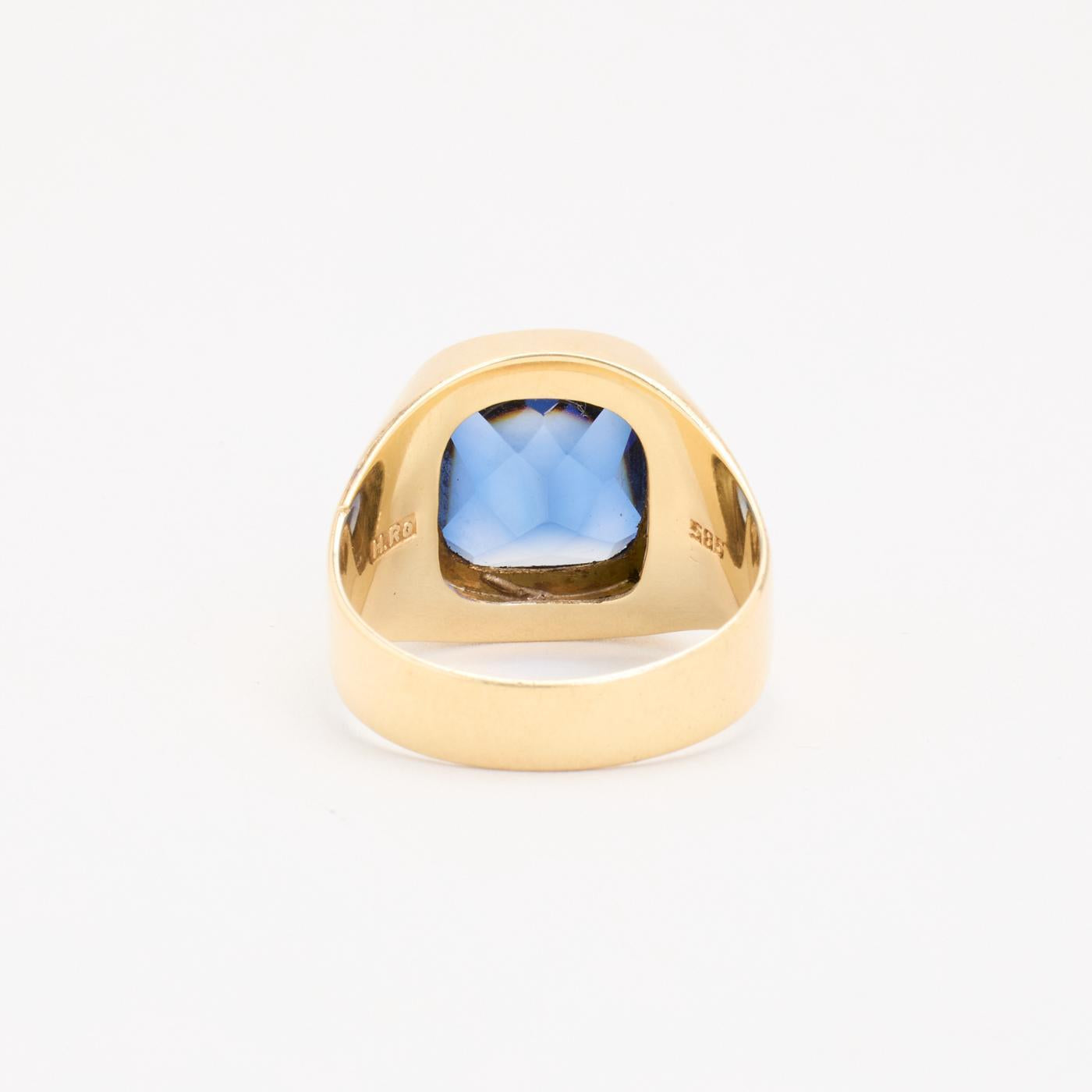 Signetring i 14K guld med blå sten, Str. 65