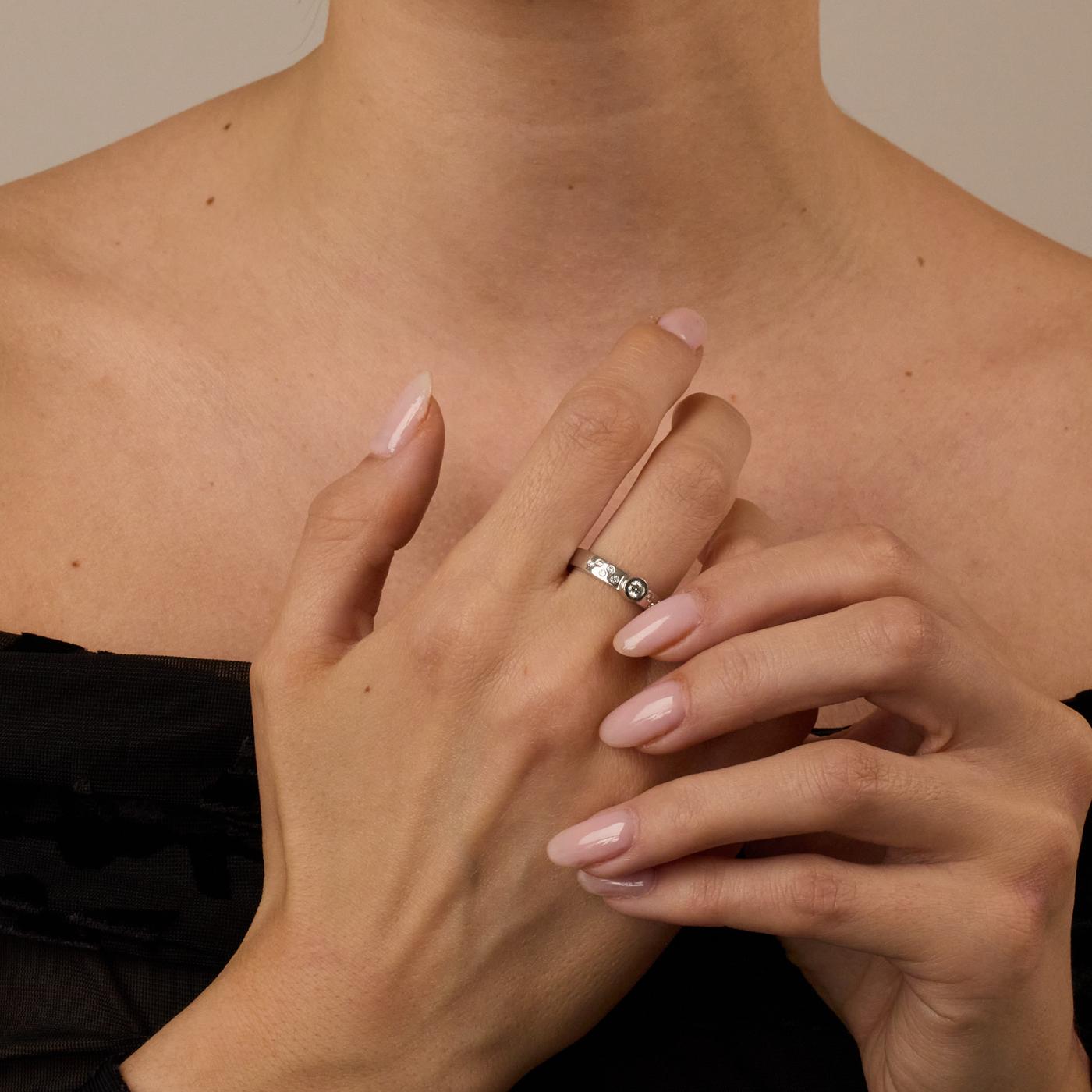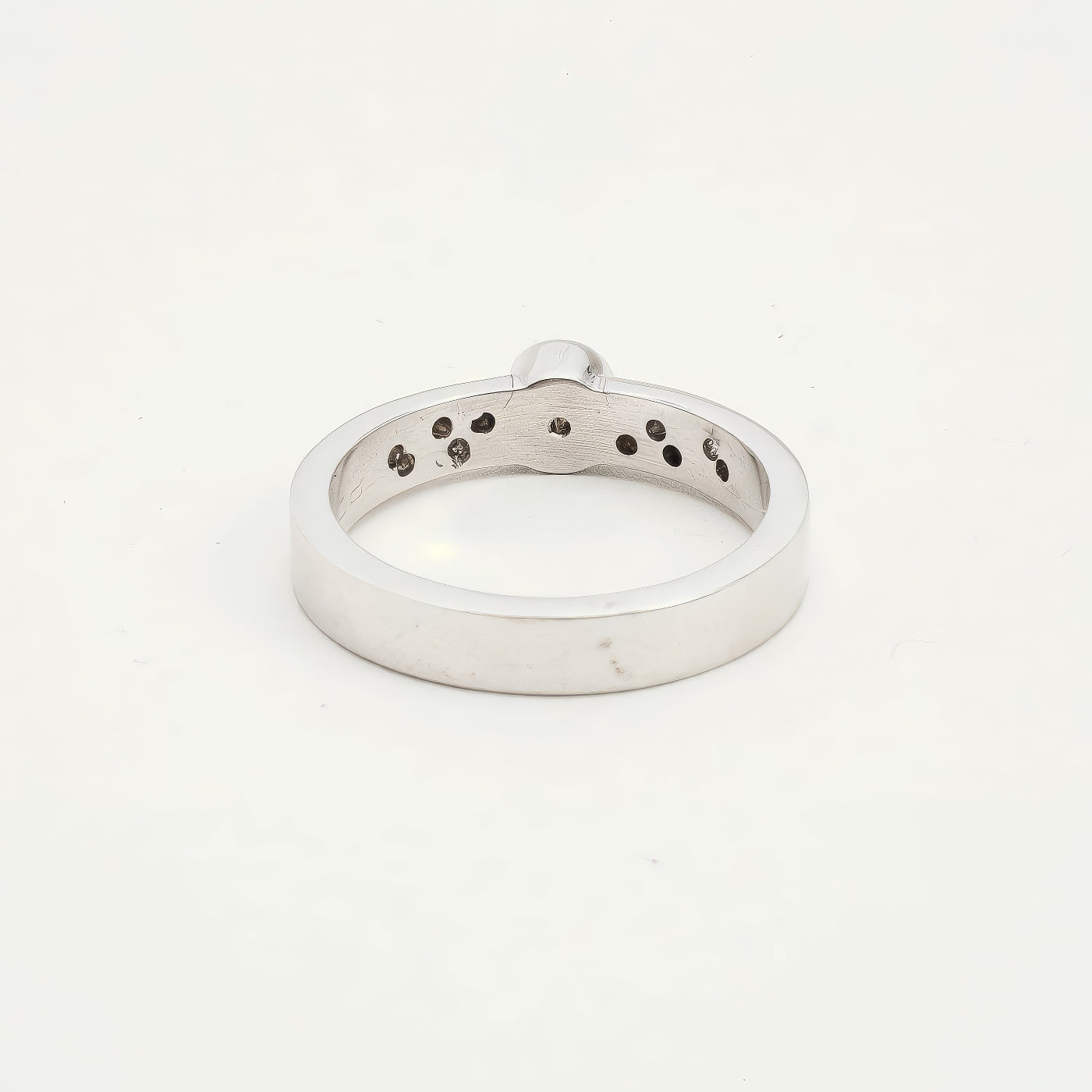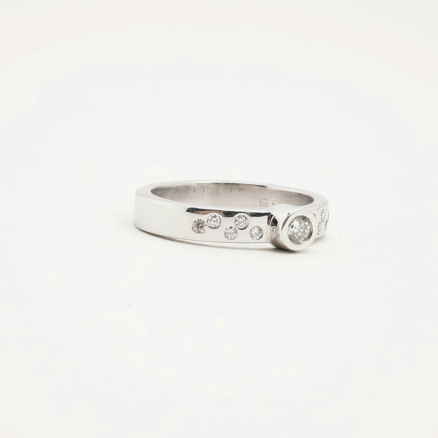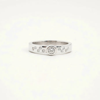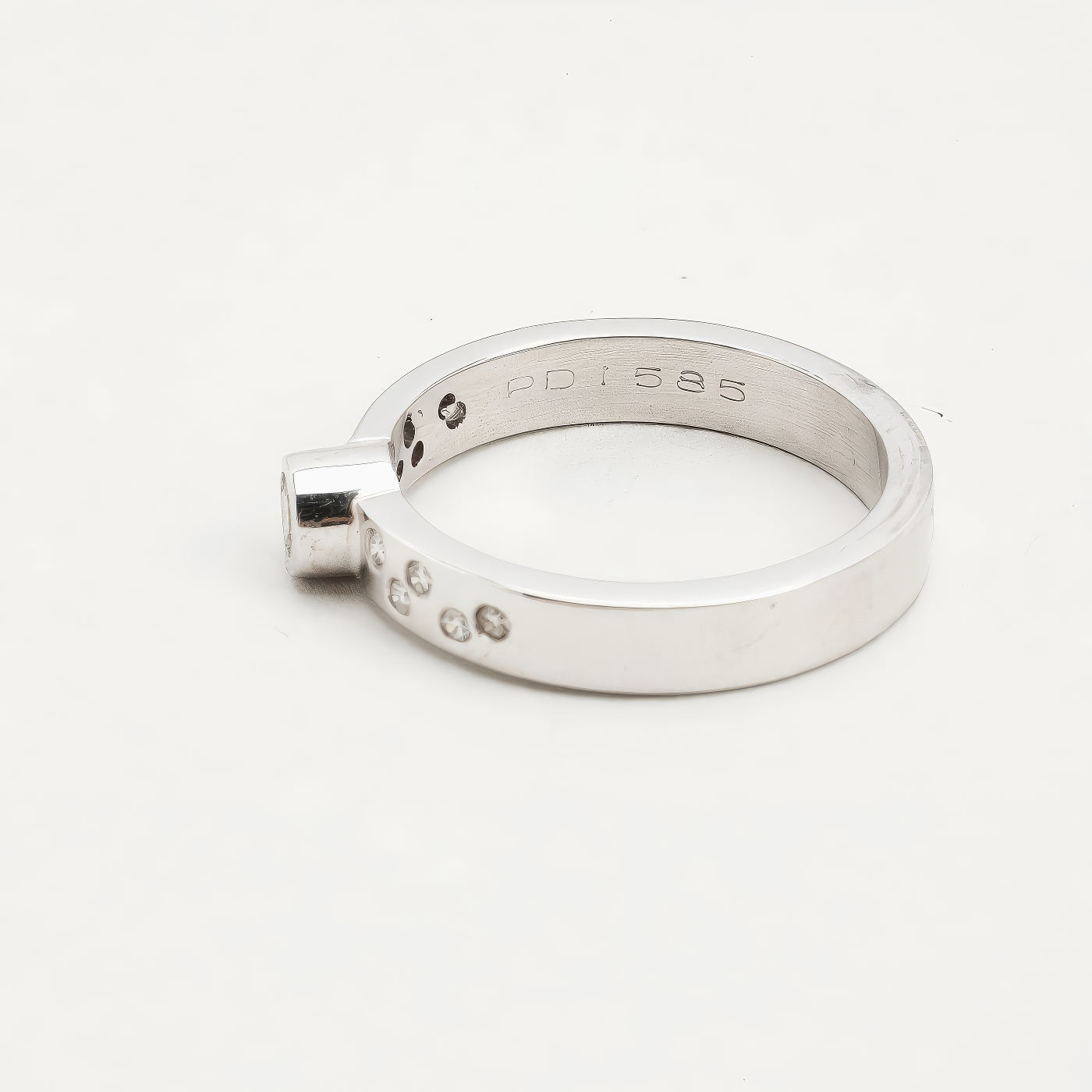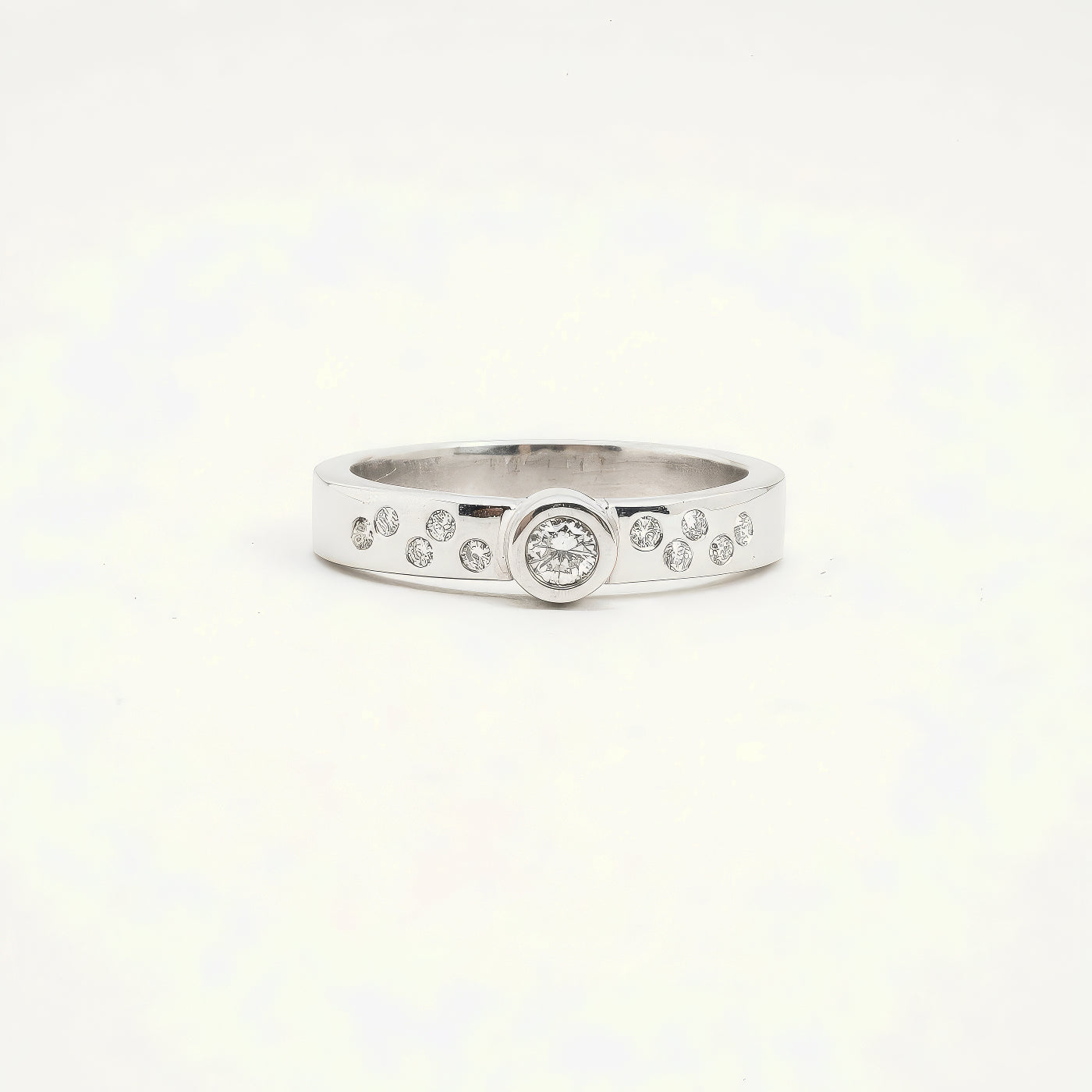 Solitaire ring i 14K hvidguld med diamanter (0,2 ct), bezel-fatning, Str. 53