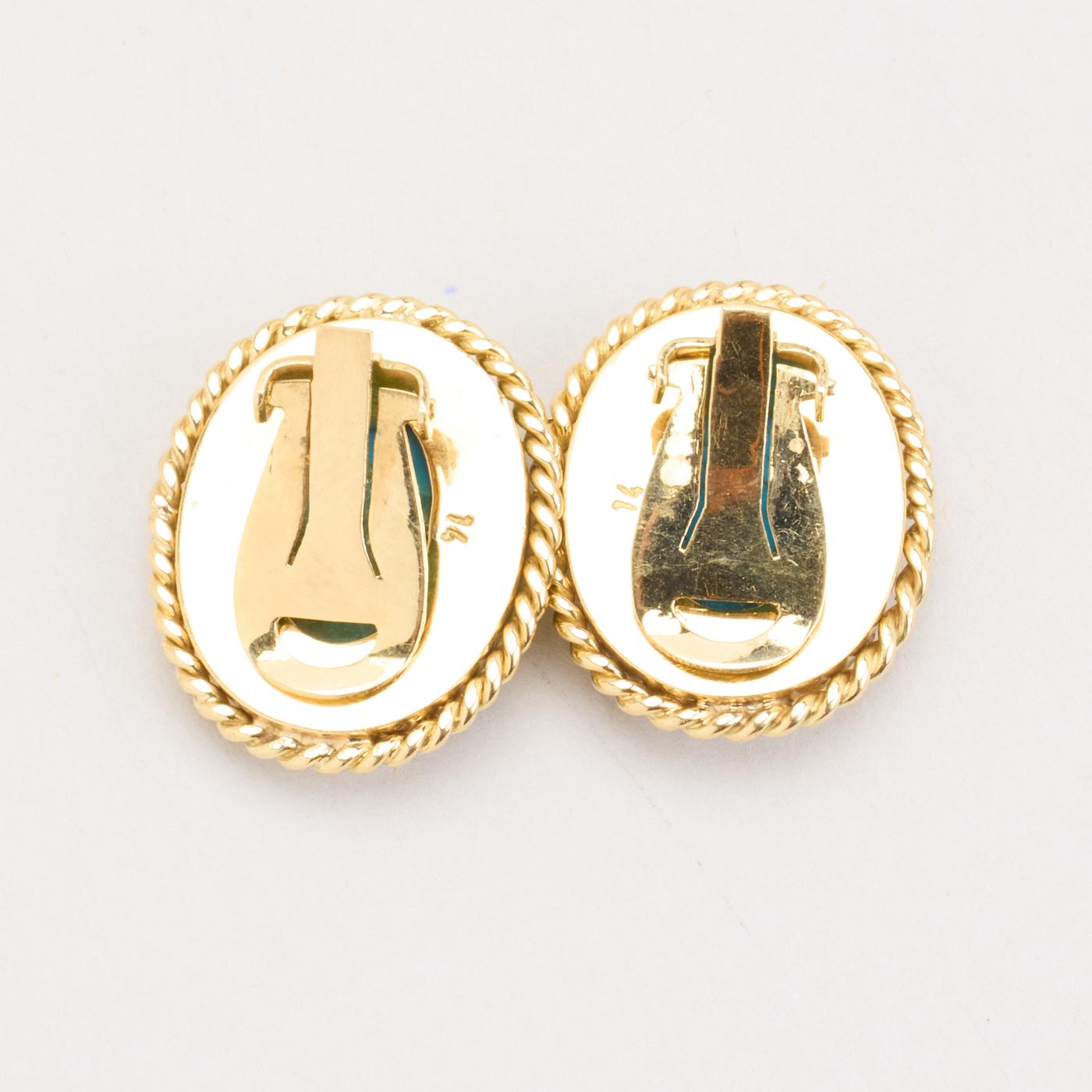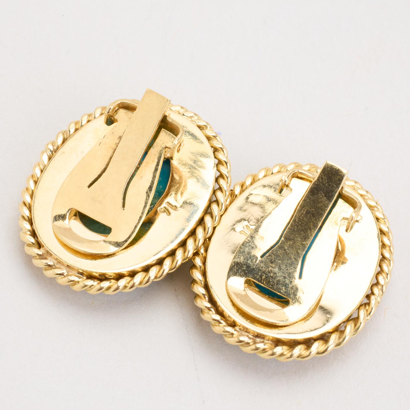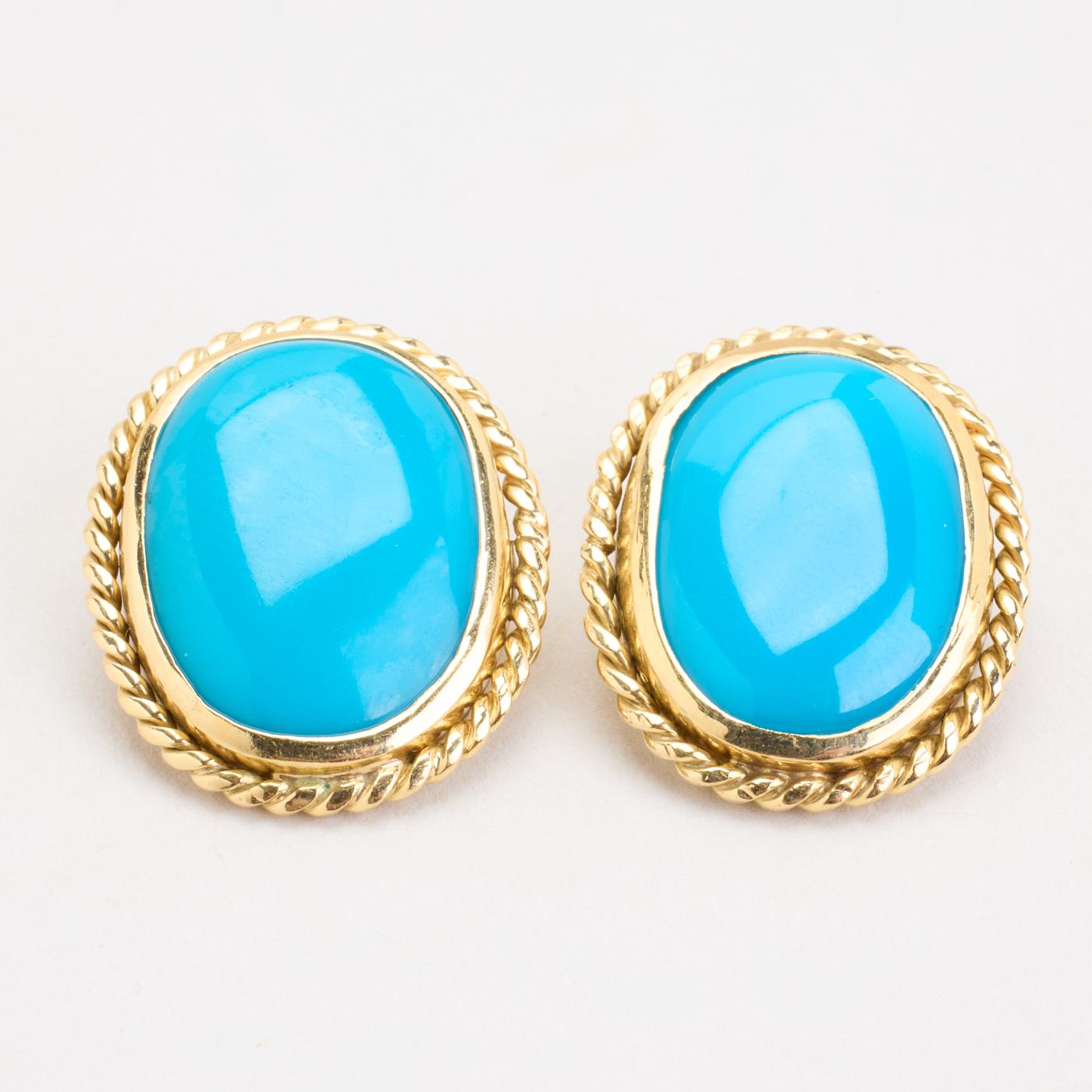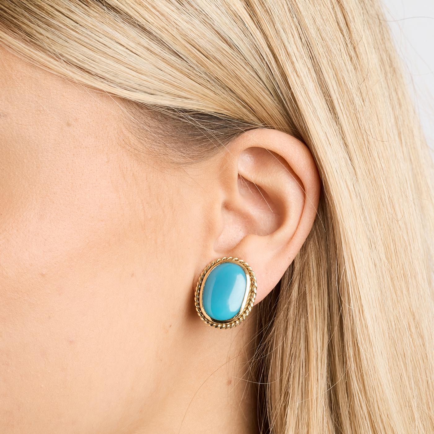 Øreklemmer i 14K guld med flere turkiser, 2.2 cm
