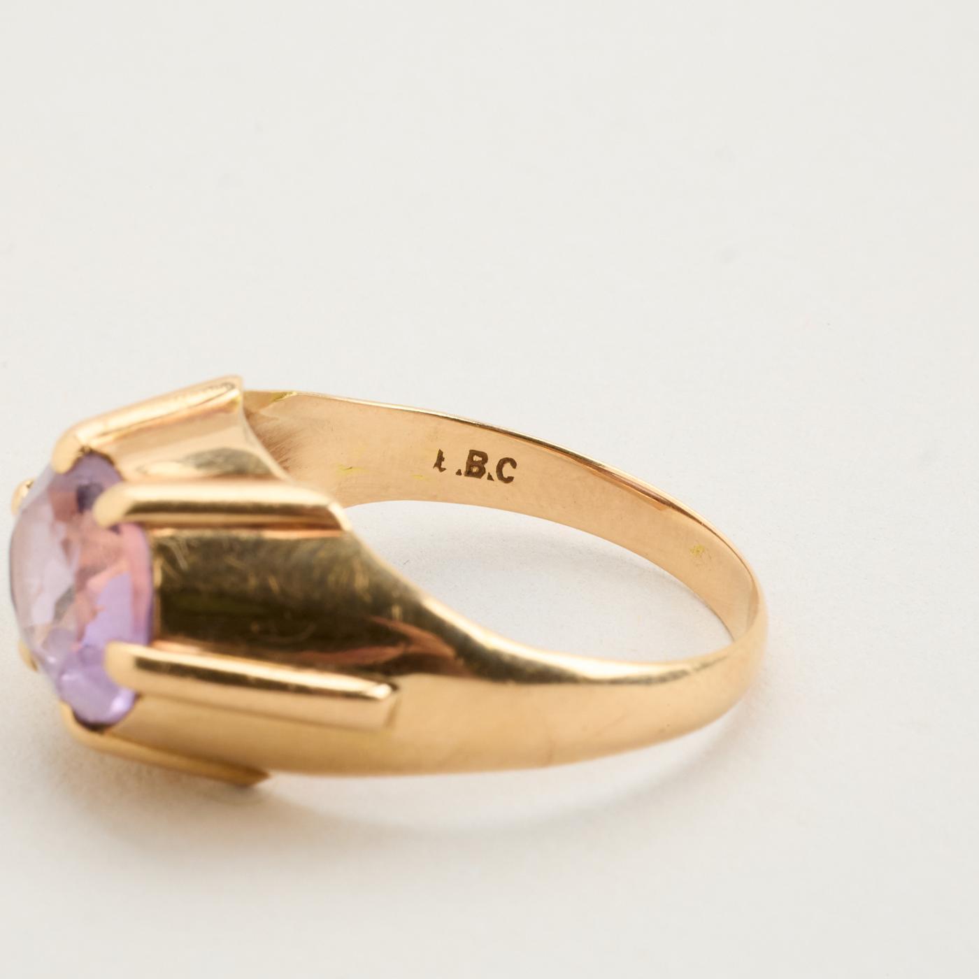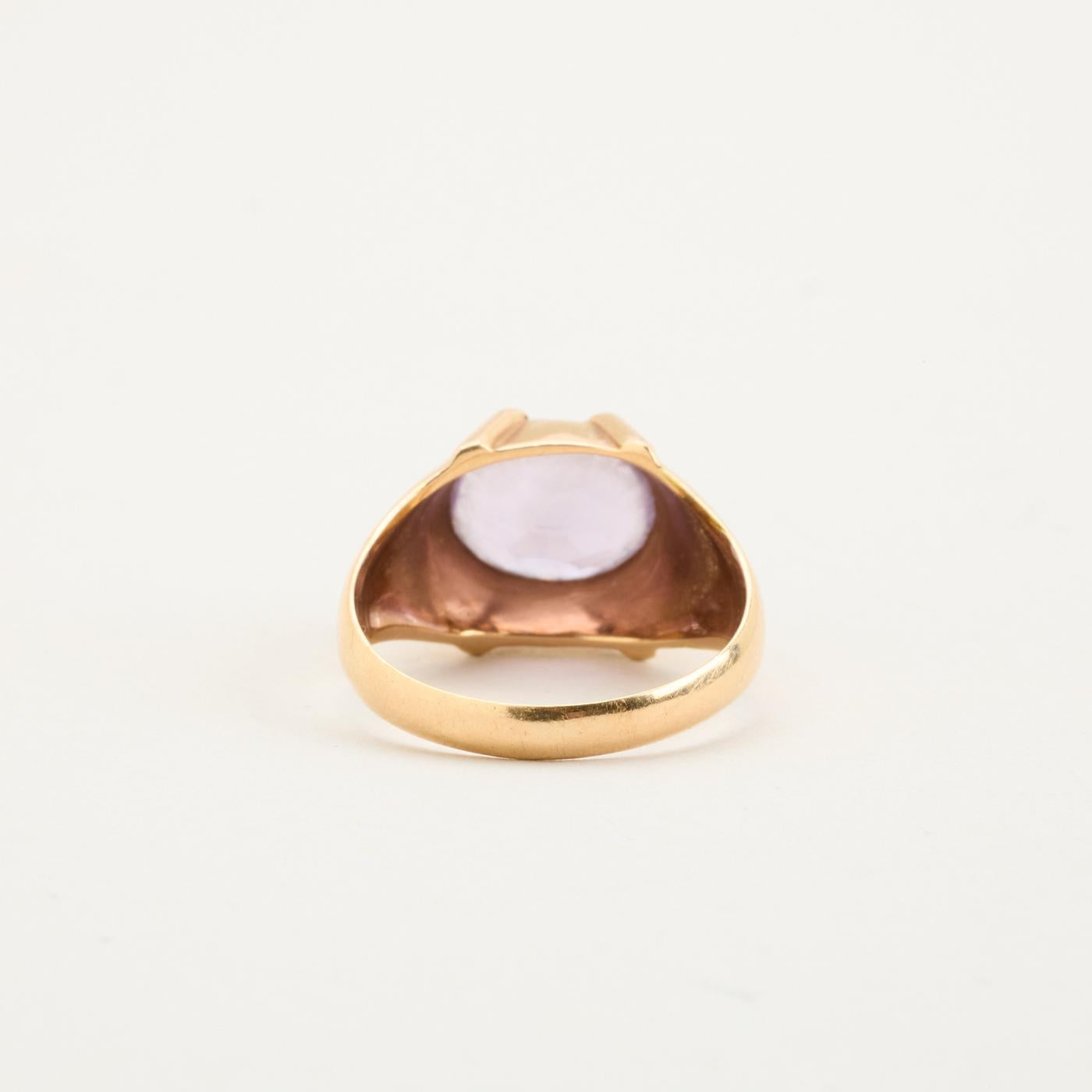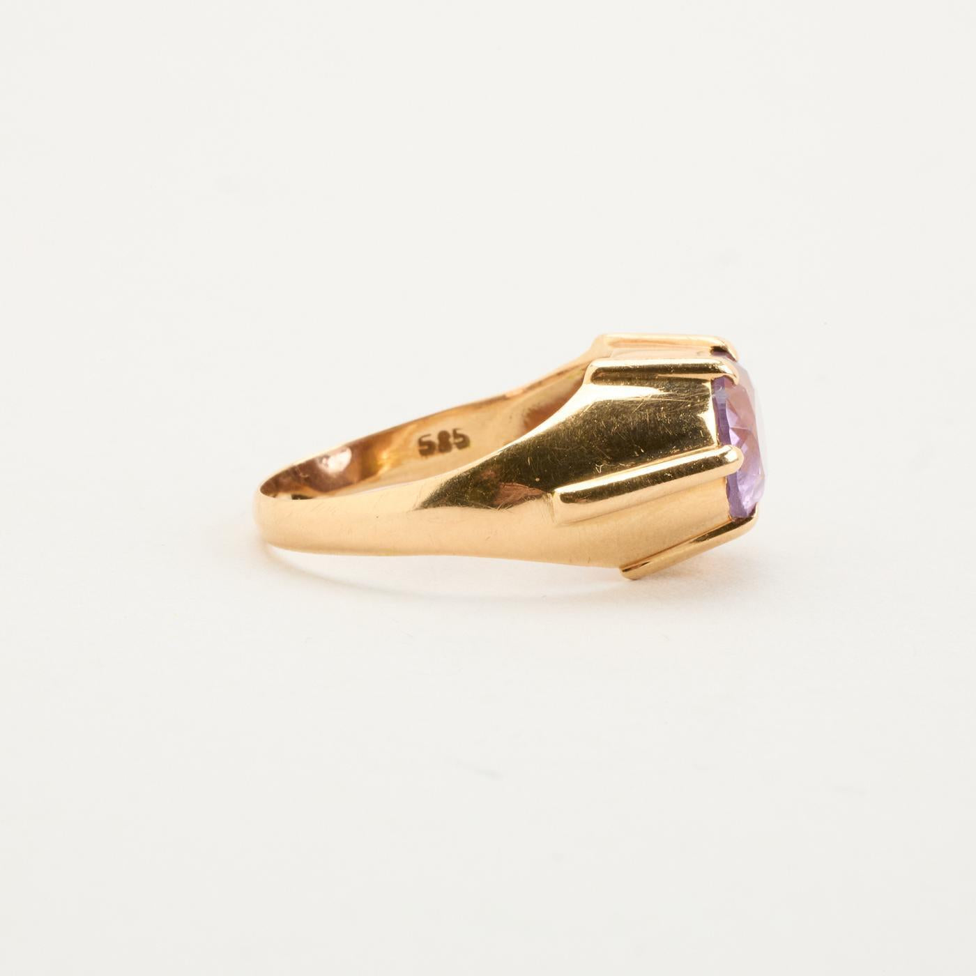 Signetring i 14K guld med lyse lilla sten, Str. 53