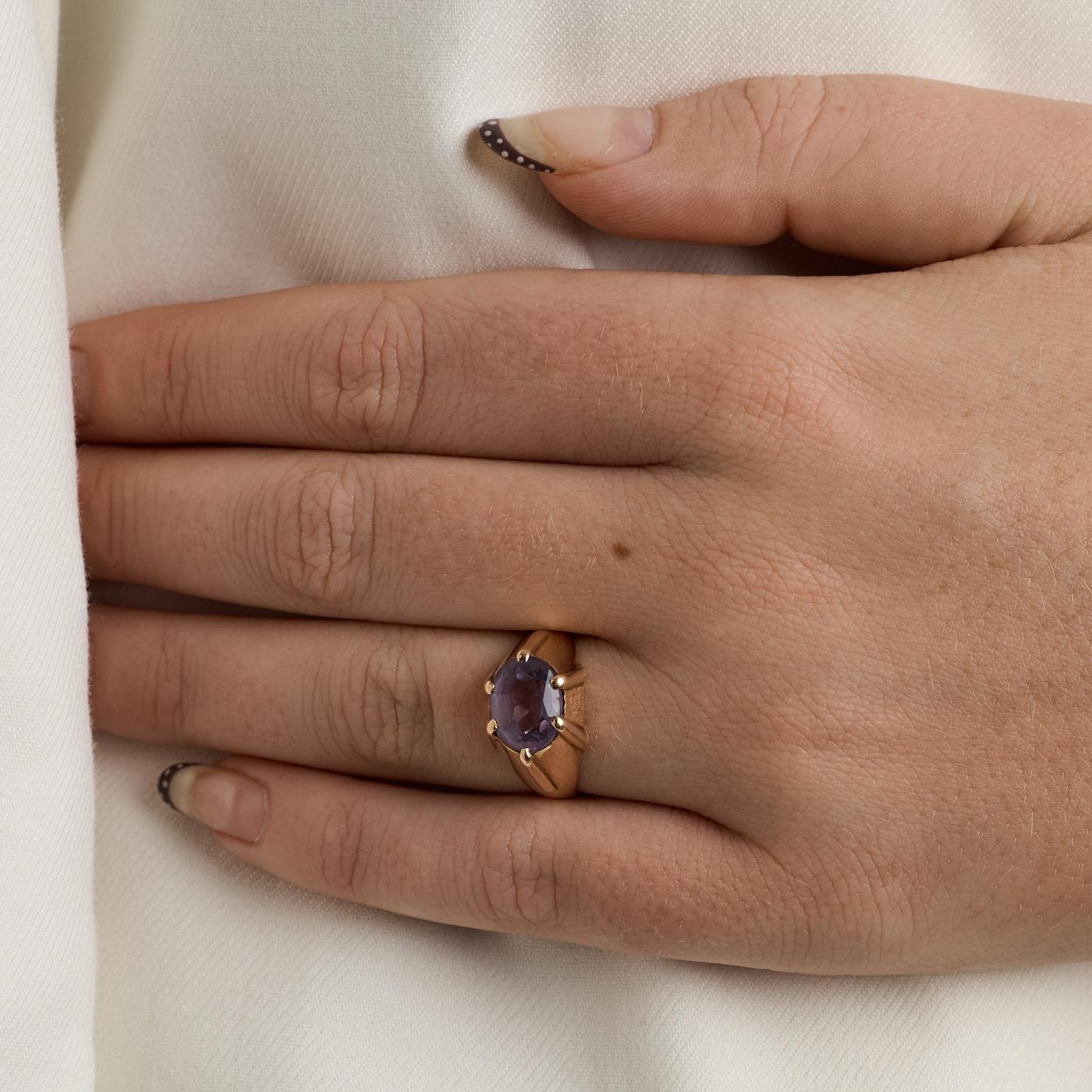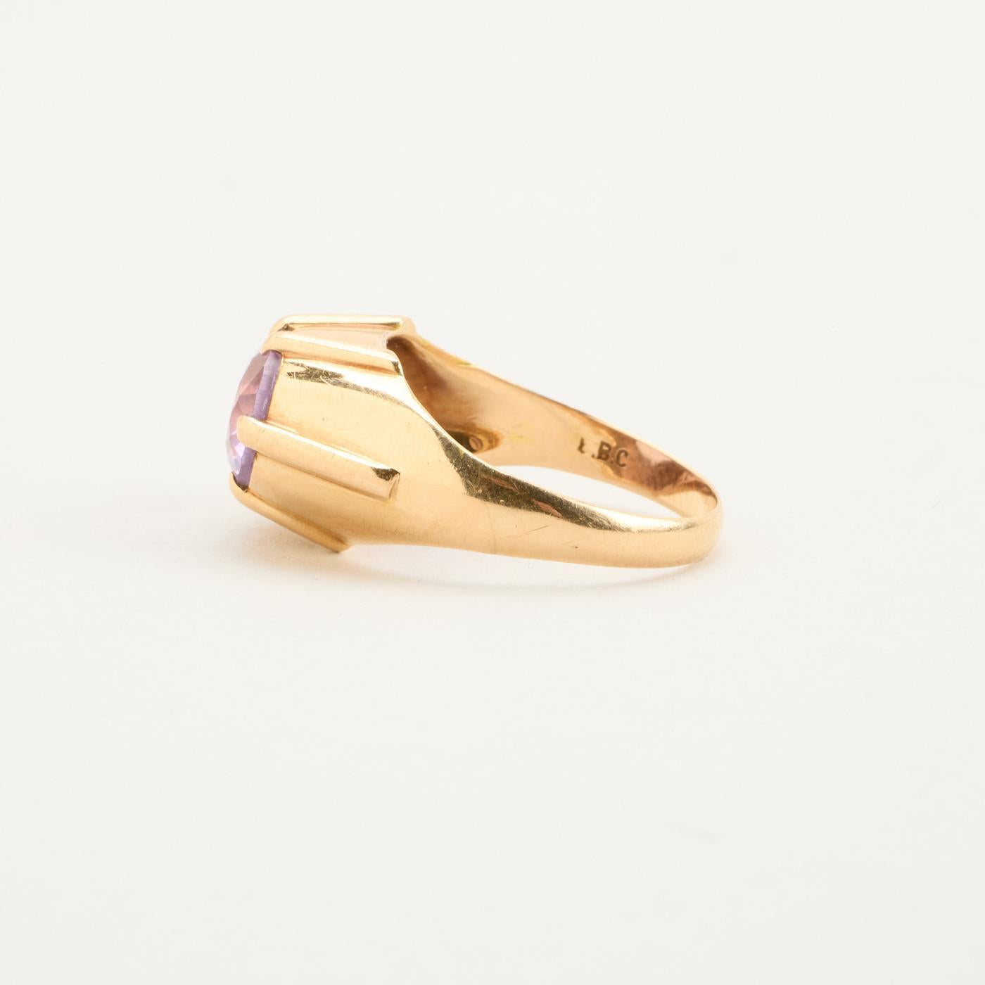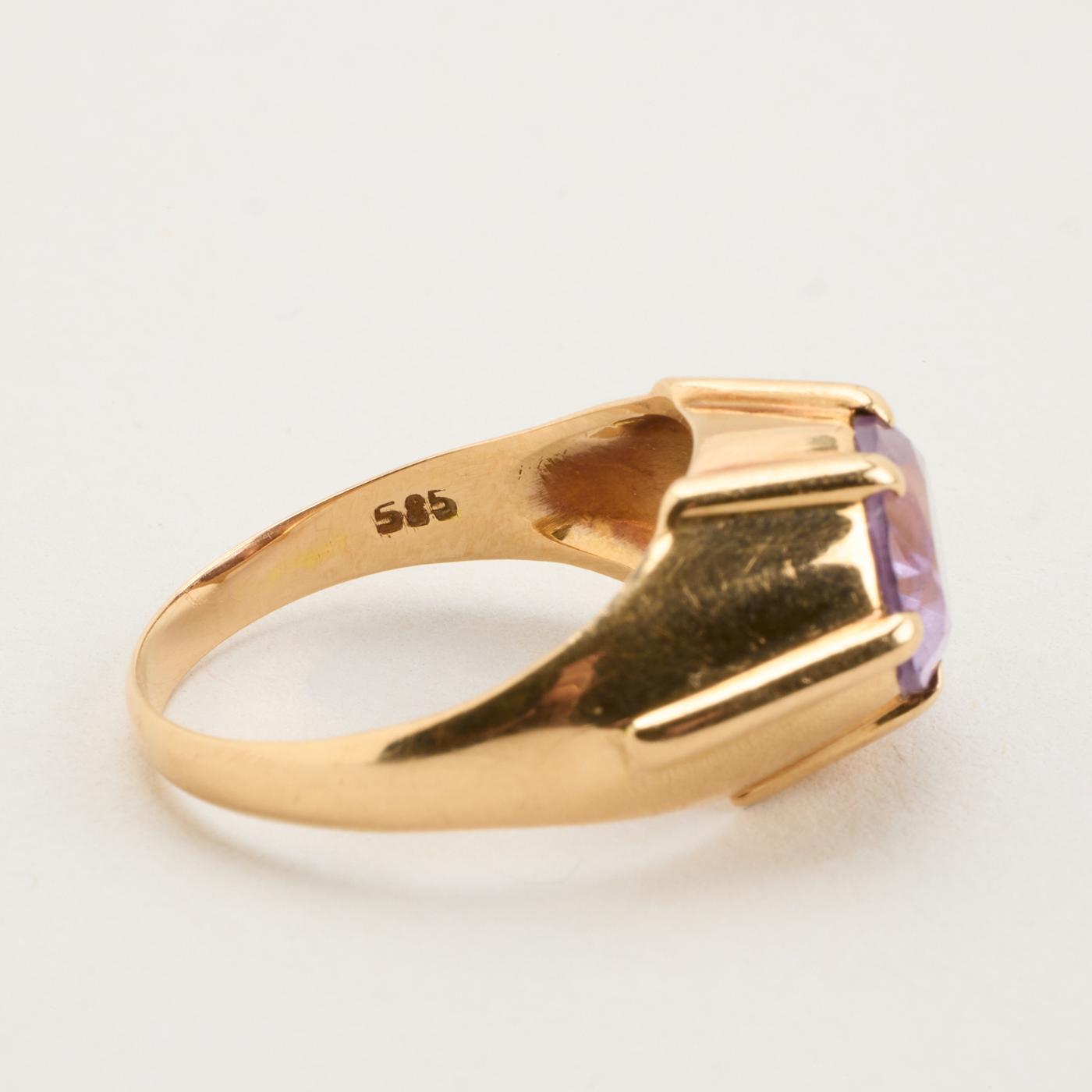 Signetring i 14K guld med lyse lilla sten, Str. 53