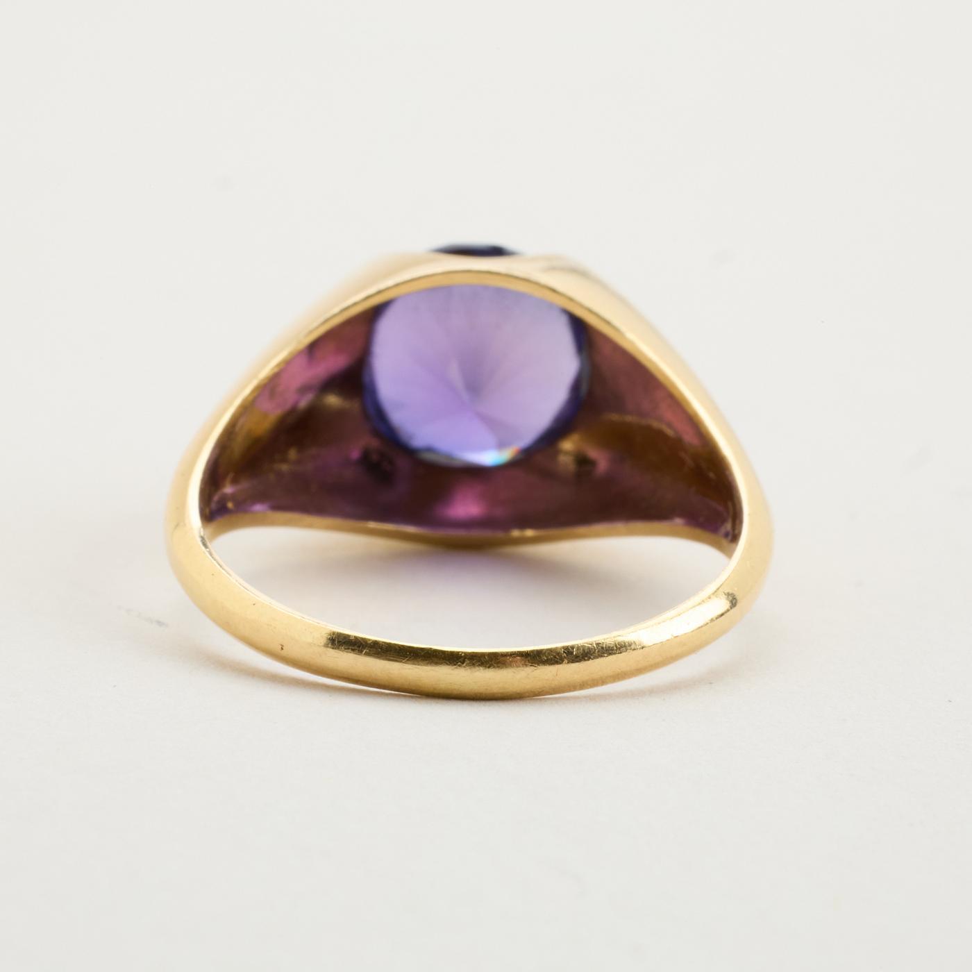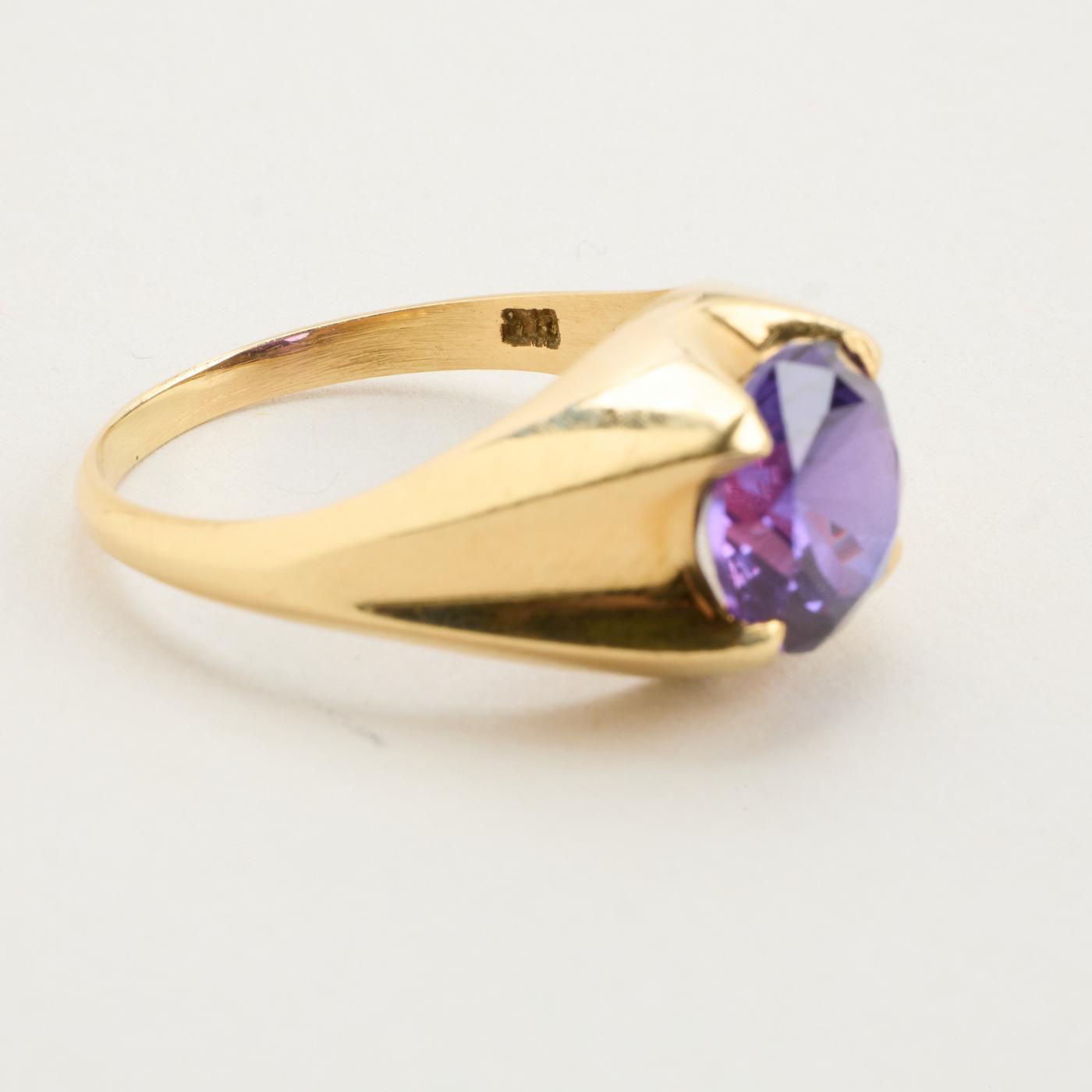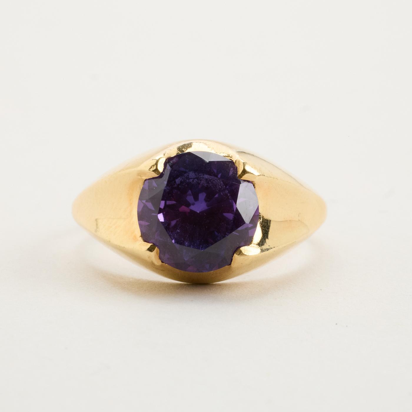 Signetring i 14K guld med lilla sten, Str. 63