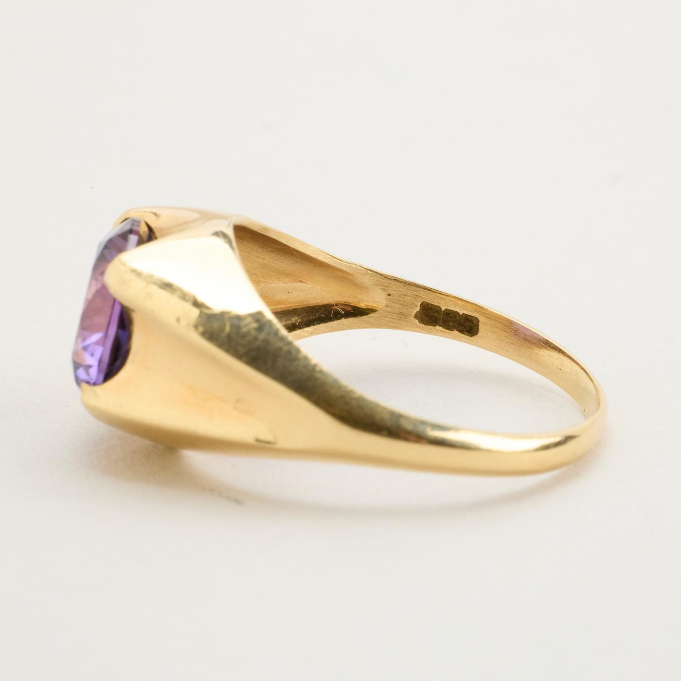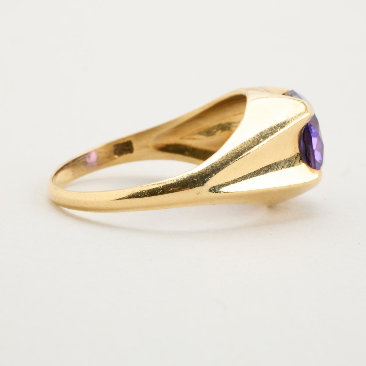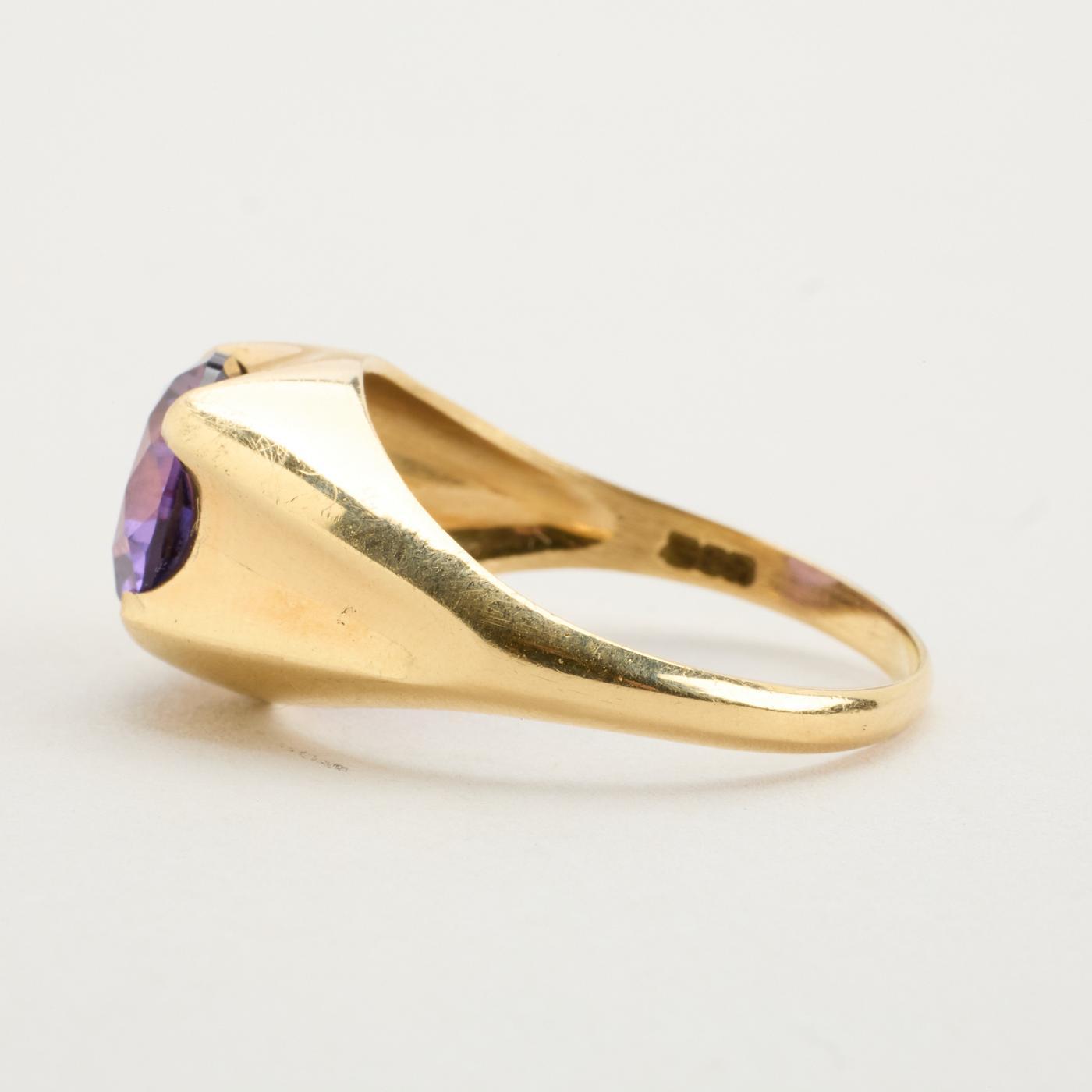 Signetring i 14K guld med lilla sten, Str. 63