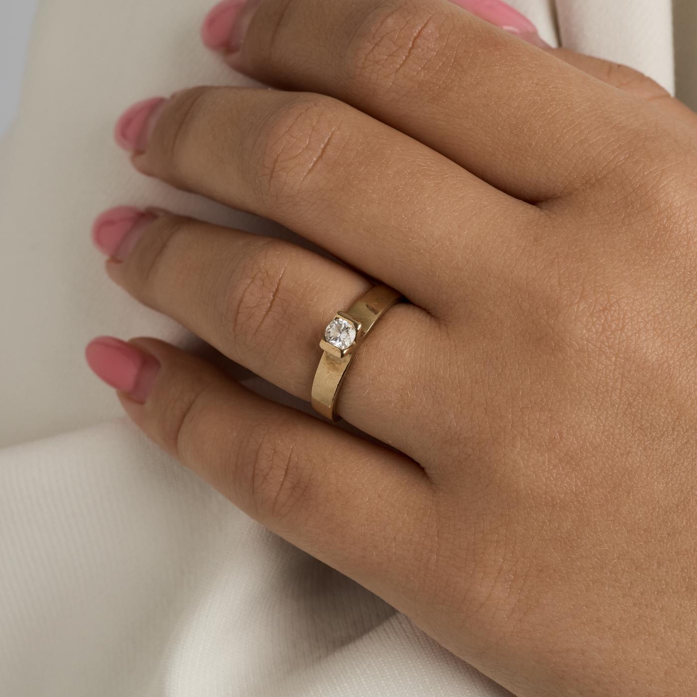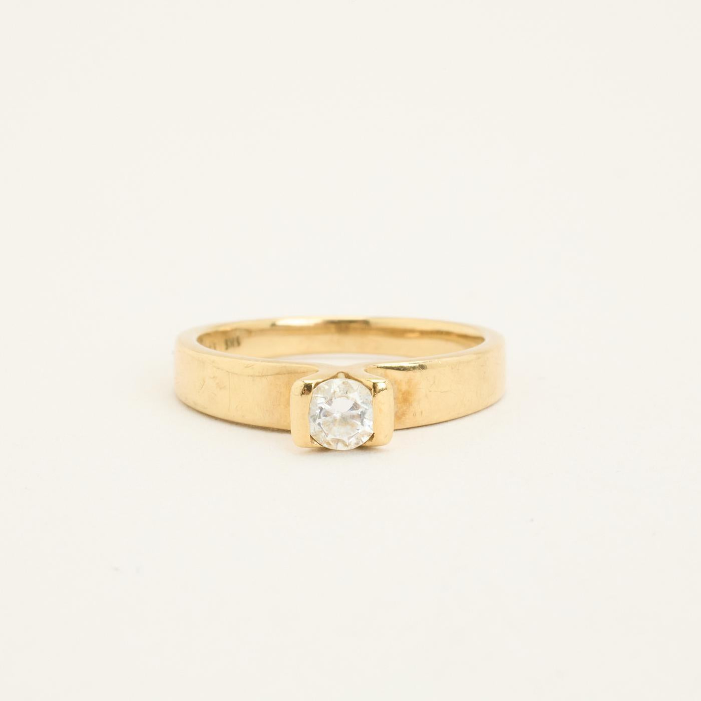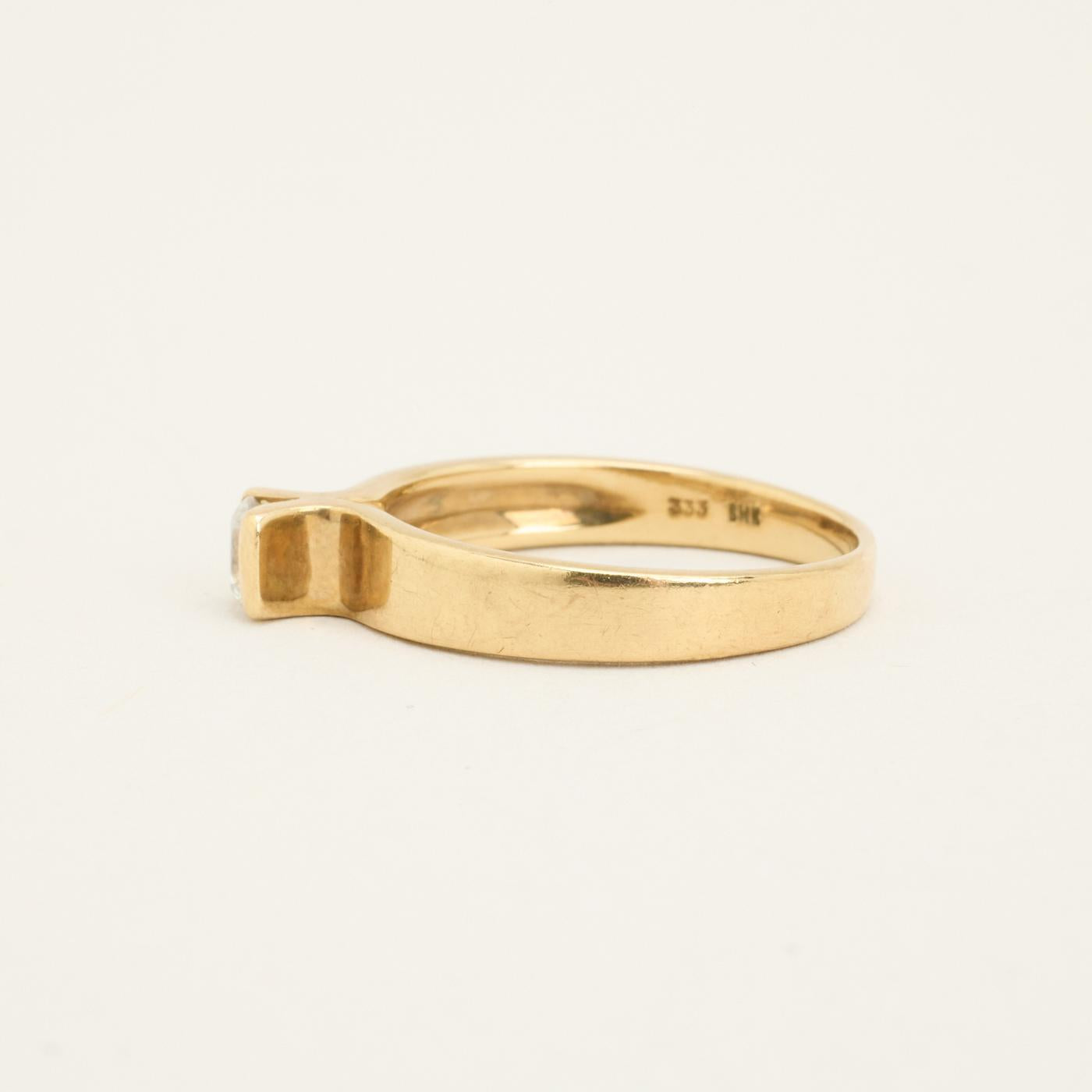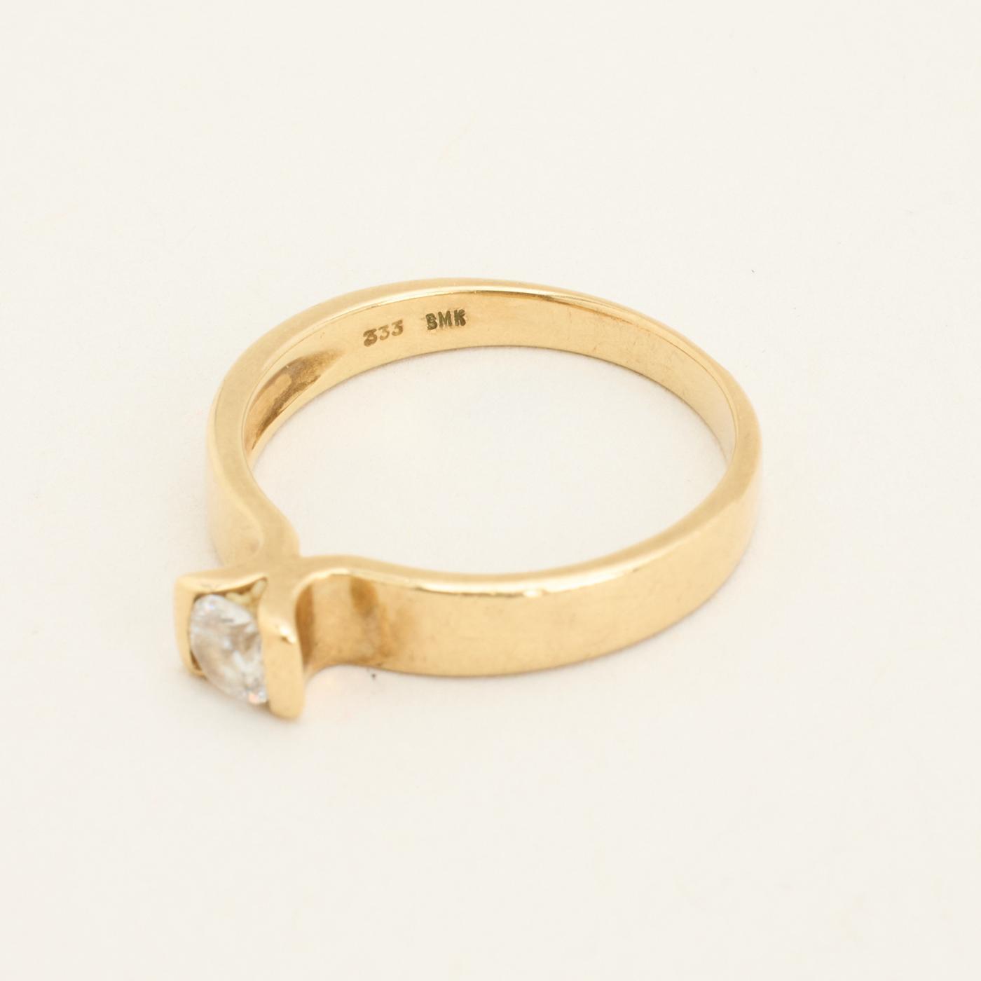 Solitairering i 8K guld med en zirkonia, Str. 53