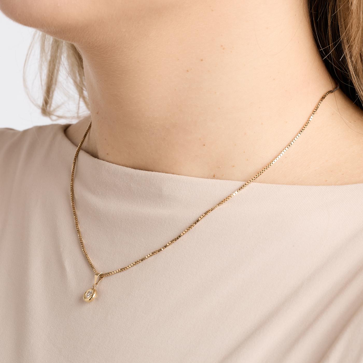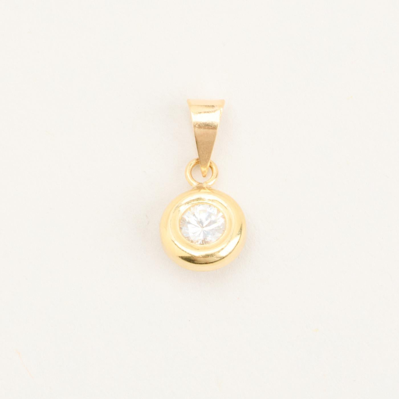 Solitaire vedhæng i 8K guld med én zirkonia, 1.5 cm