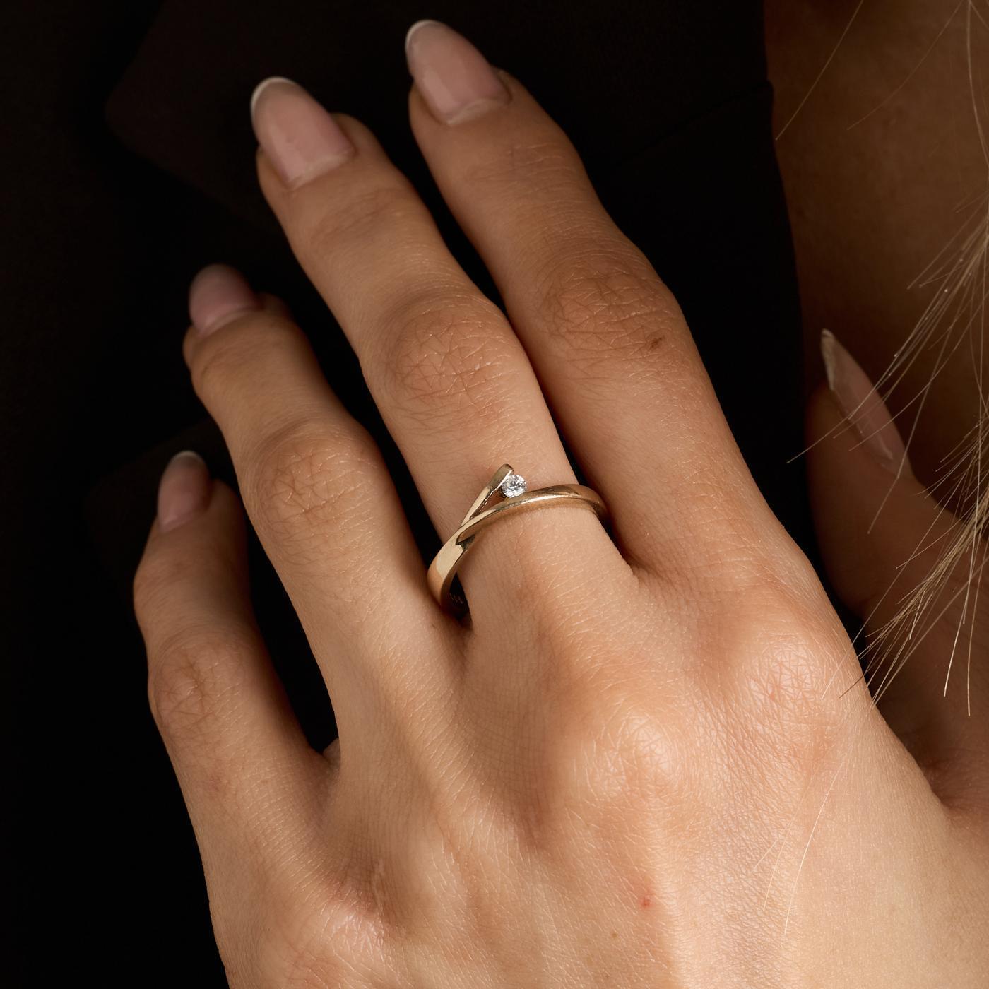 Crossoverring i 8 karat med en Zirkonia str. 54