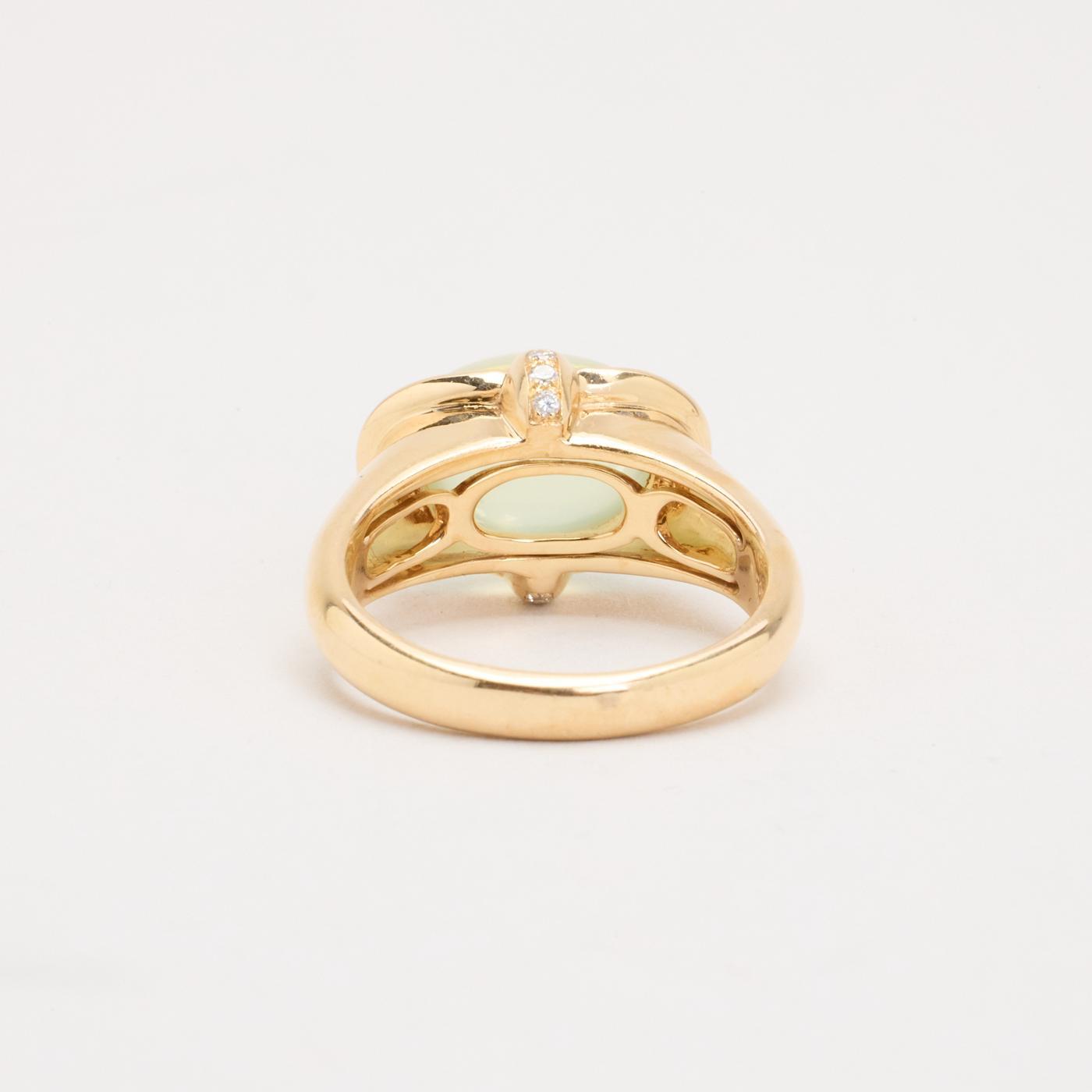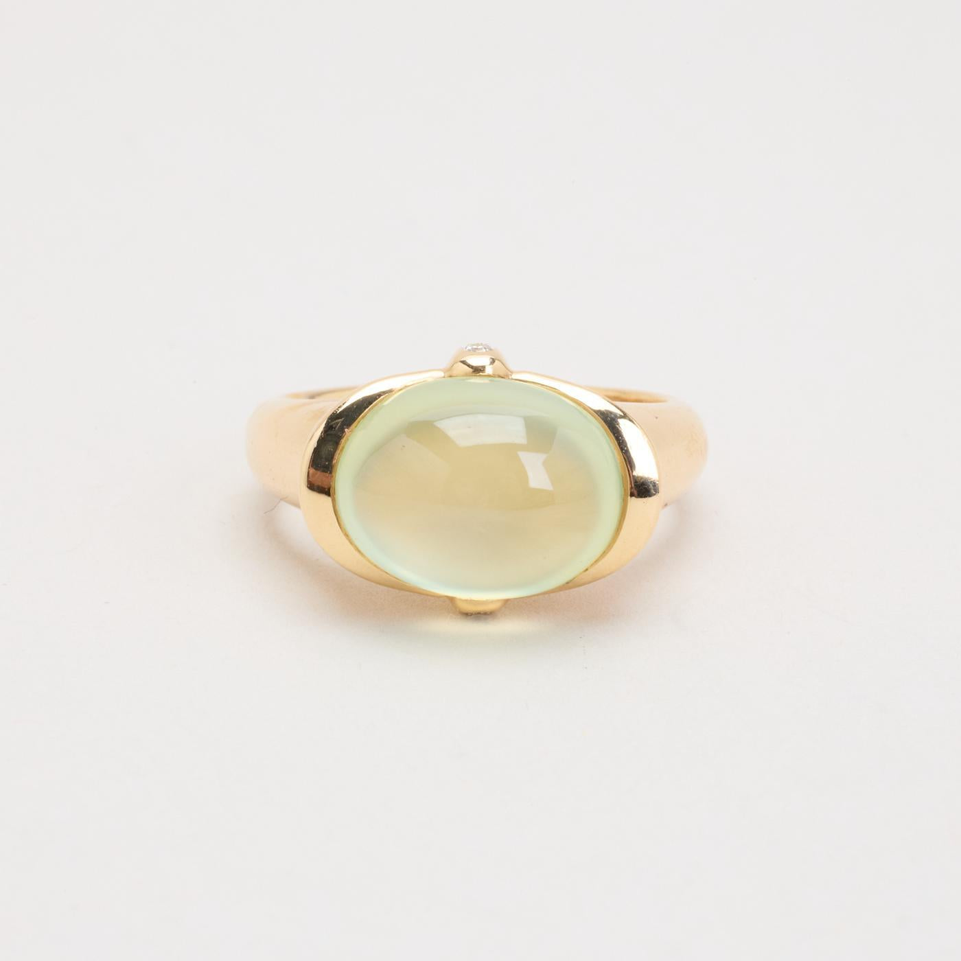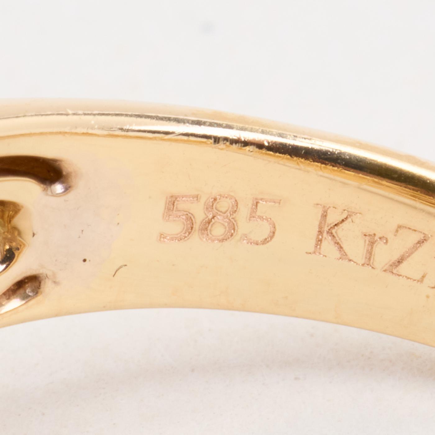 Signetring i 14K guld med grønne sten og diamanter (0.04 ct), Str. 54