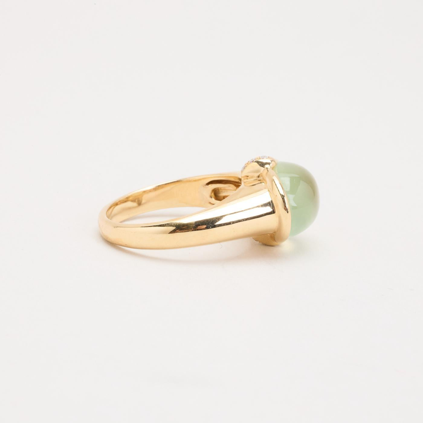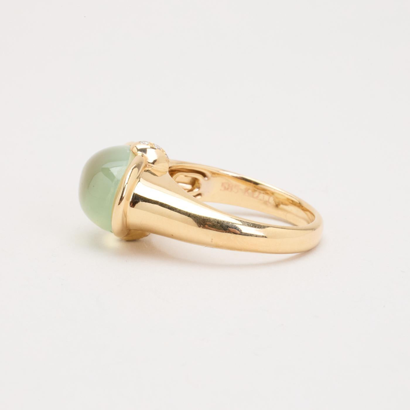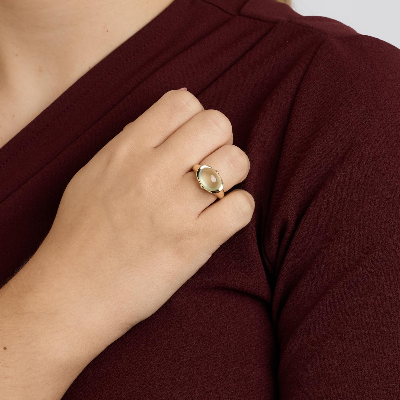 Signetring i 14K guld med grønne sten og diamanter (0.04 ct), Str. 54