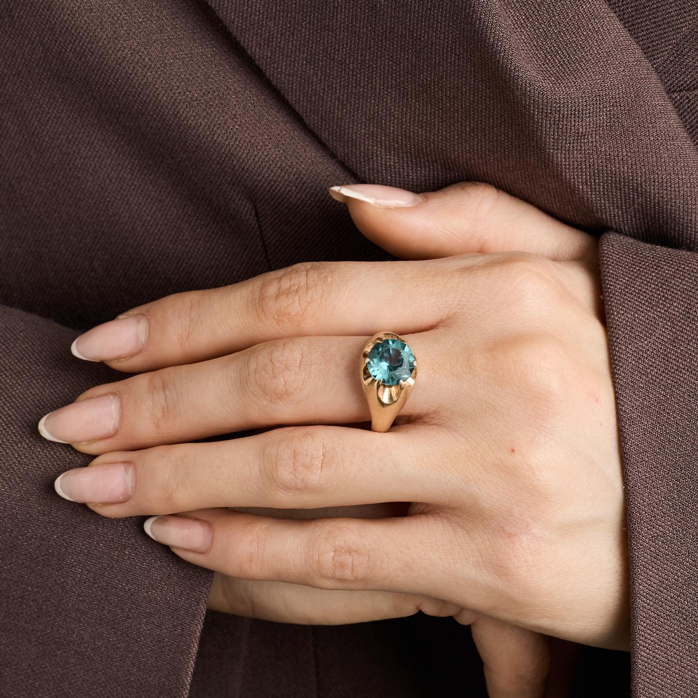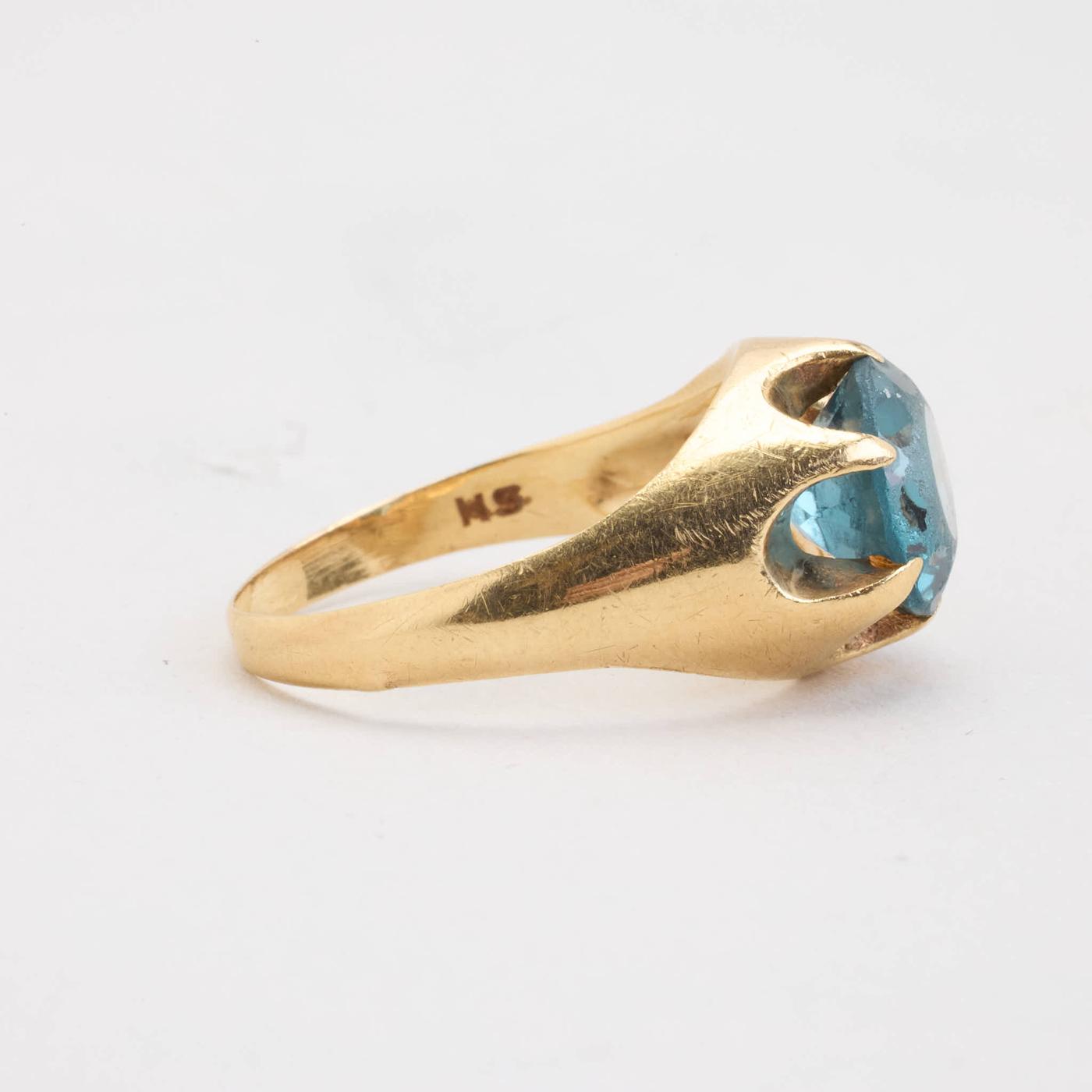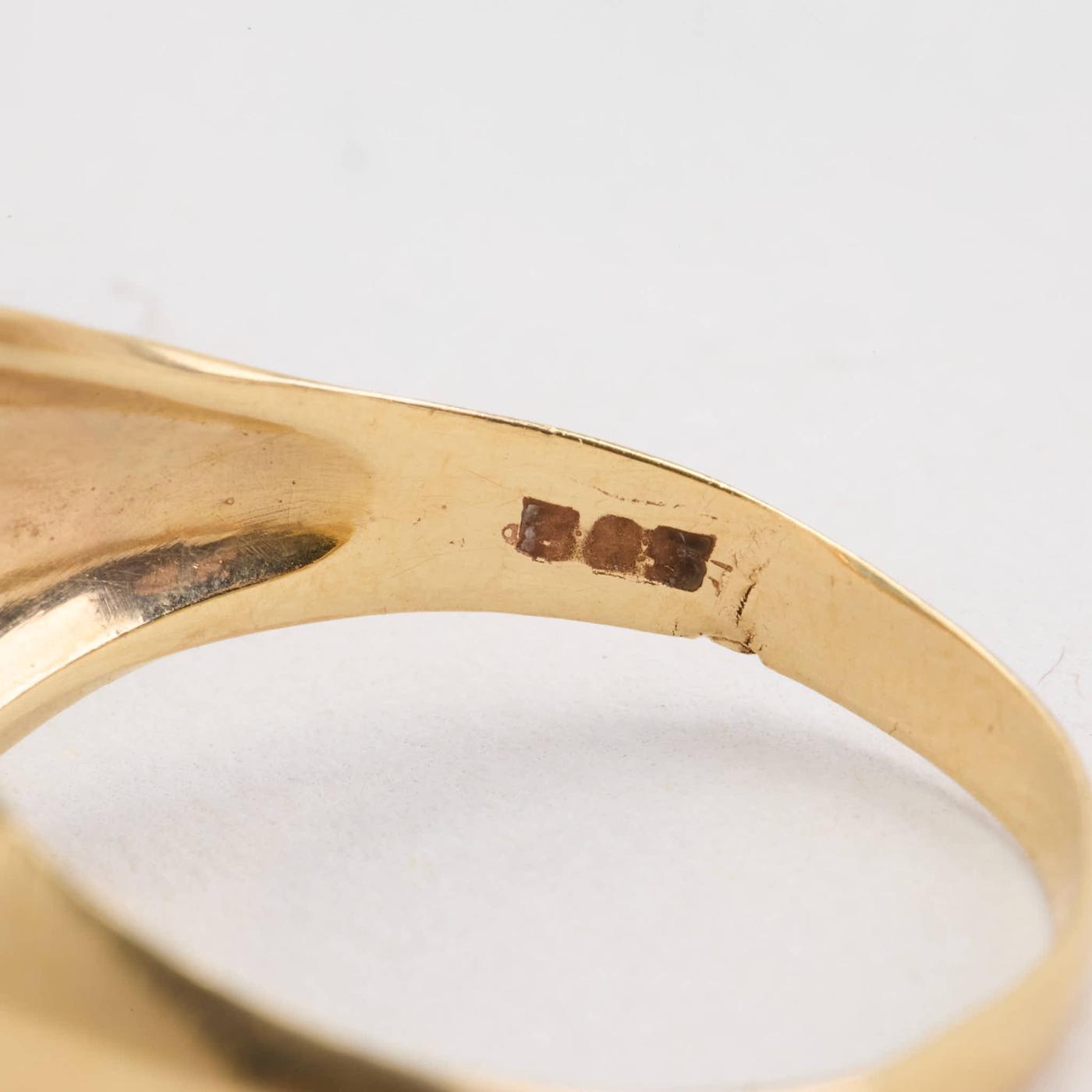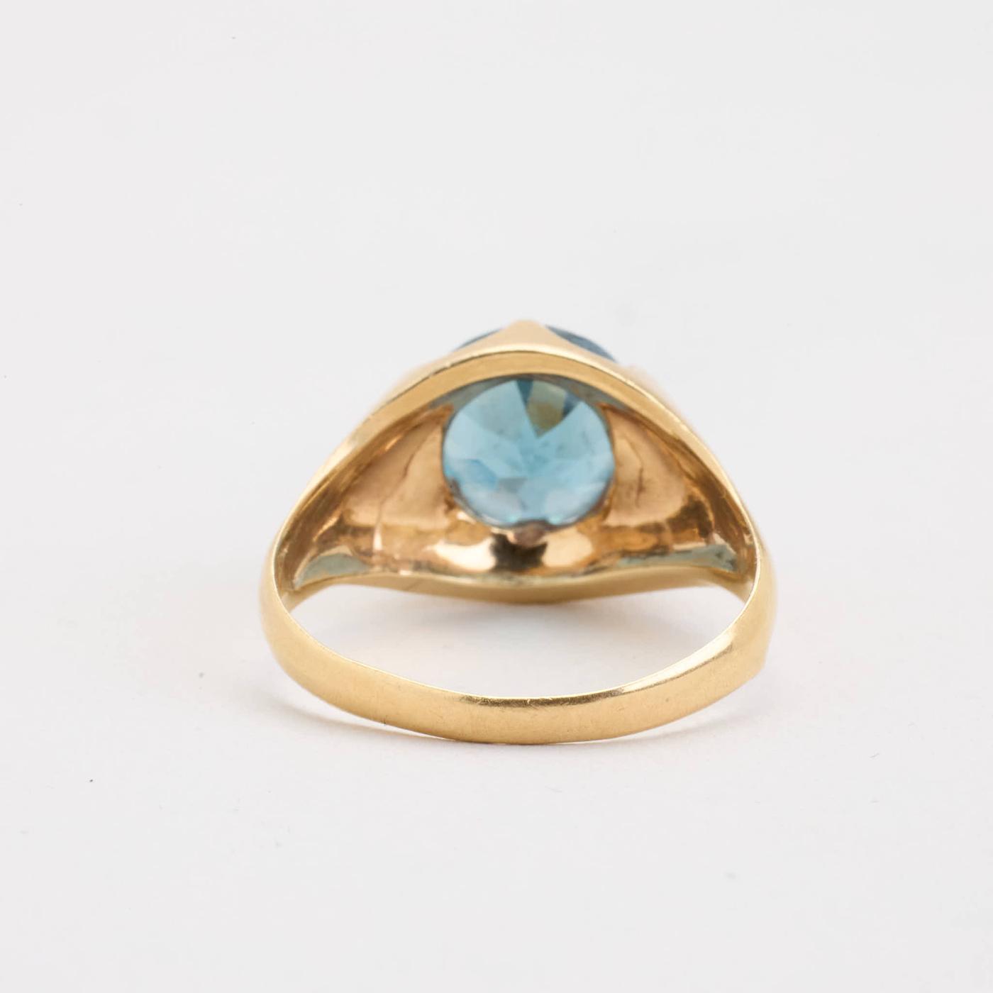 Signetring i 14K guld med en syntetisk spinel, str. 56