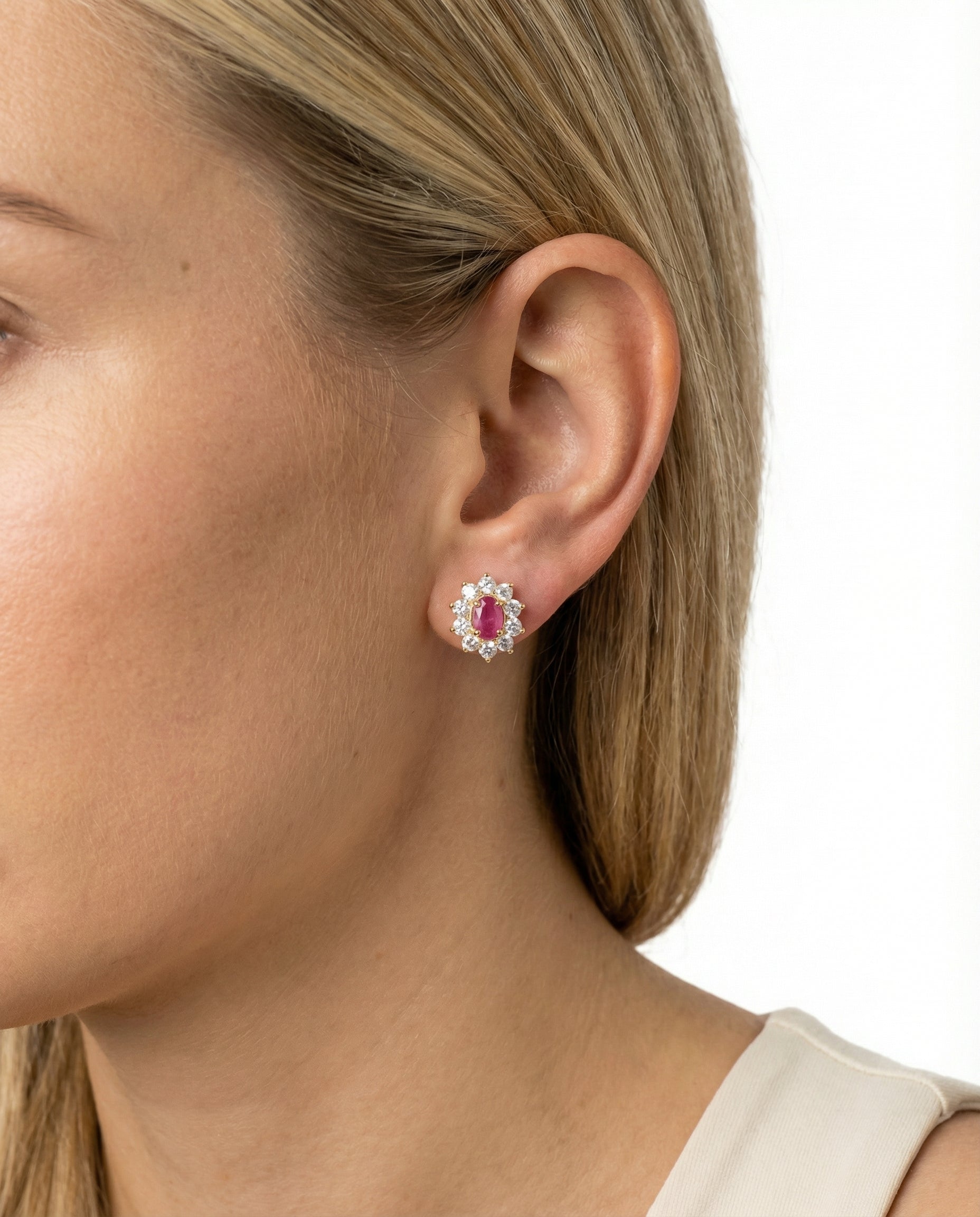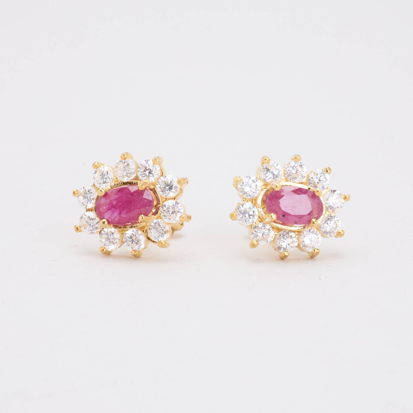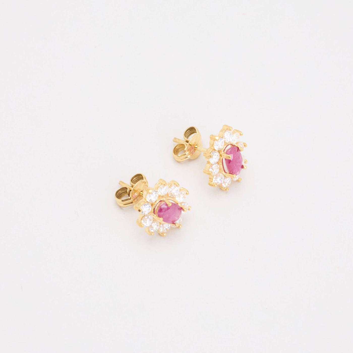 Roset øreringe i 14 karat med en Zirkonia, 1 cm