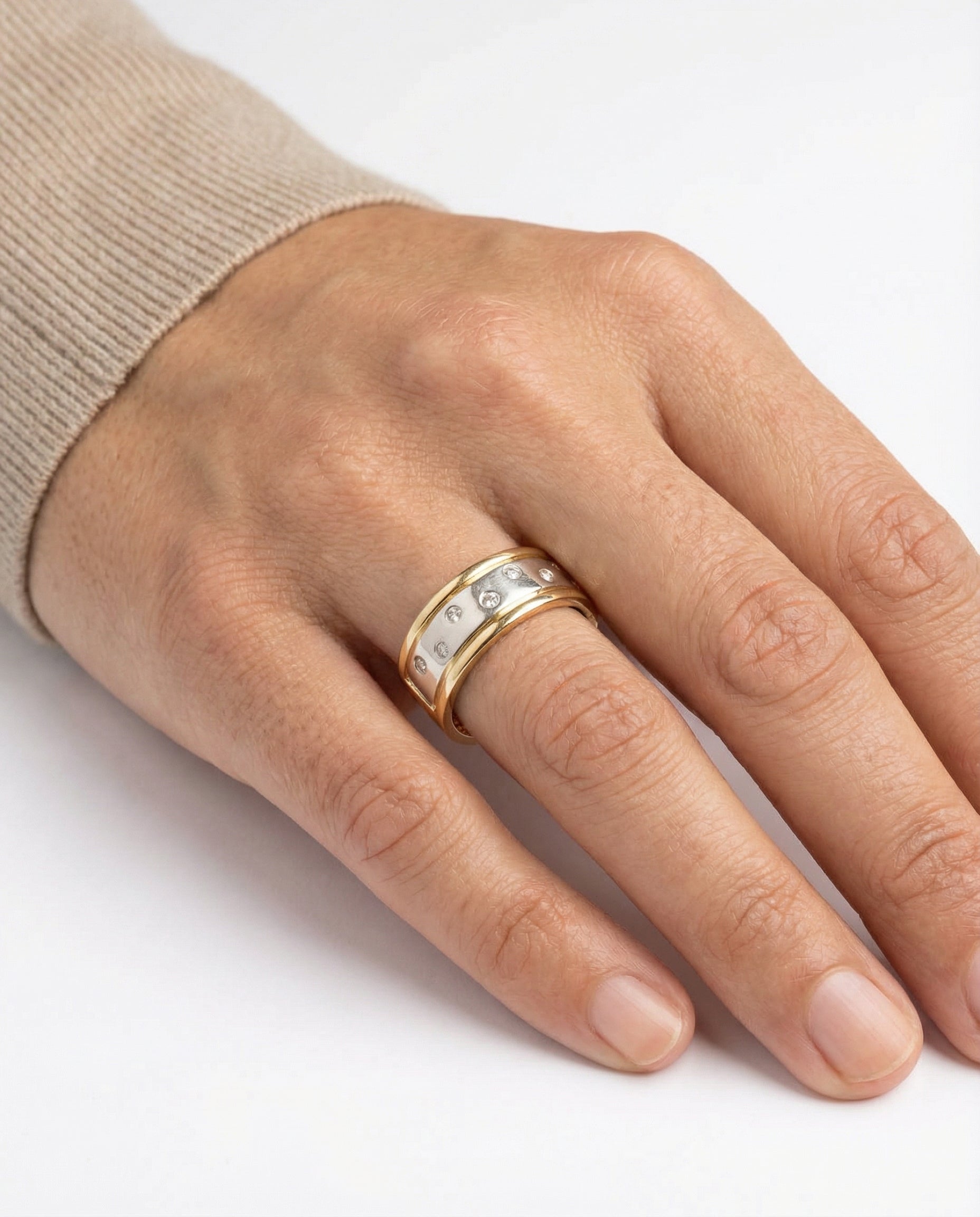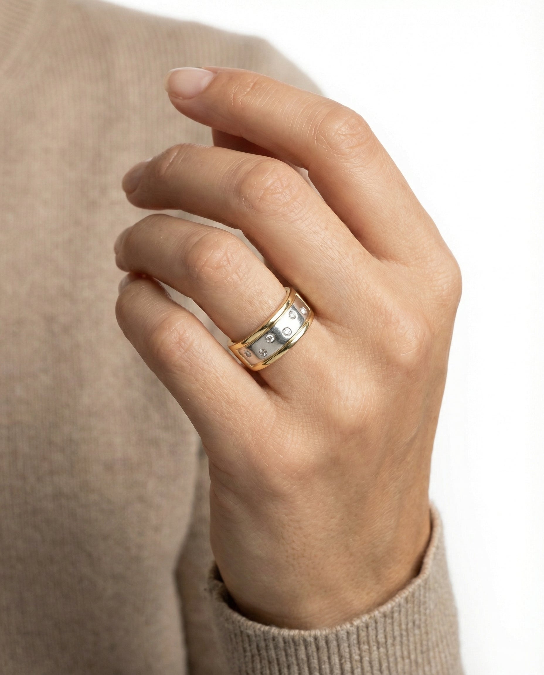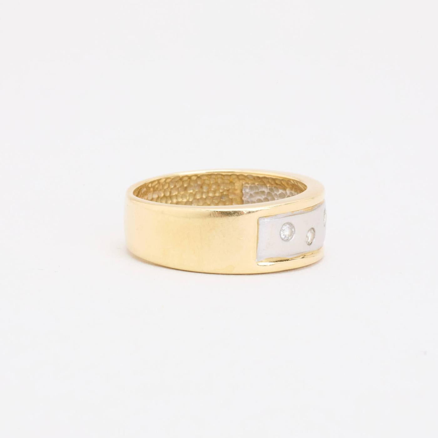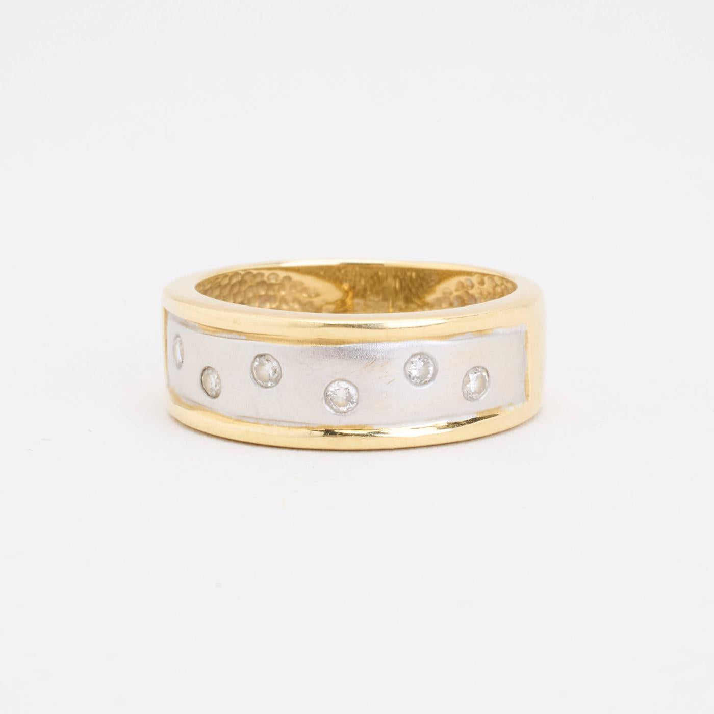 Bånd i 14K guld og hvidguld med flere hvide sten (0.04 ct), Str. 51