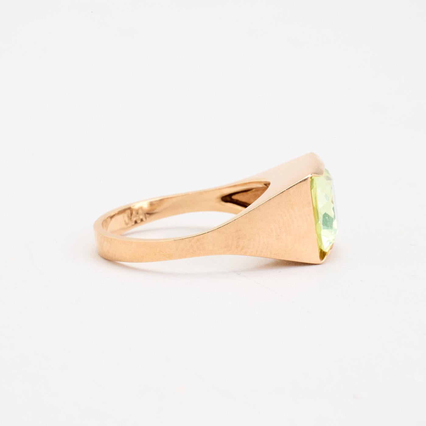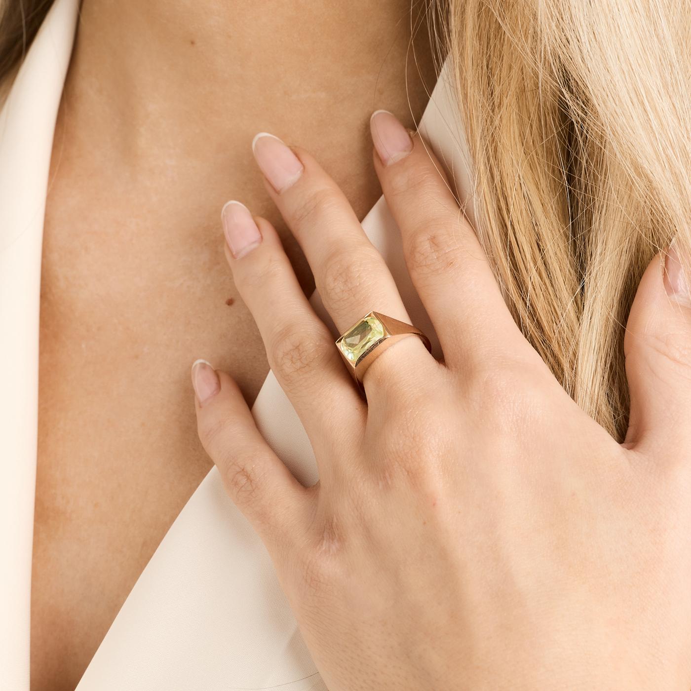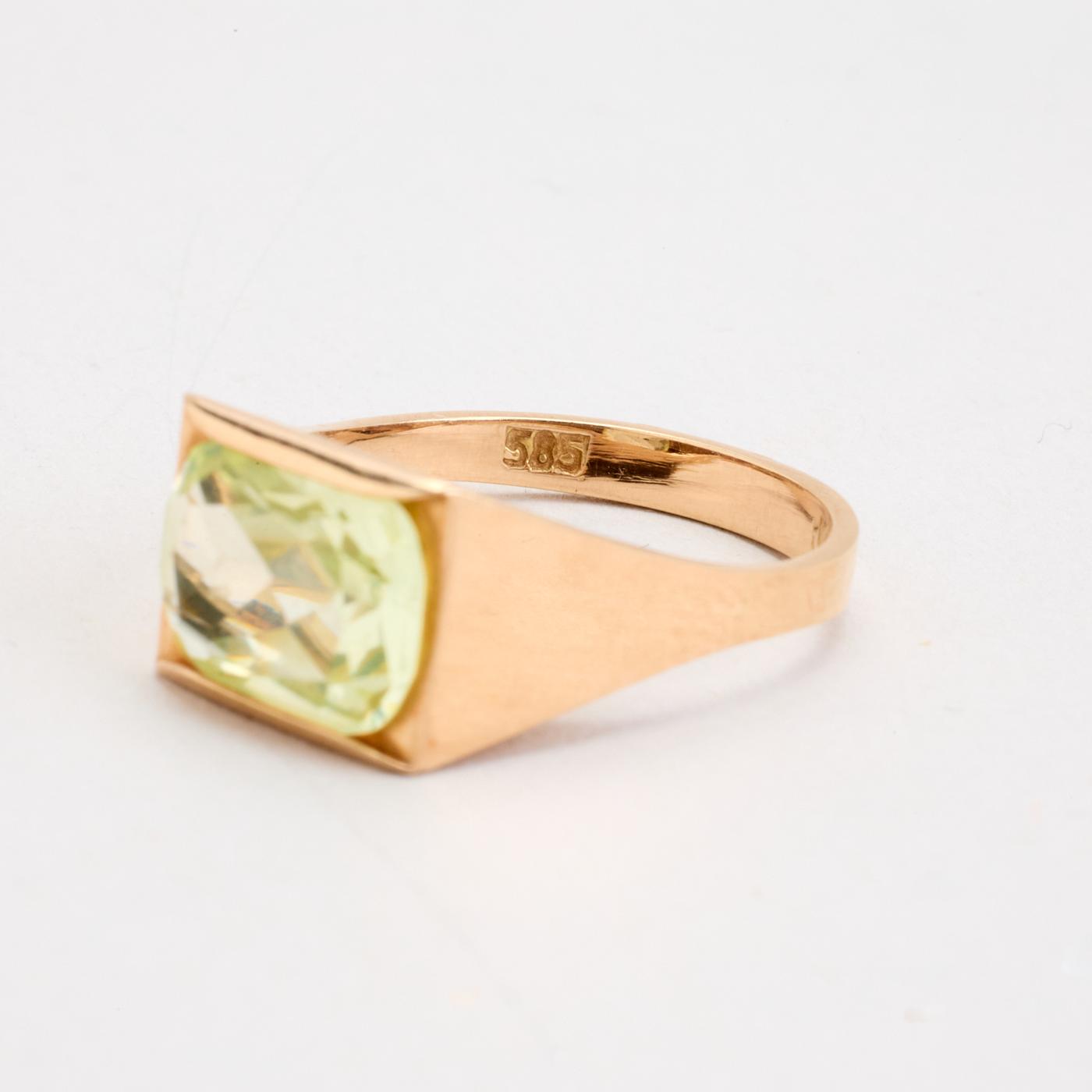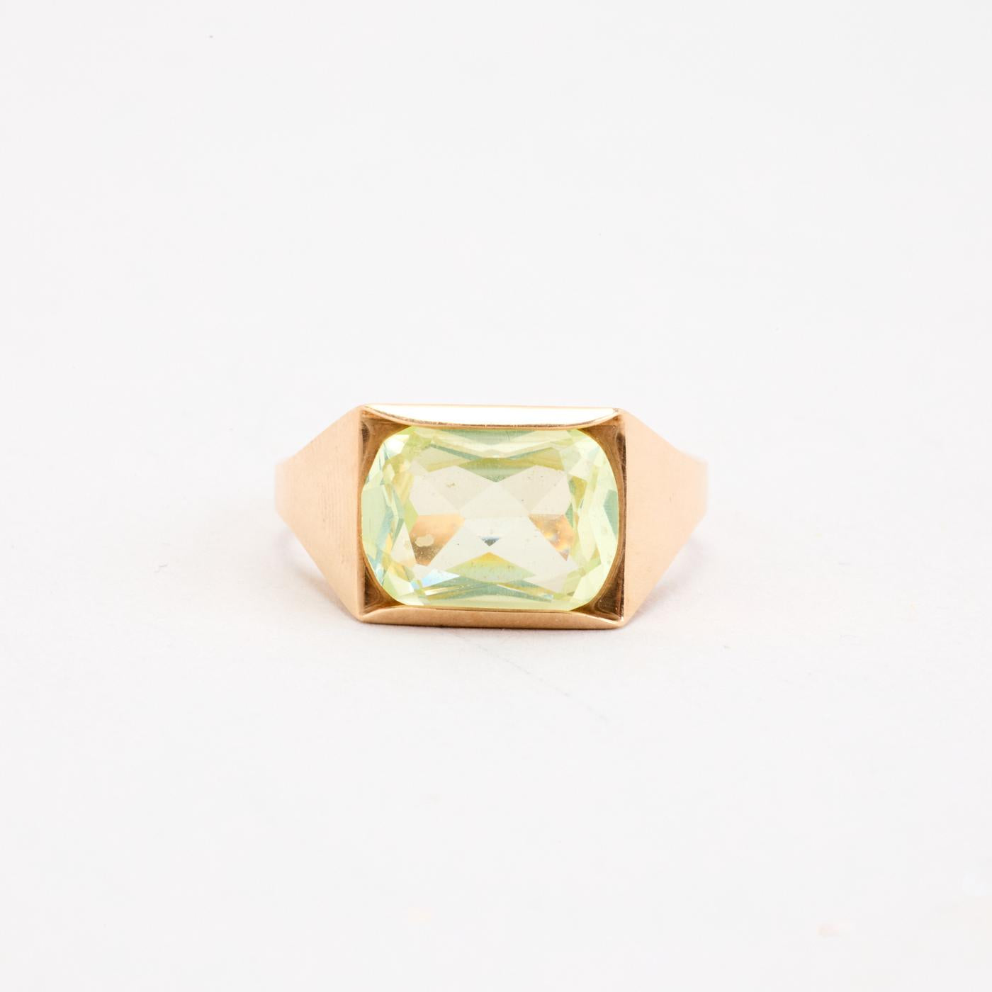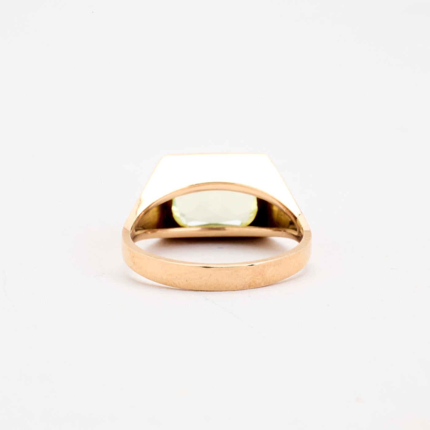 Signetring i 14K guld med en grøn sten, Str. 52