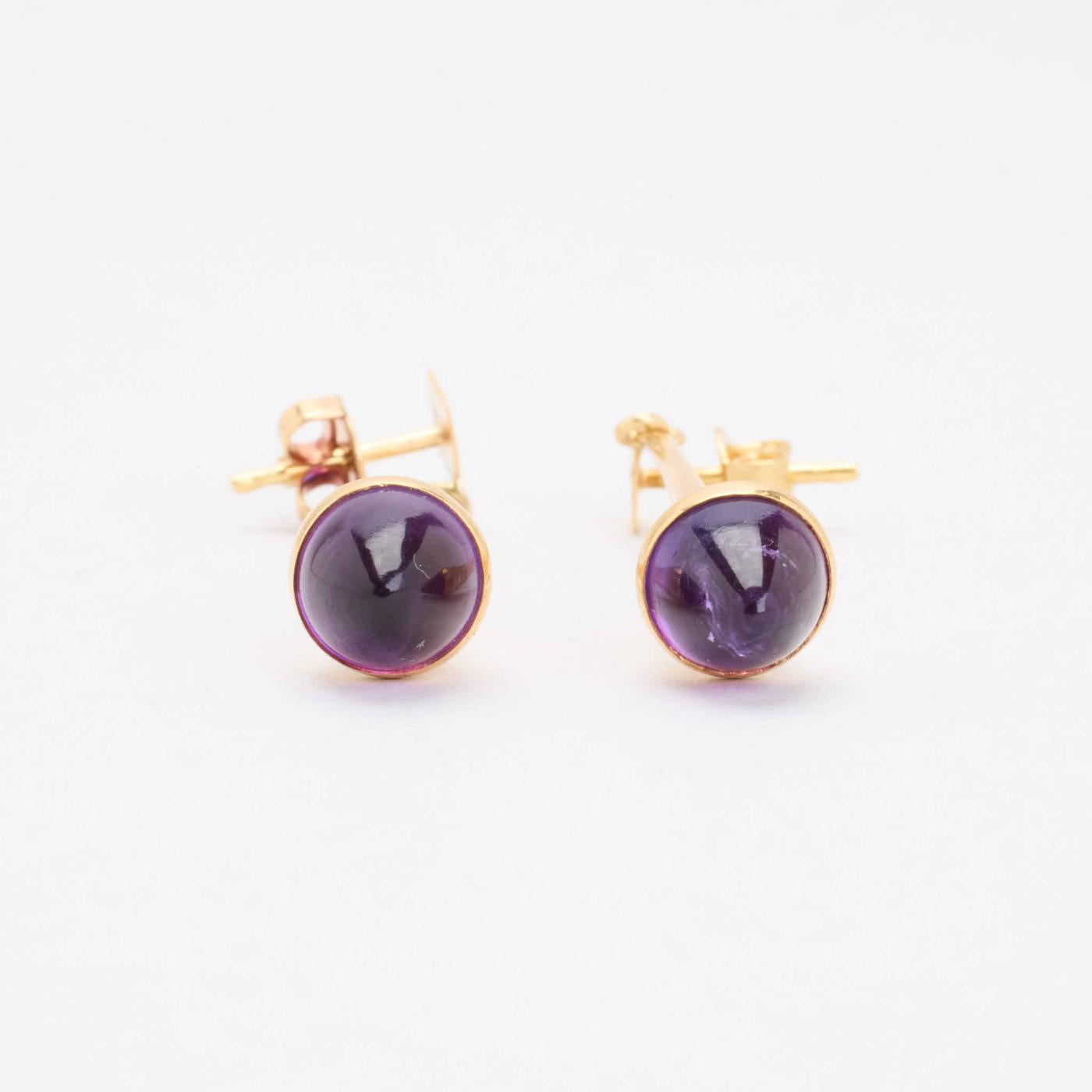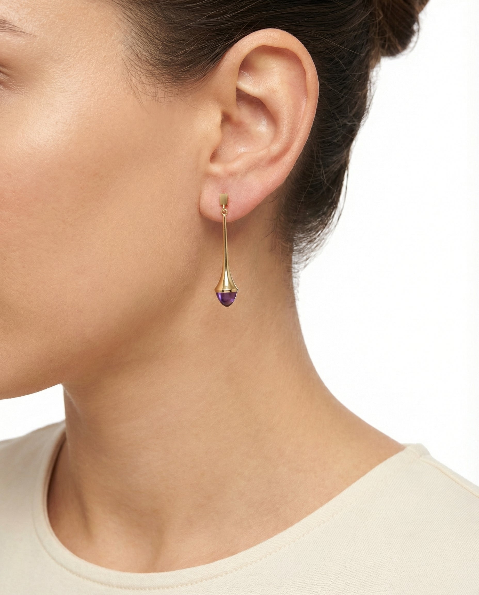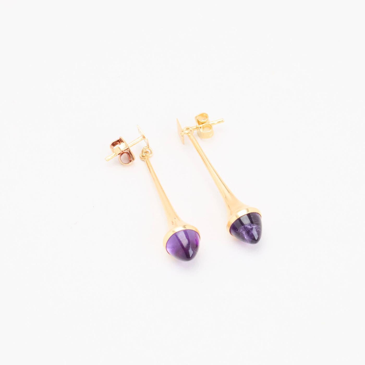 Ørehængere i 18 karat med lilla sten, 4 cm