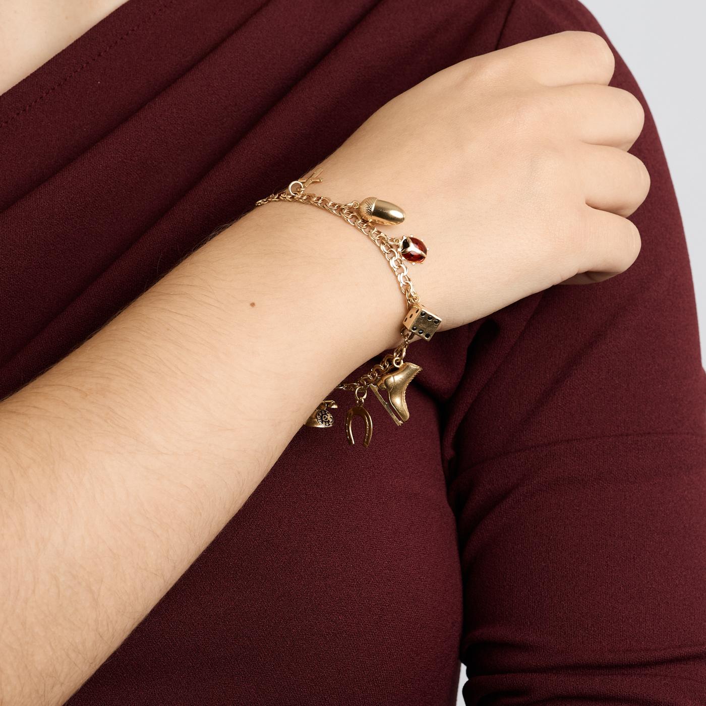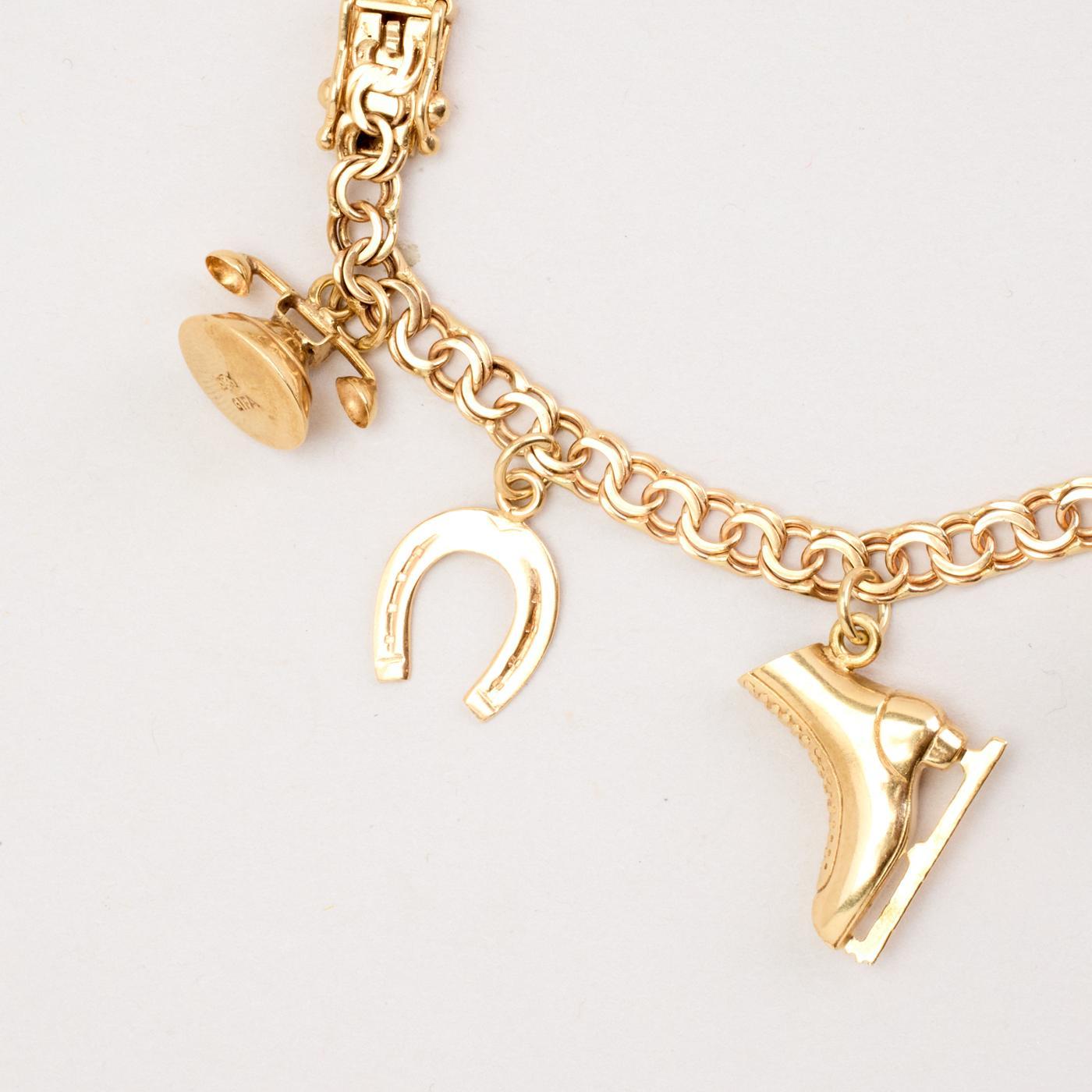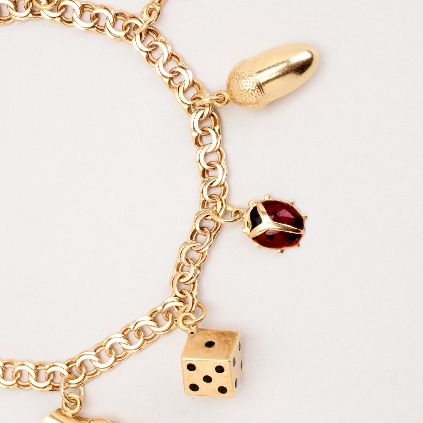 Model: Bismarck charm-armbånd med emalje i 14K guld, 19 cm