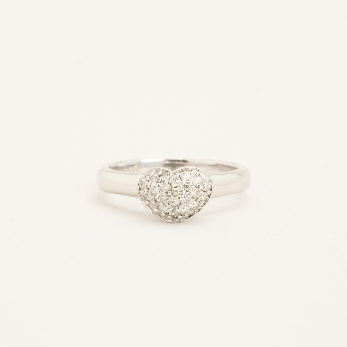 Hjertering med diamant (0.07 ct) i 14 karat str. 52