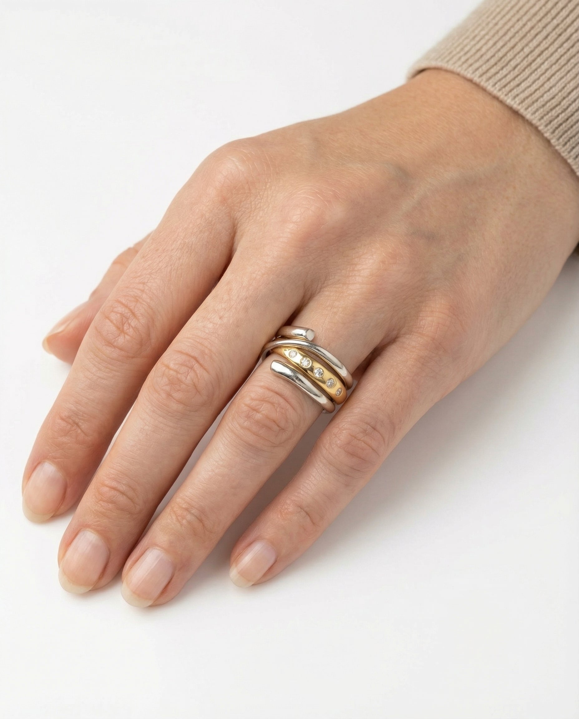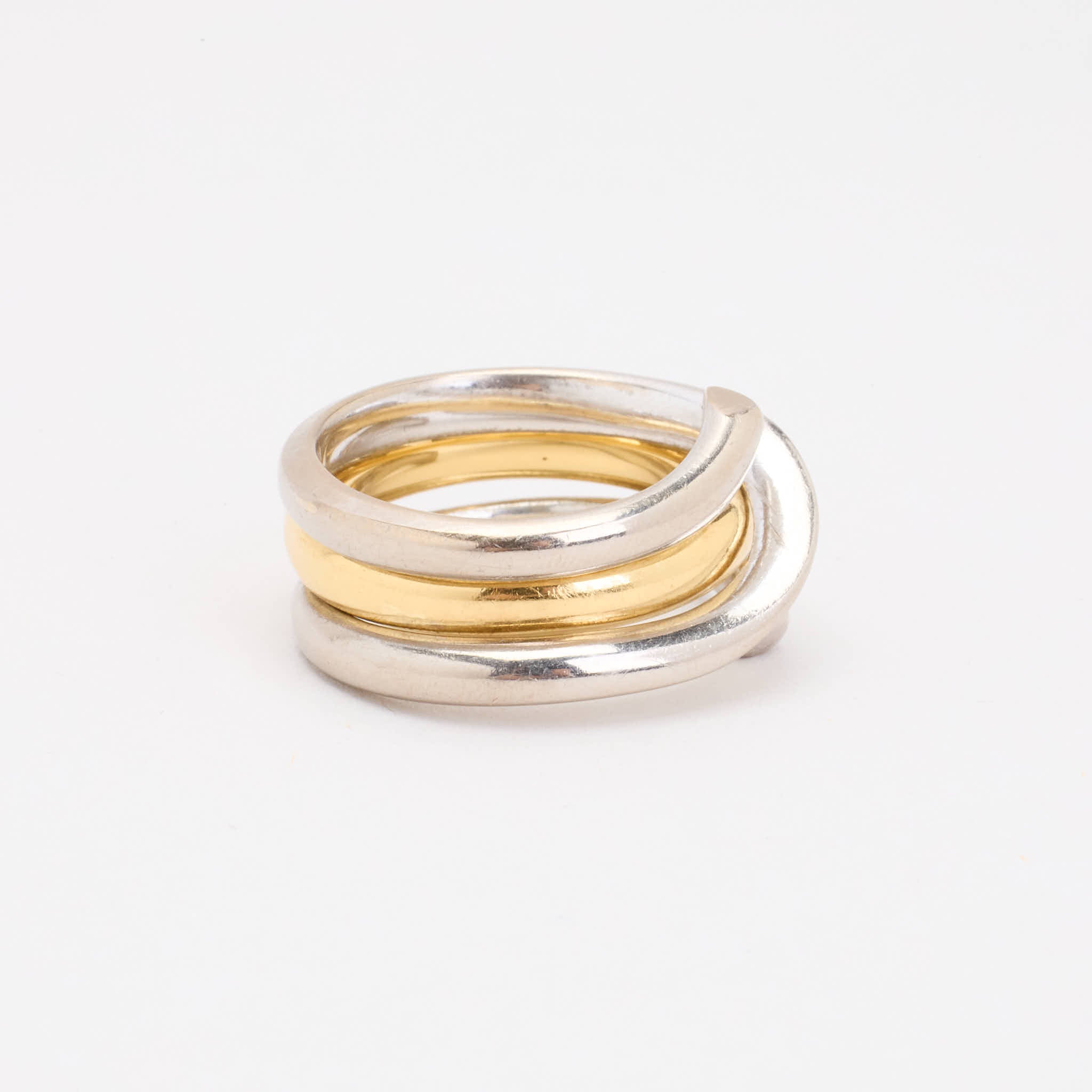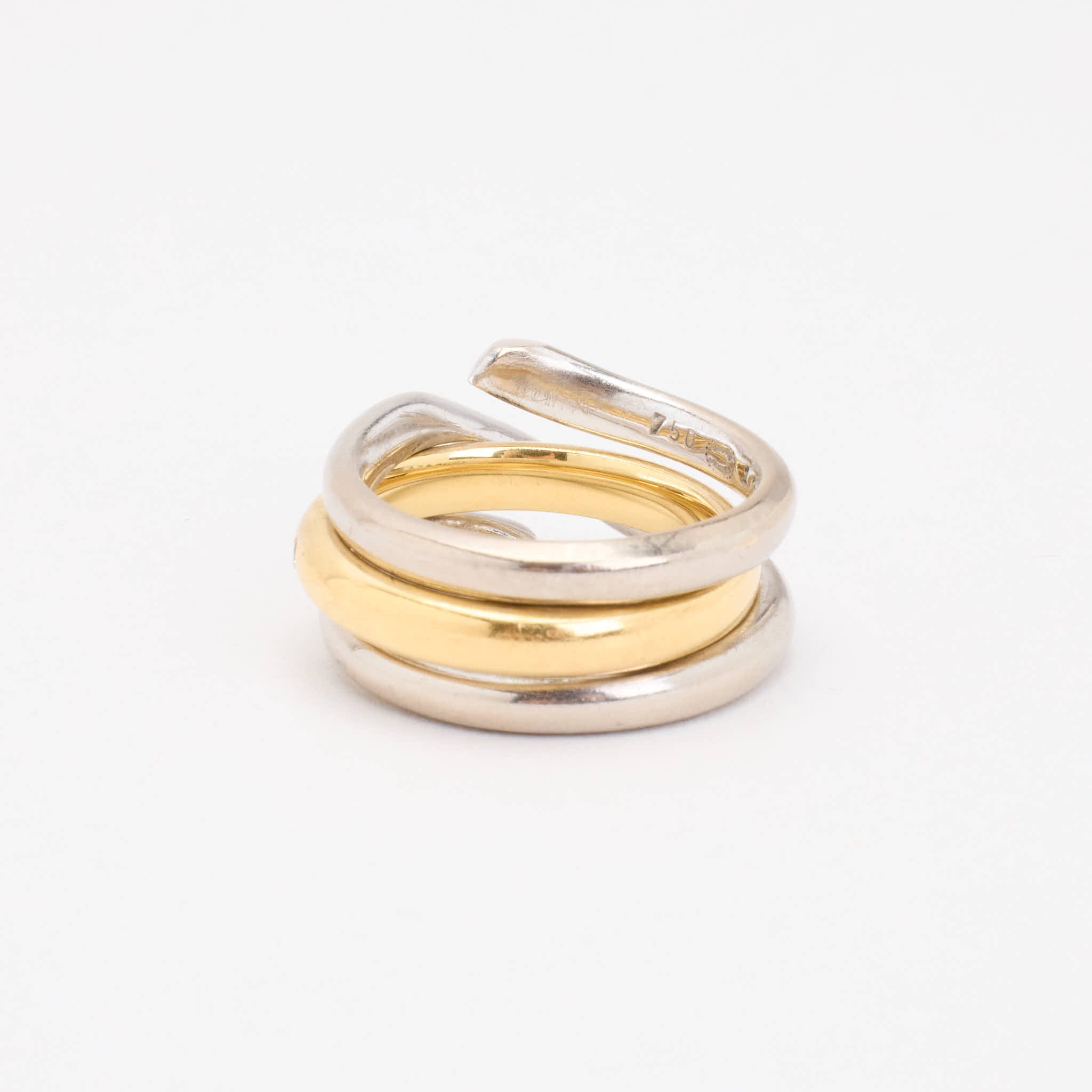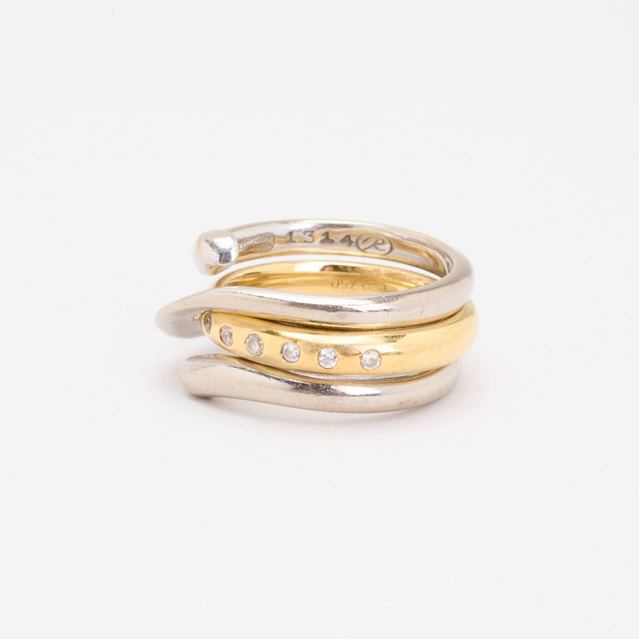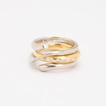 Georg Jensen Crossoverring i 18K guld og hvidguld med diamanter (0.09 ct), Str. 54