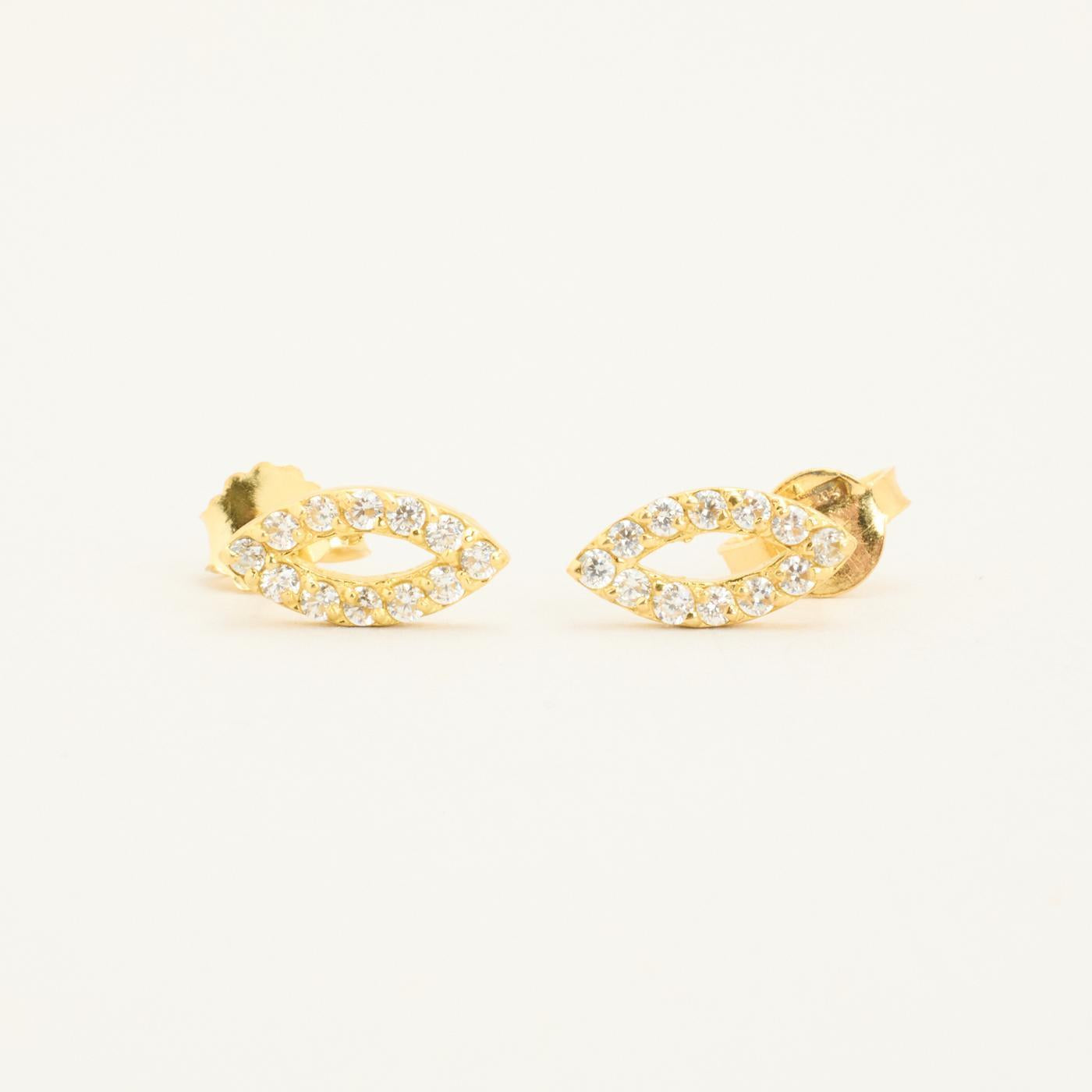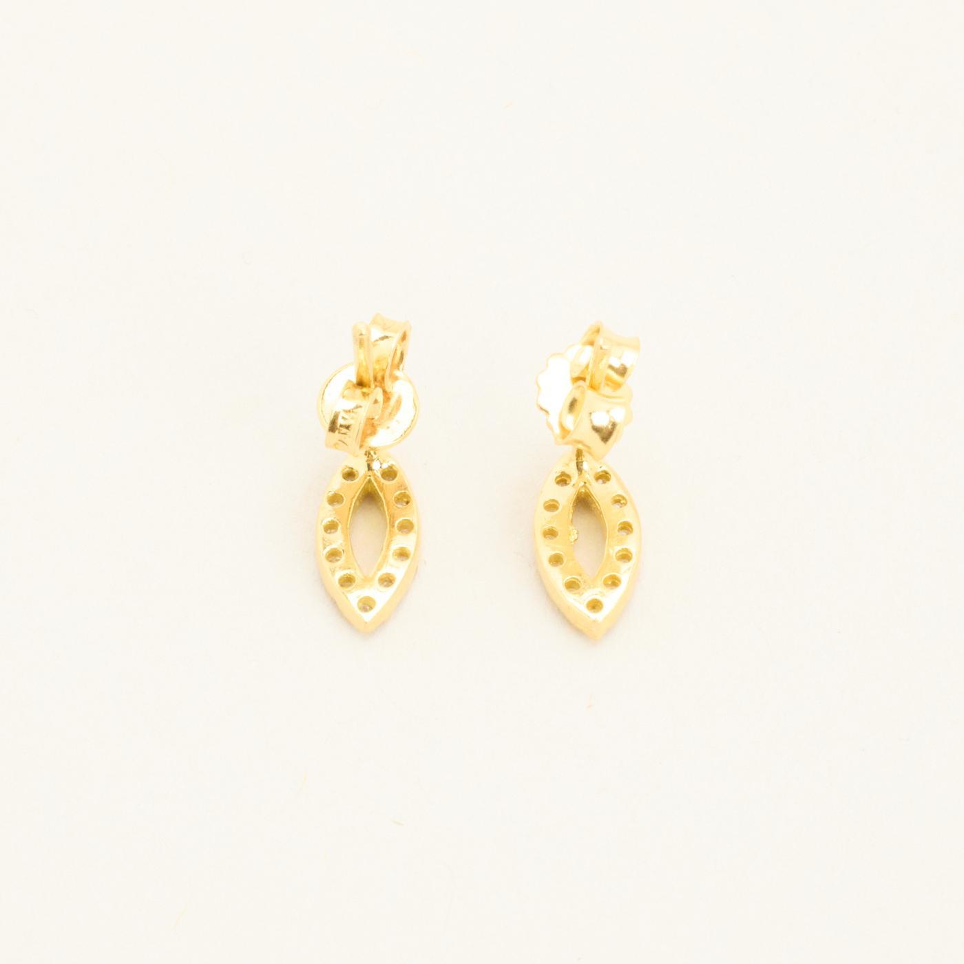 Øreringe med stik i 18K guld med flere hvide zirkonia, 1.5 cm