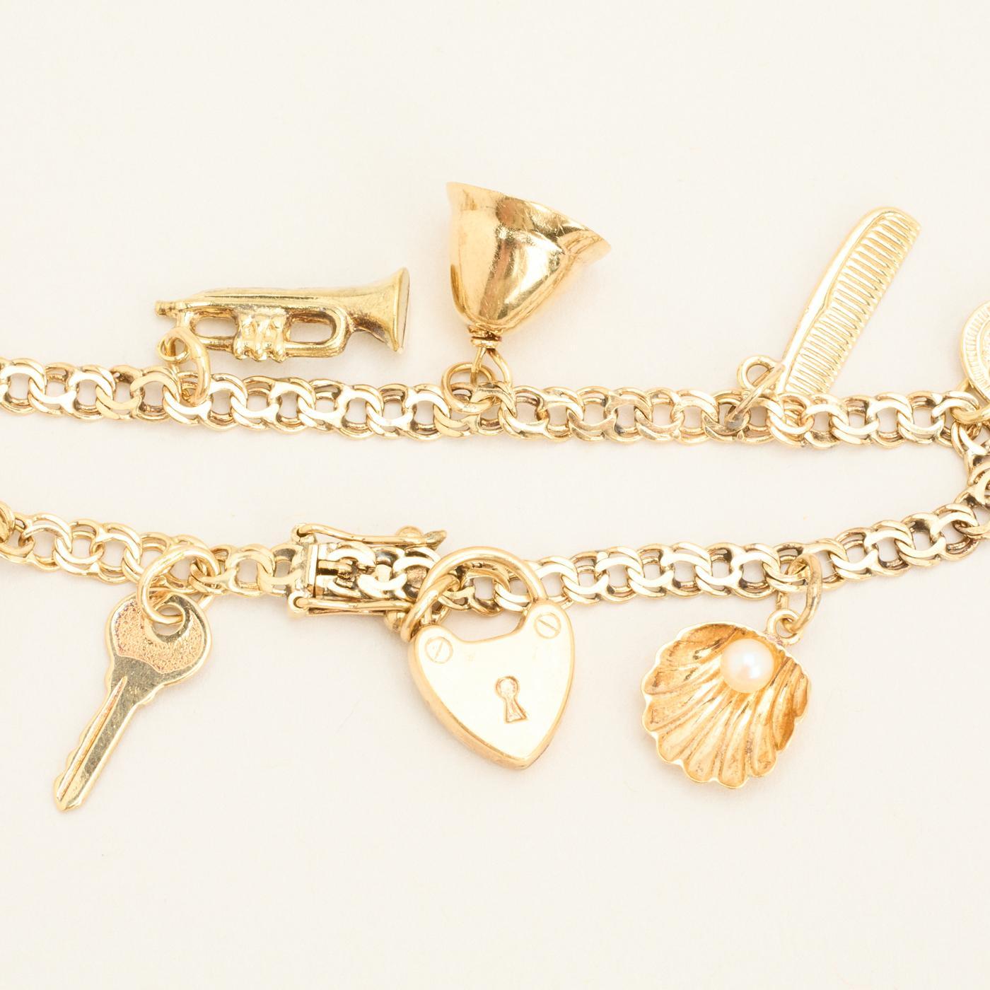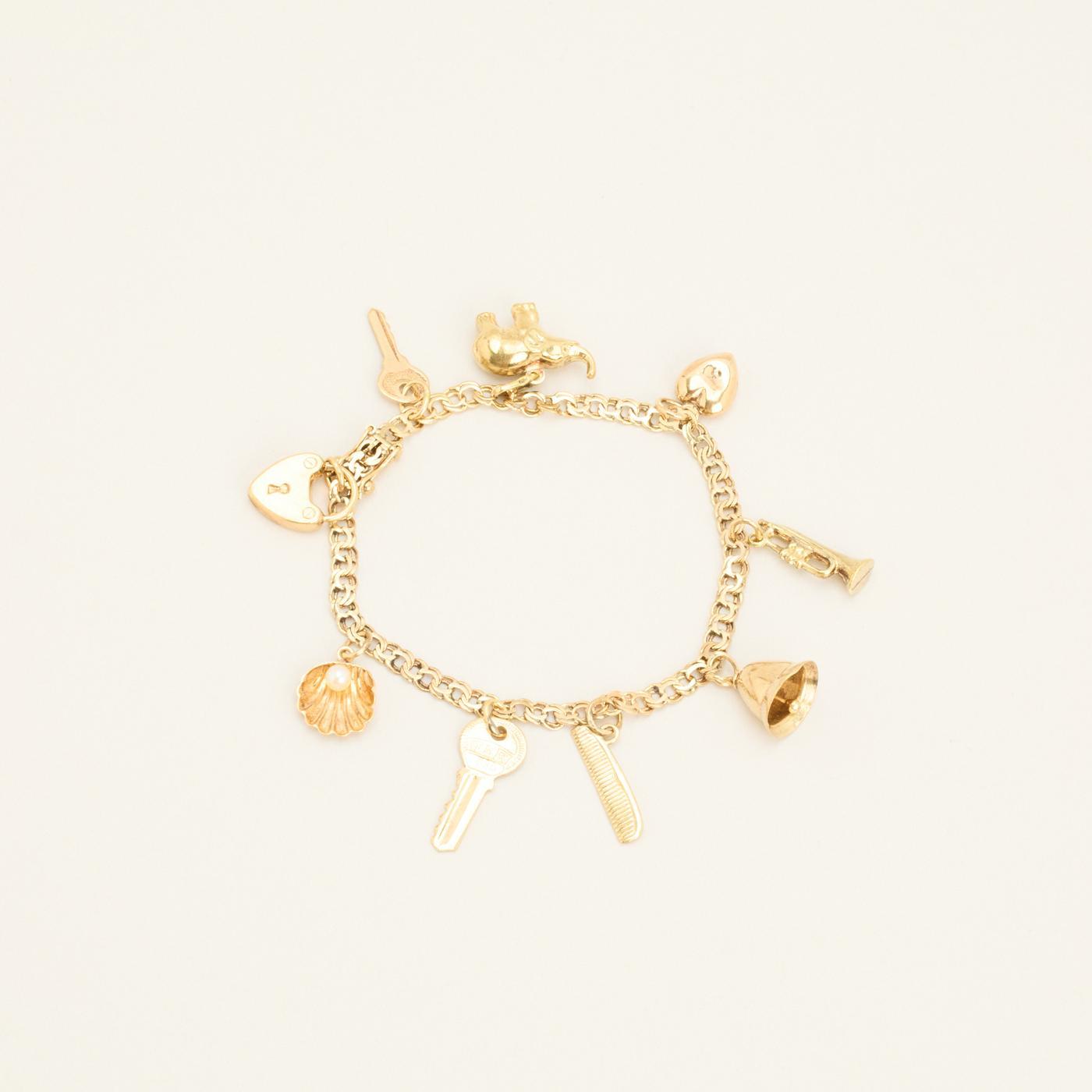 Bismarck charm-armbånd med en perle i 14K guld, 16 cm