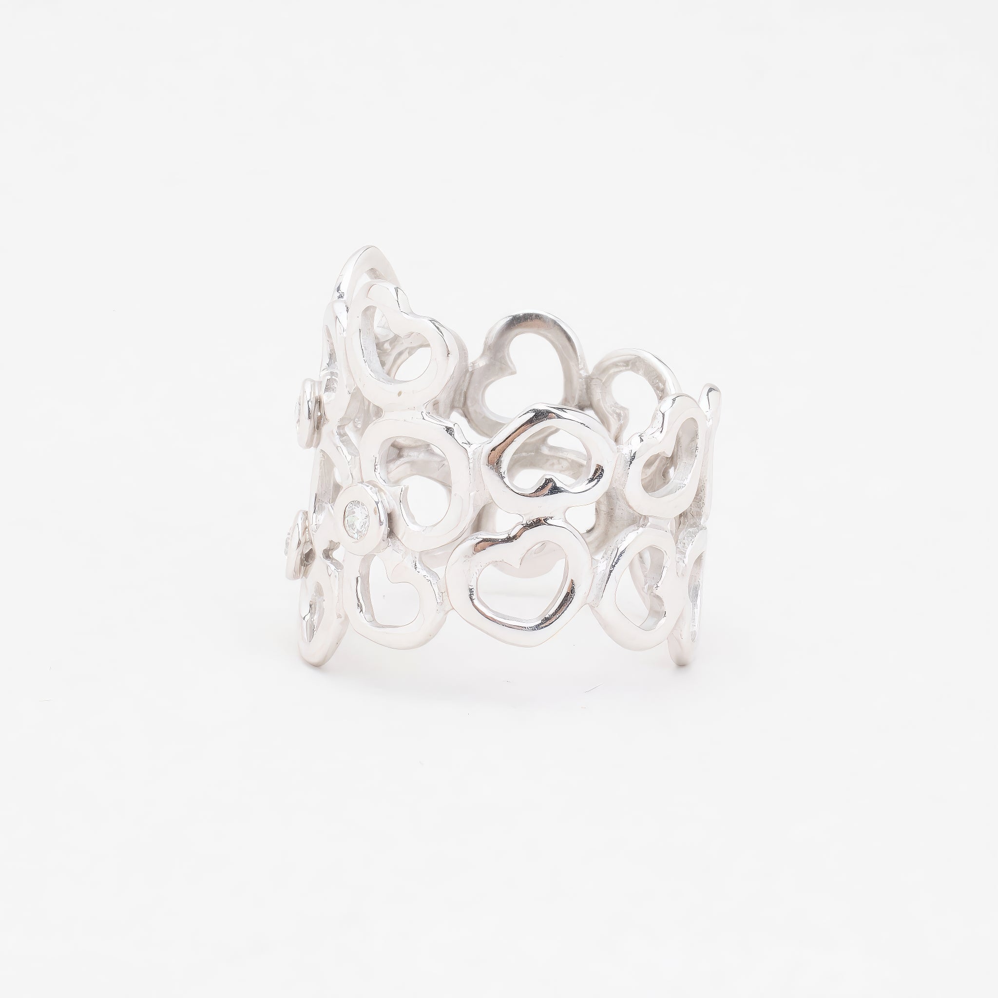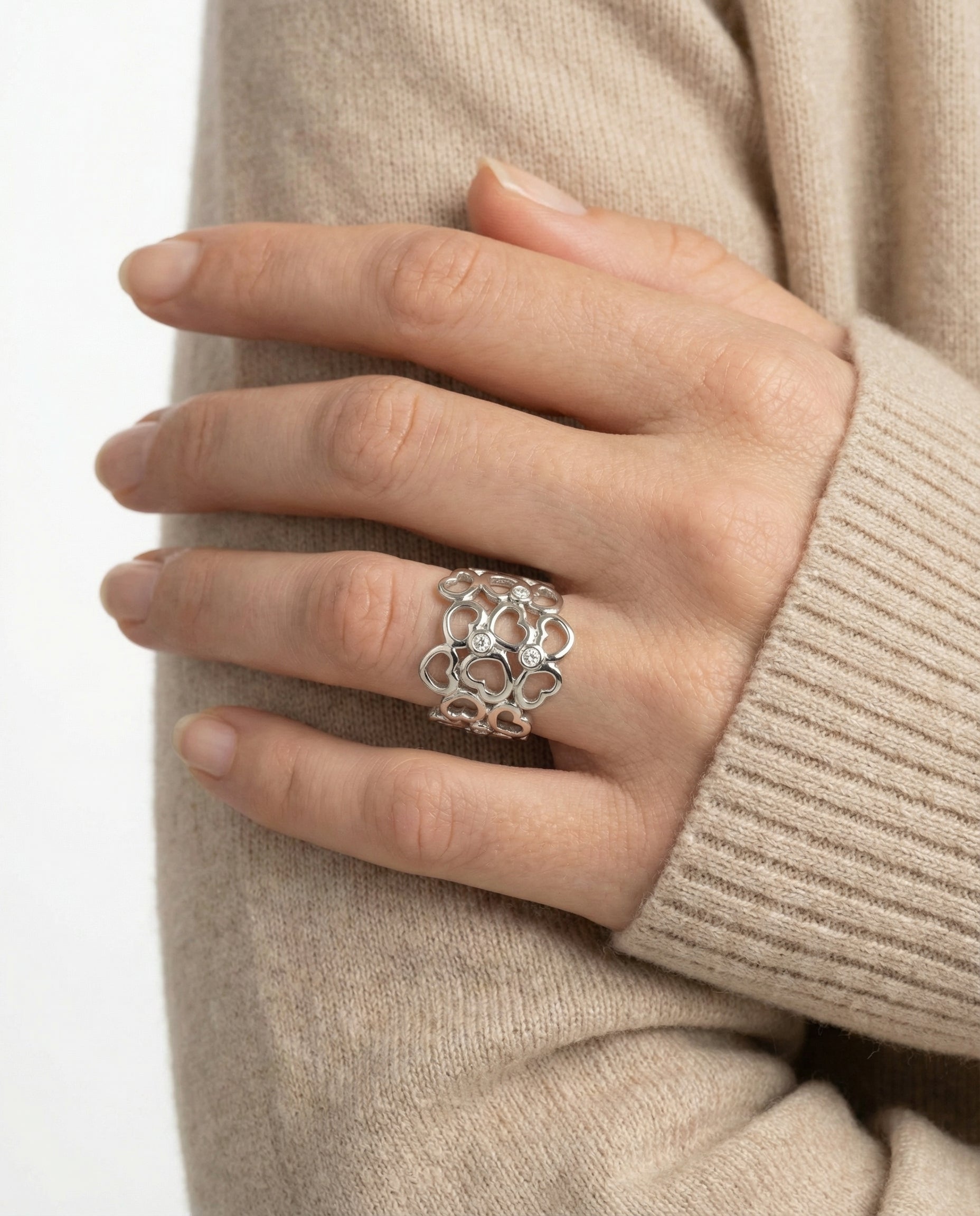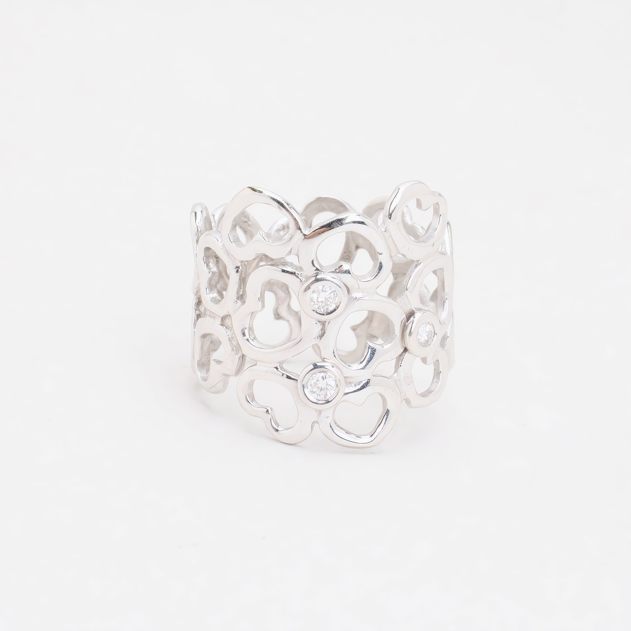 Hjertering i 14K hvidguld med diamanter (0.06 ct), Str. 55, 6.1 g