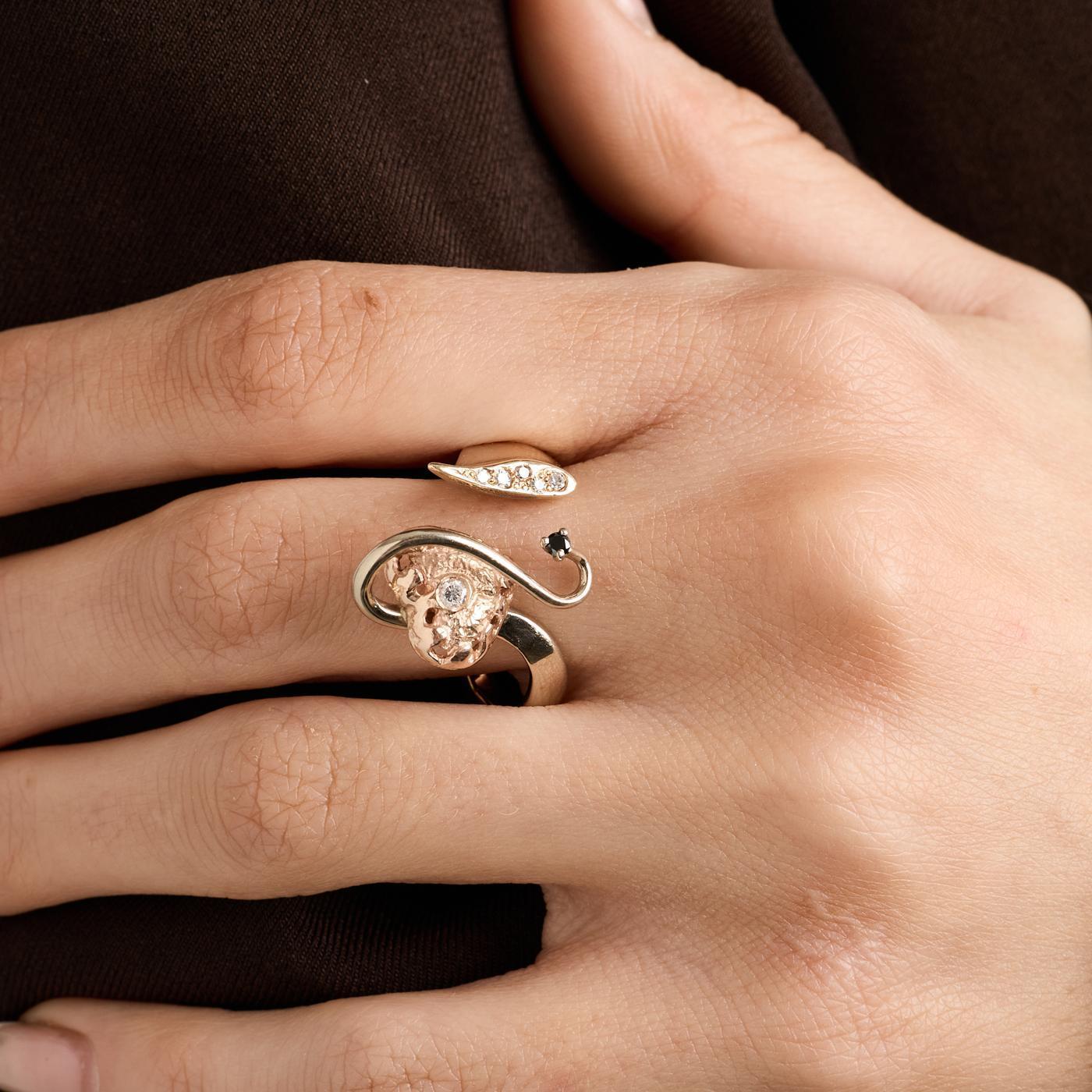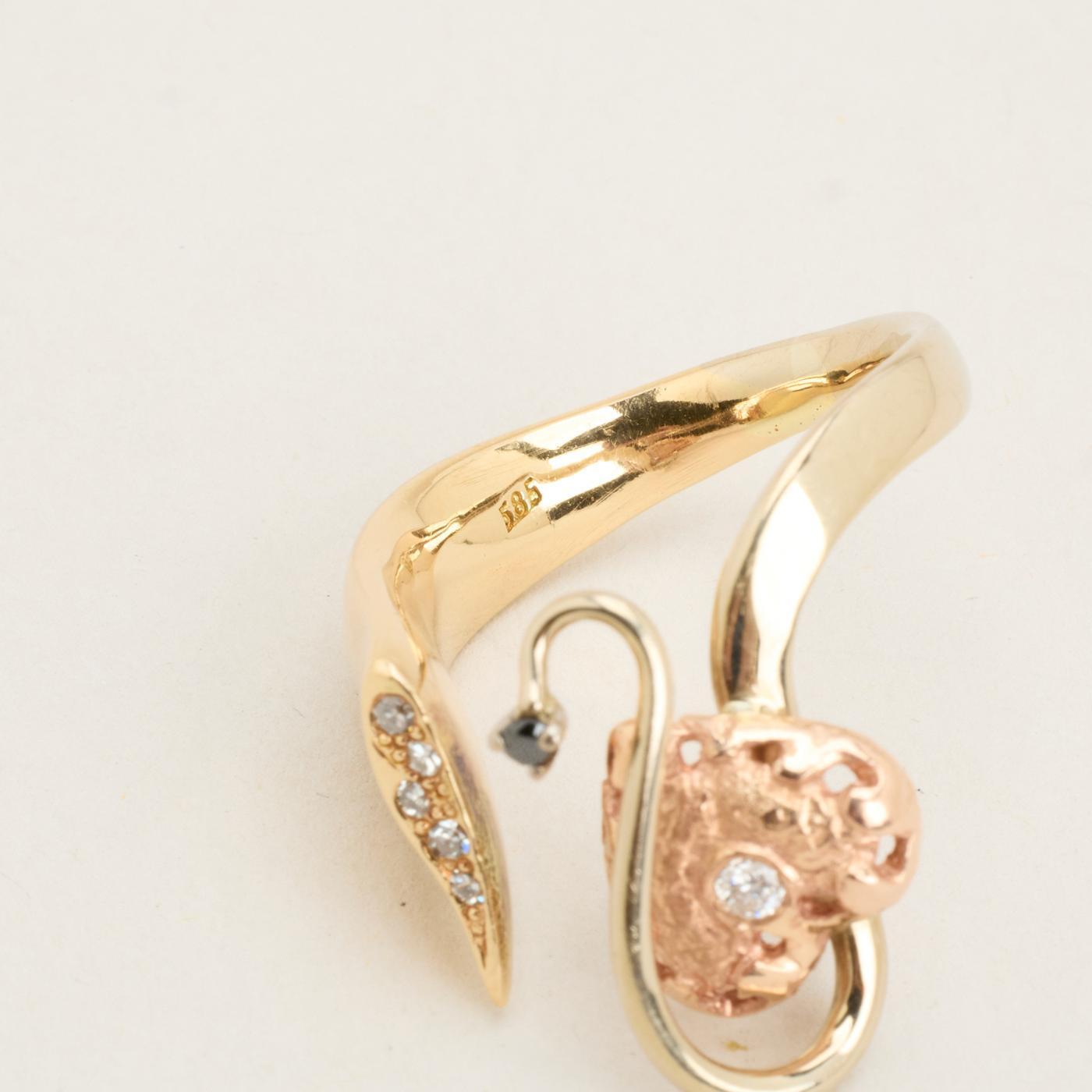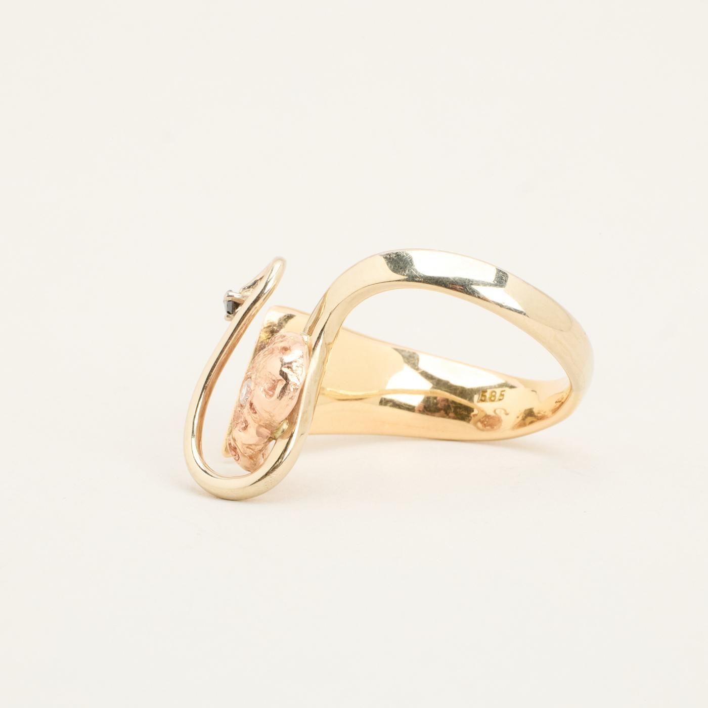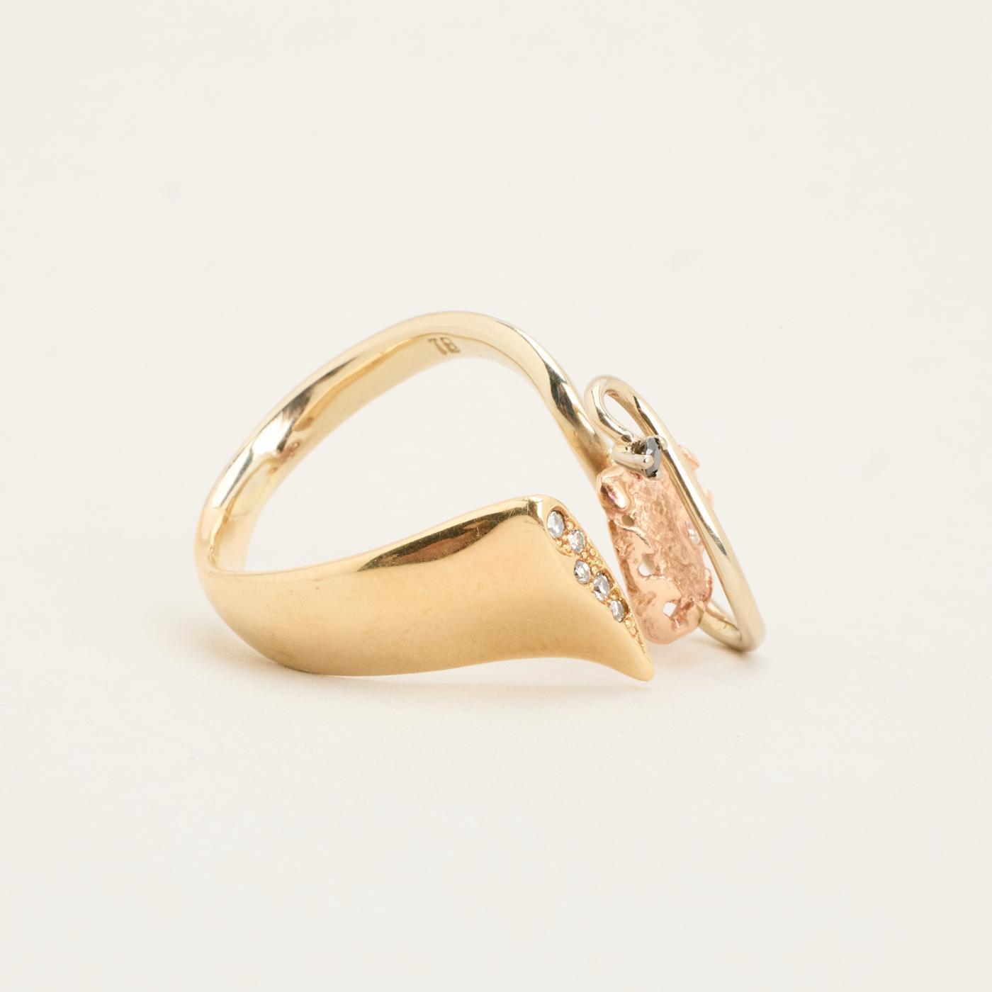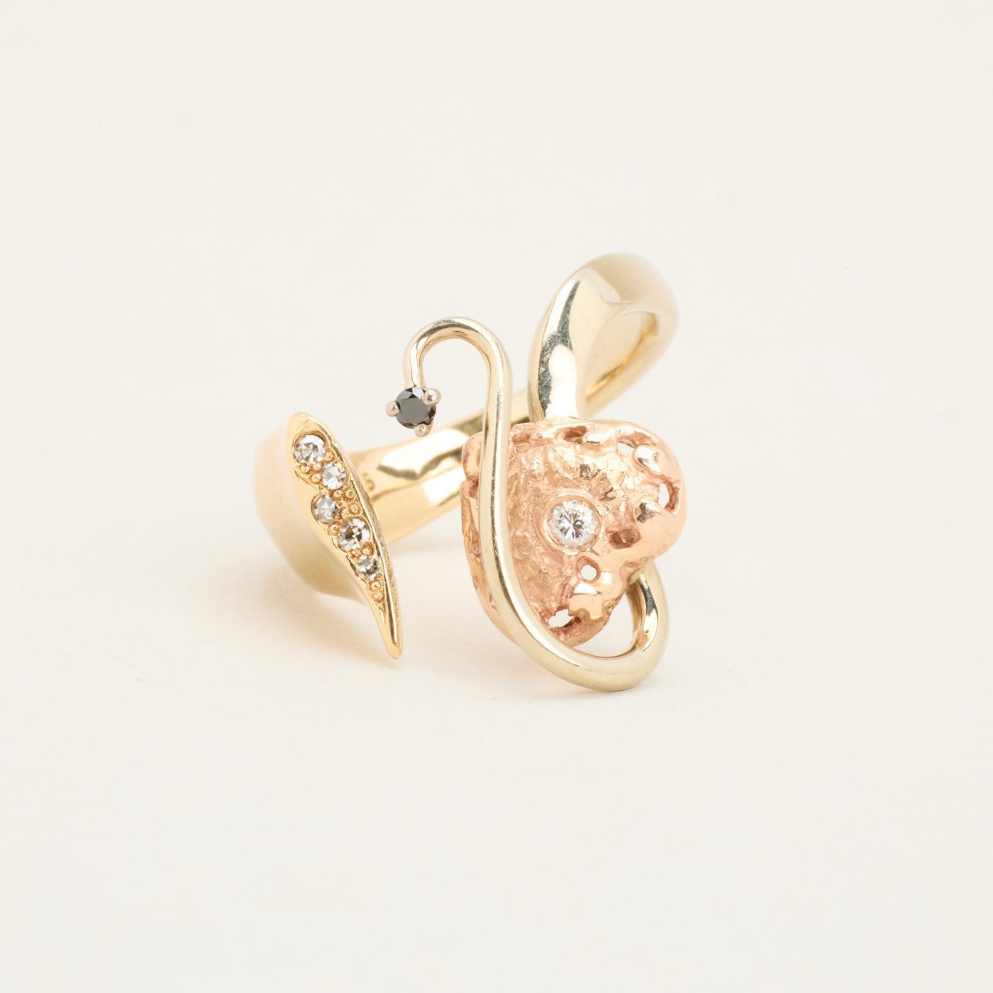Hjertering i 14K guld og rosenguld med diamanter (0.08 ct), Str. 58