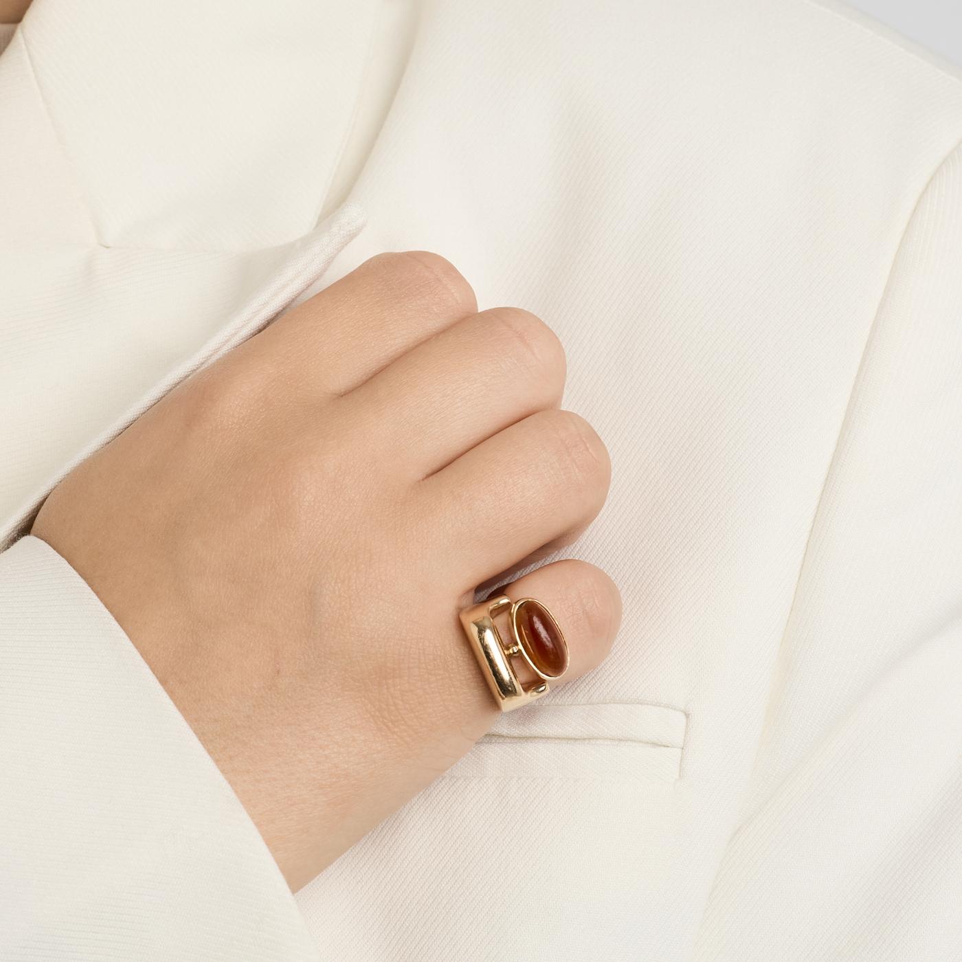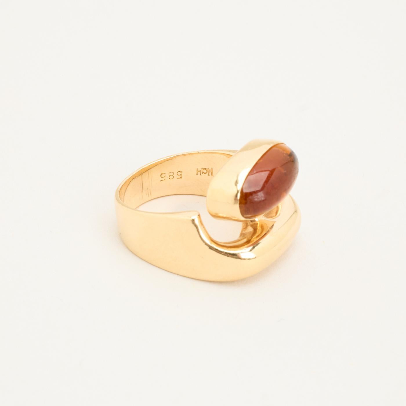 Statement ring i 14K guld med en rav, str. 48 - 49, 7.6 g