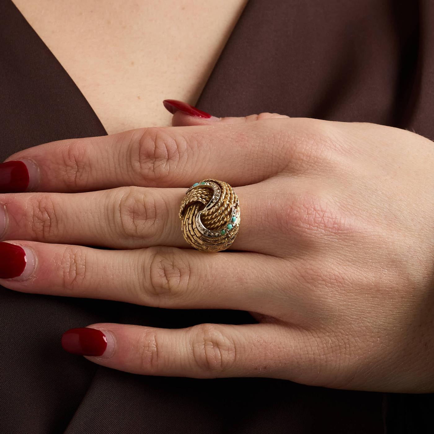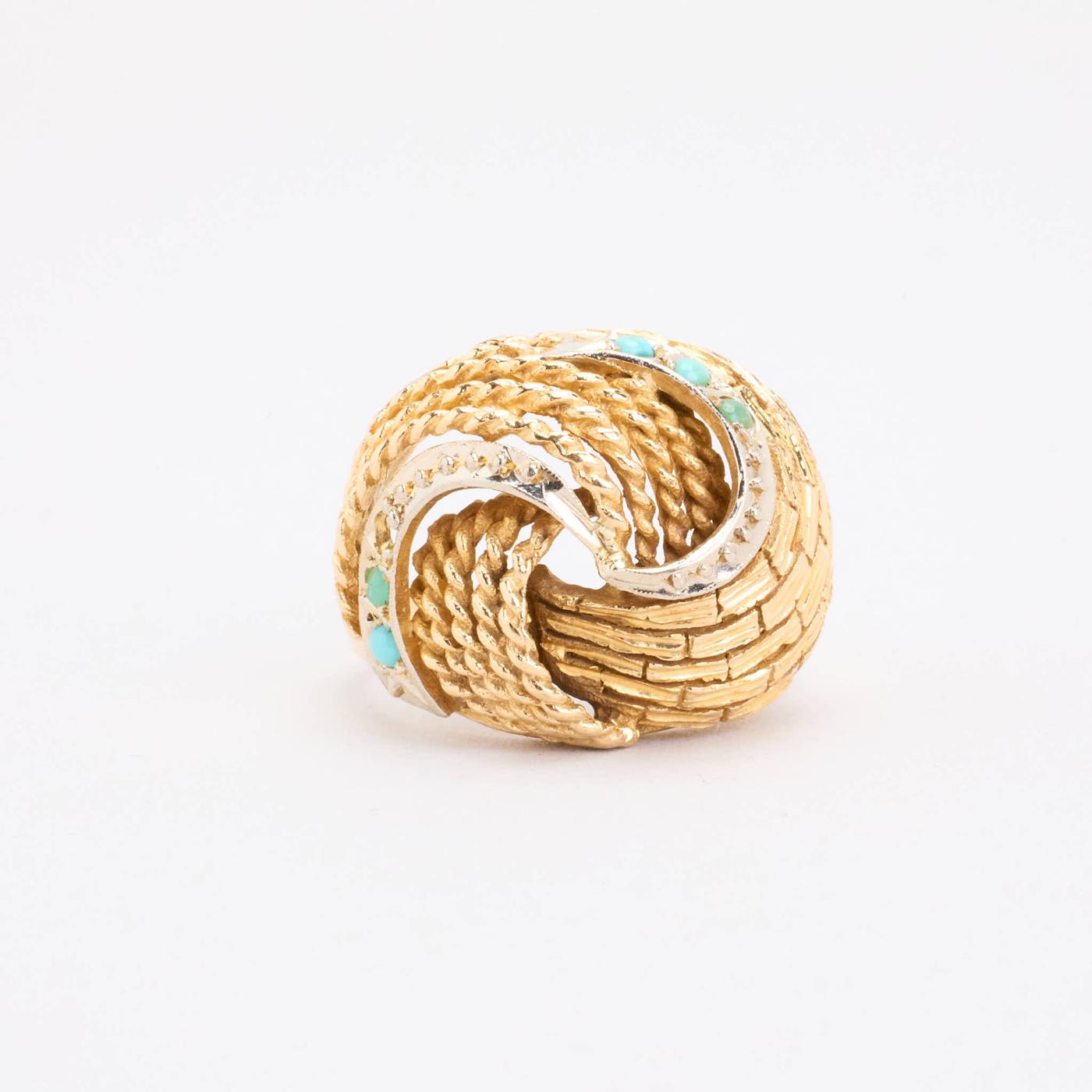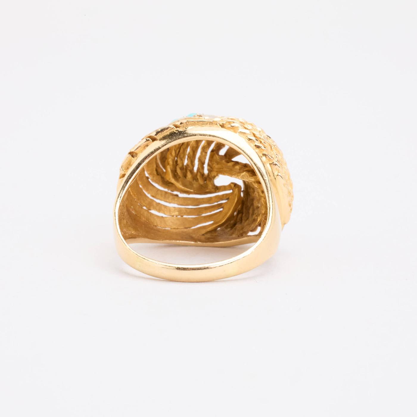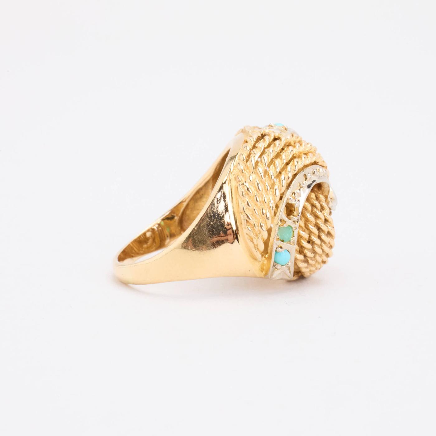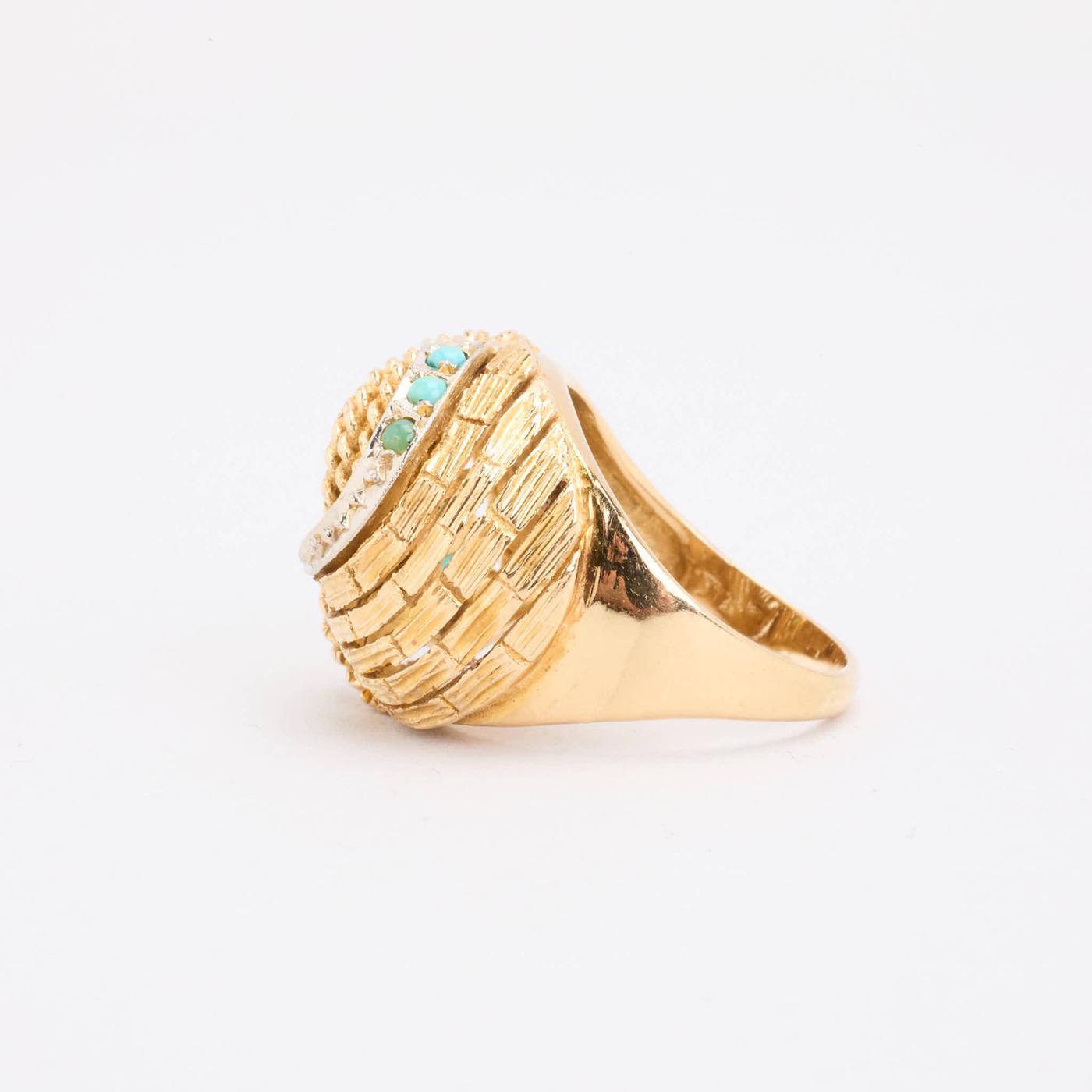 Gypsyring i 18K guld og hvidguld med flere turkiser, Str. 52