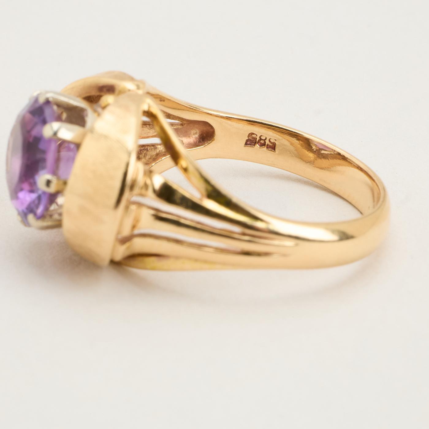 Cocktailring i 14K guld med lilla sten, Str. 54