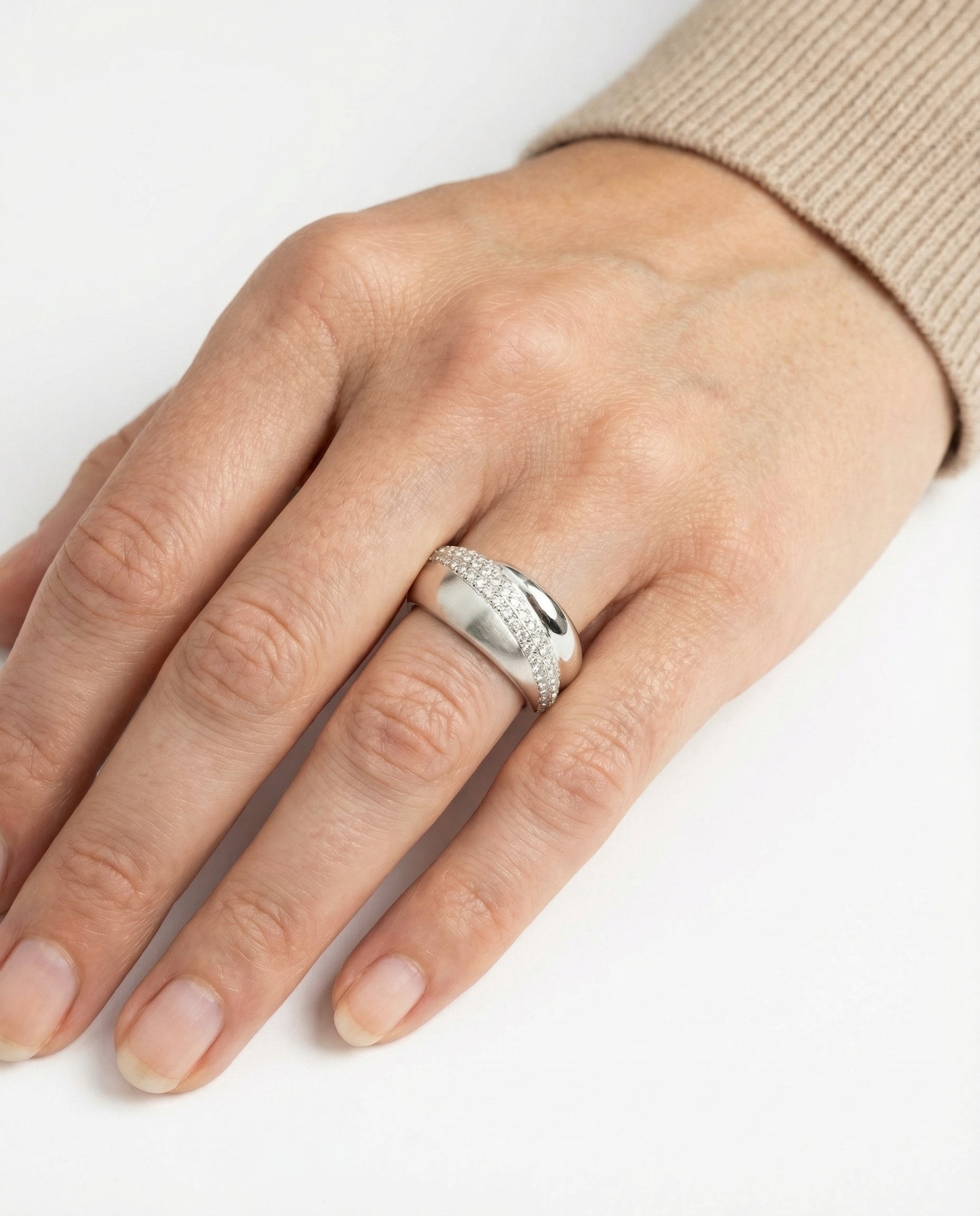 Pavé ring i 14K hvidguld og diamanter (0.63 ct), Str. 58