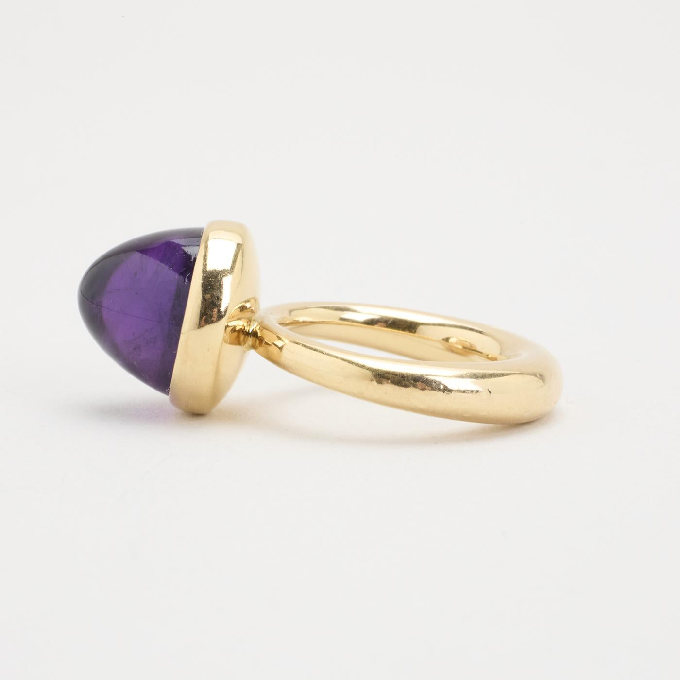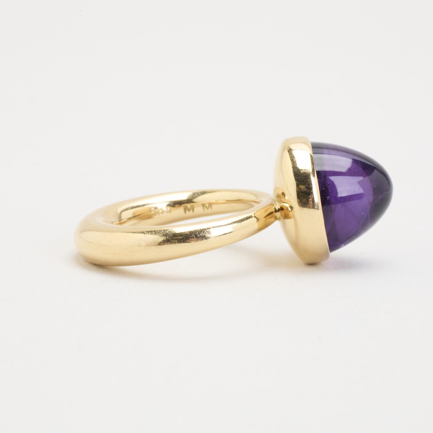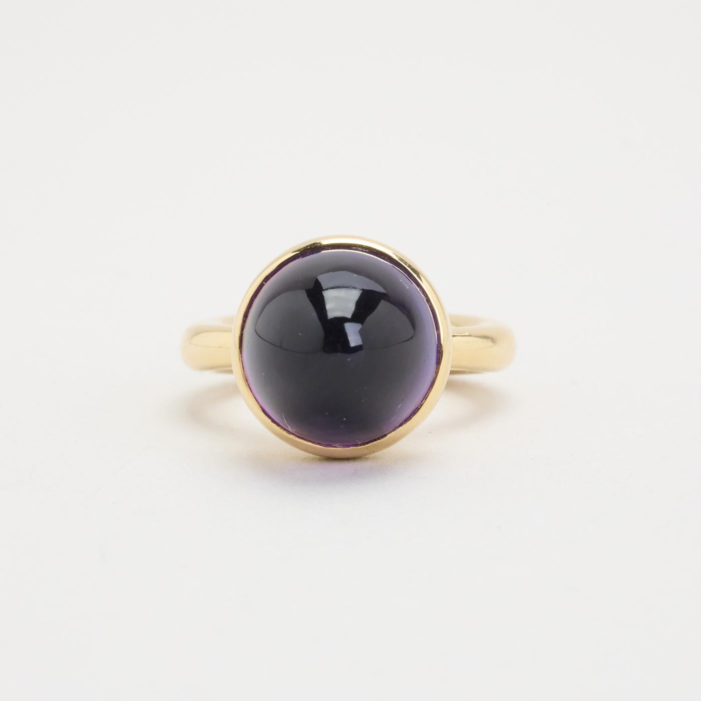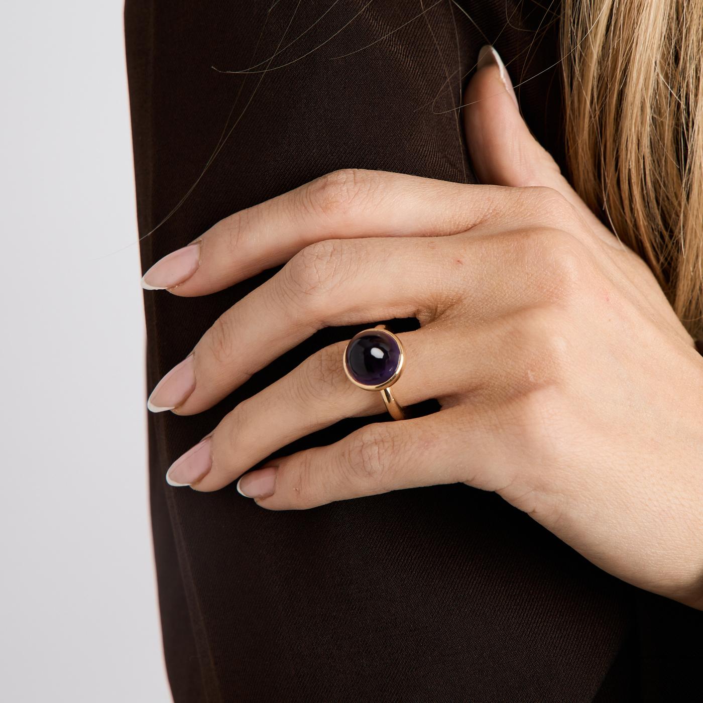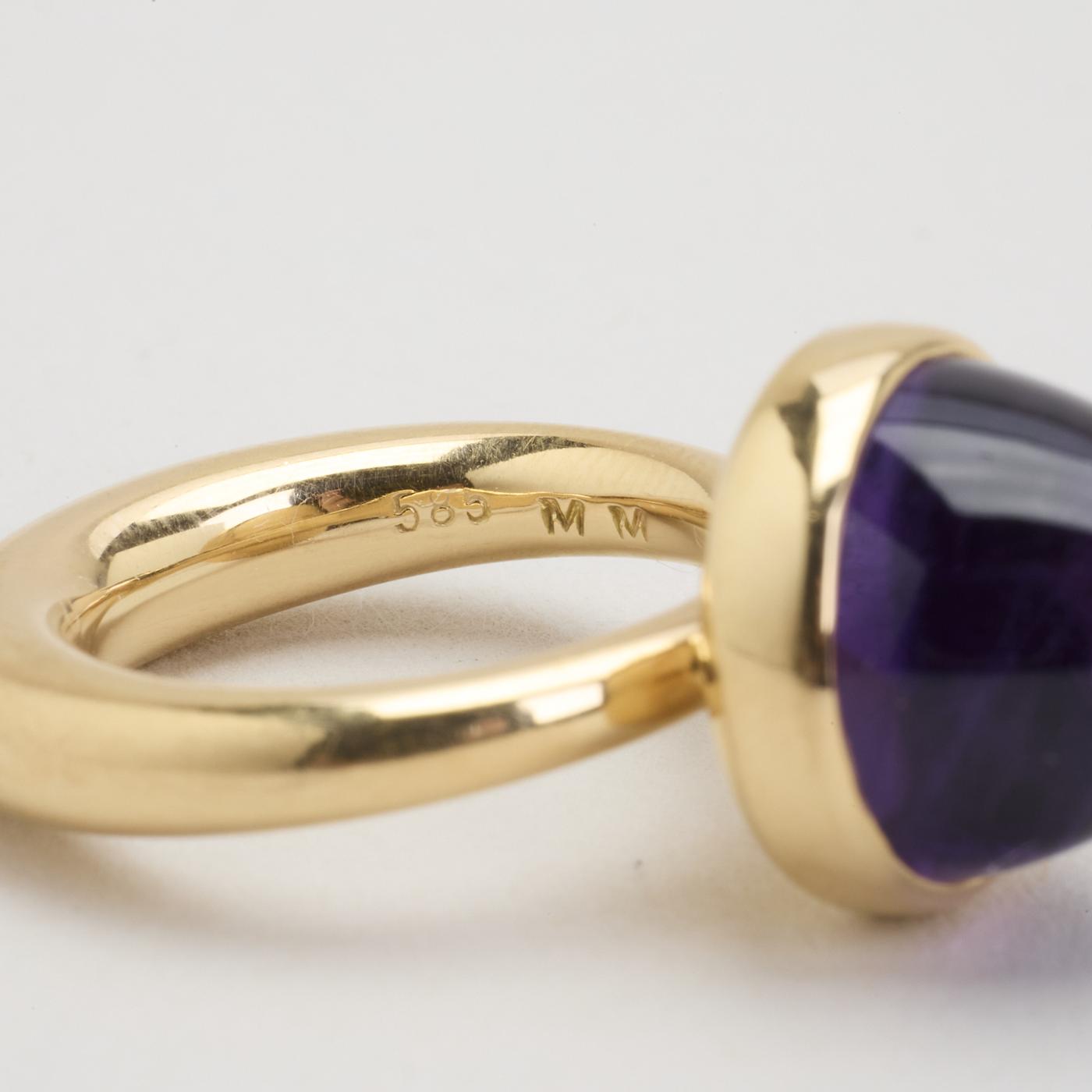 Cocktailring i 14K guld med en lilla sten, Str. 47