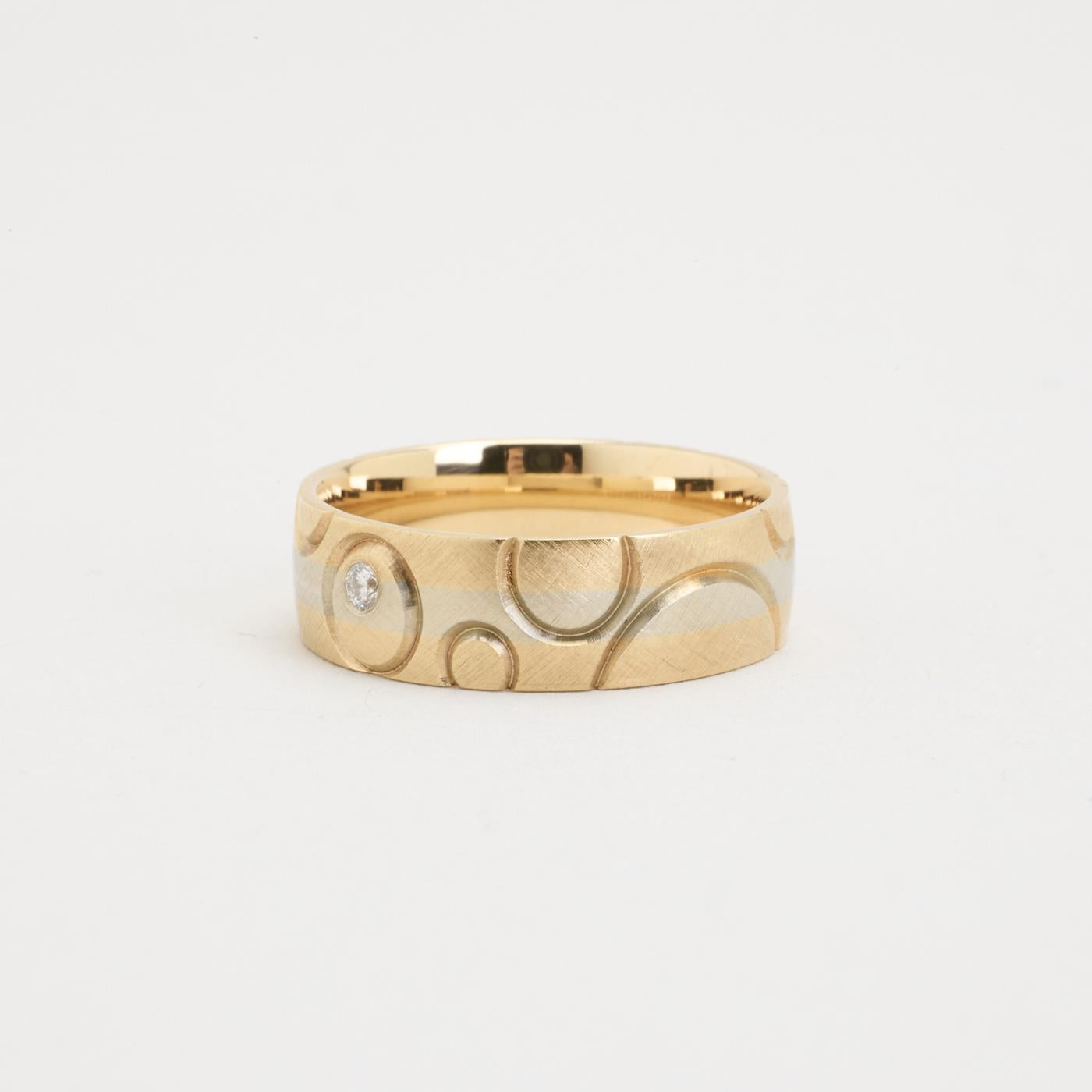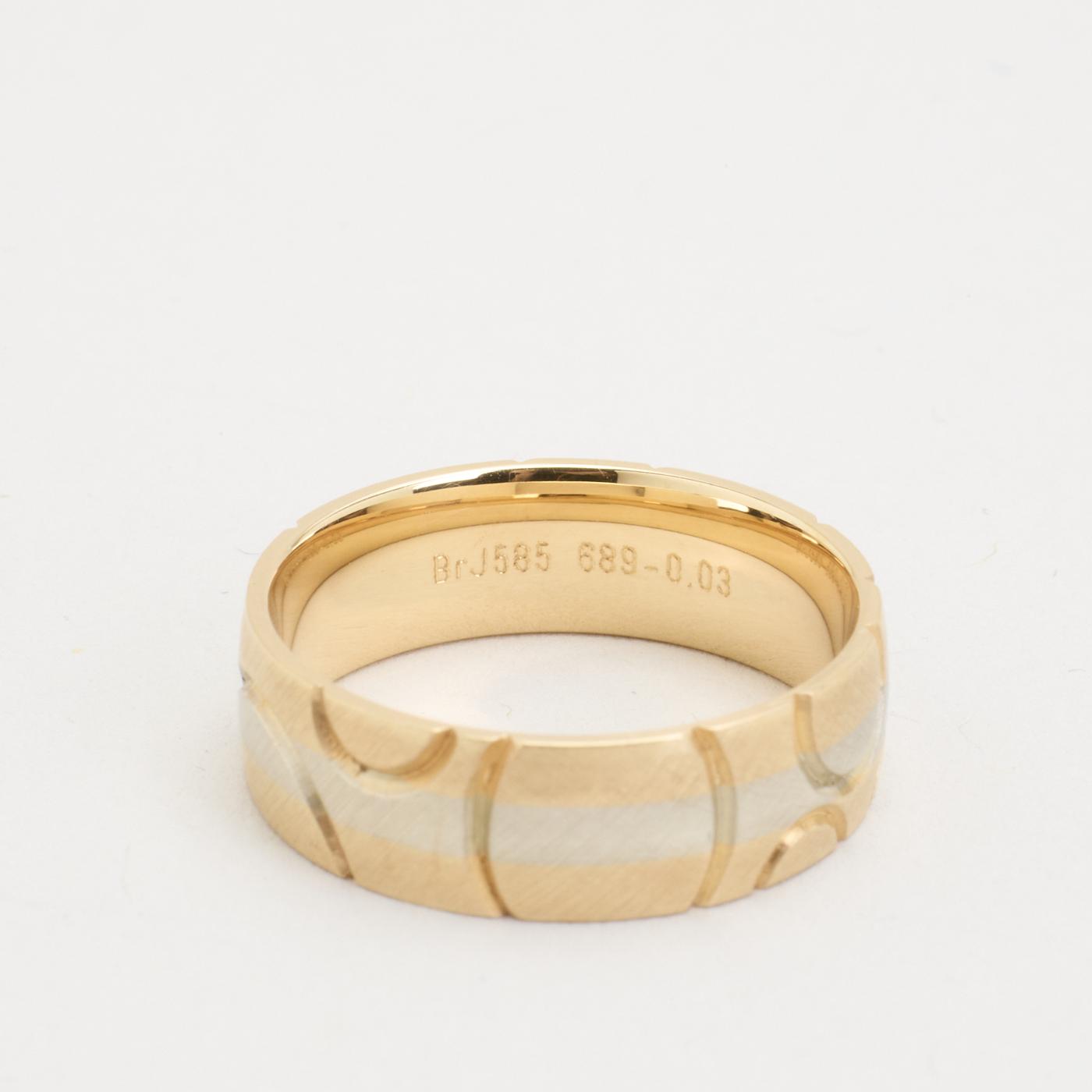 Bånd i 14K guld og hvidguld med en diamant (0.03 ct), Str. 54