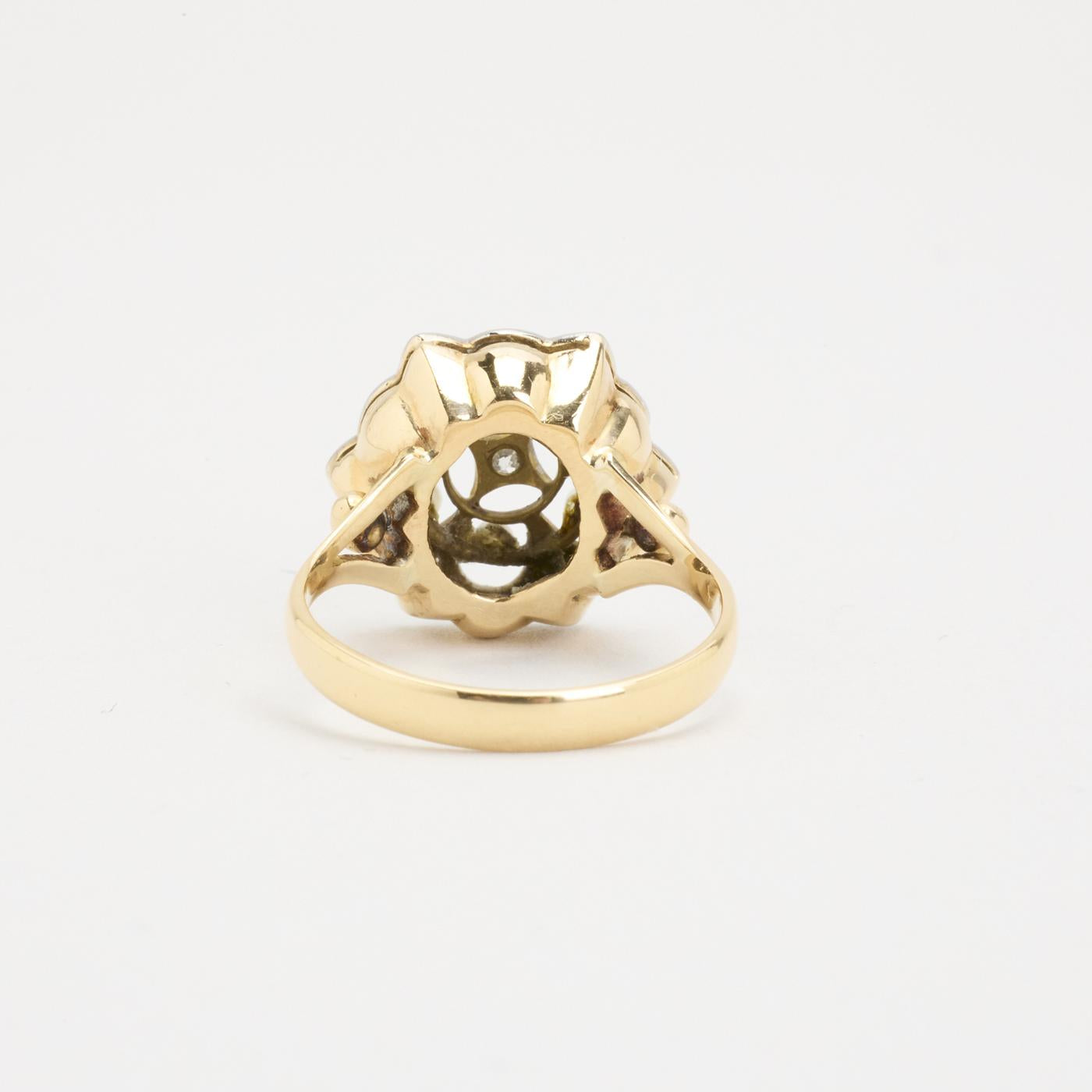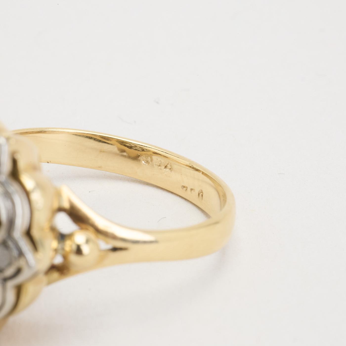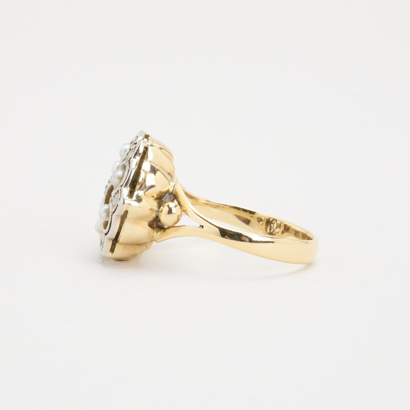 Rosetring i 18K guld og hvidguld med diamanter (0.05 ct) og perler, Str. 53