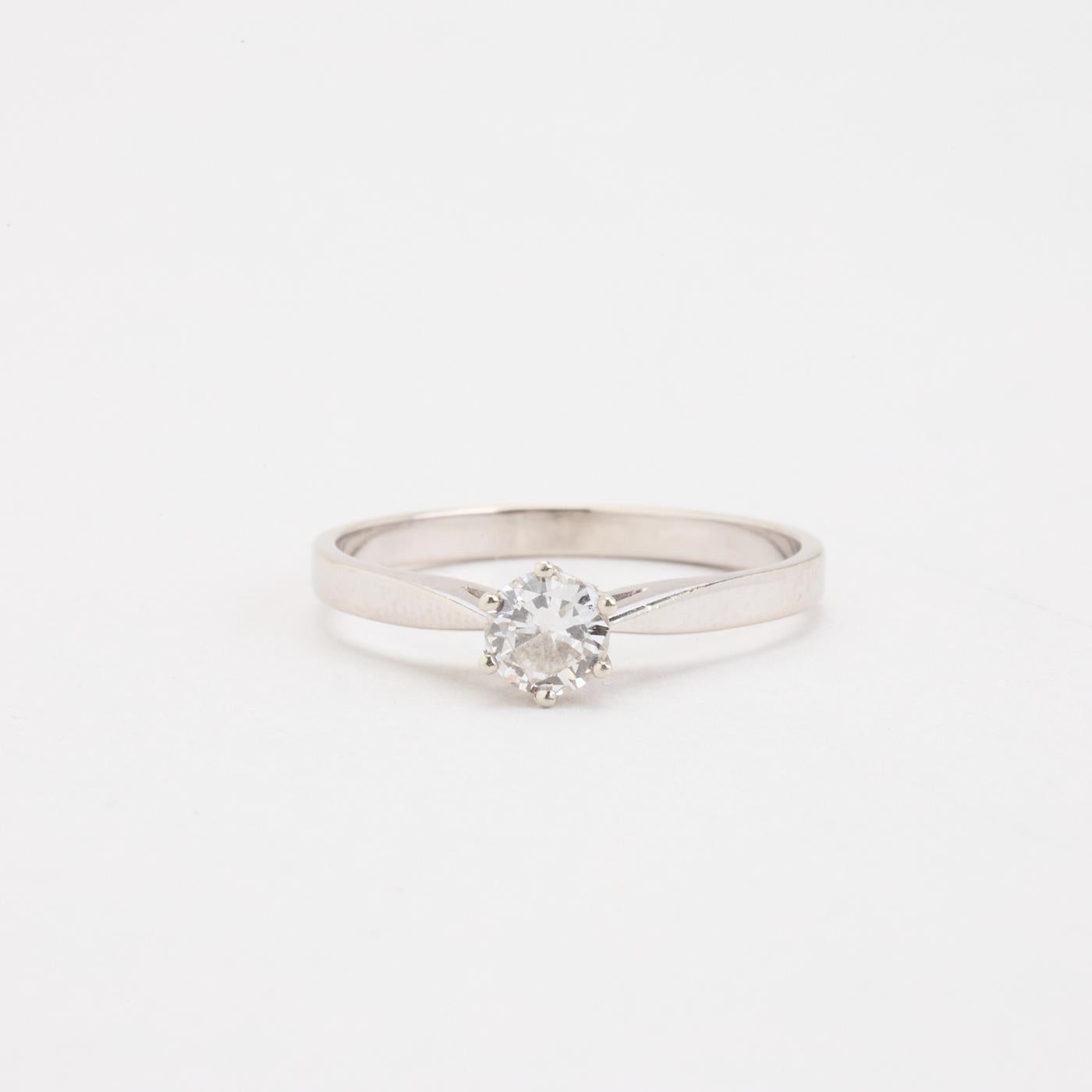 Solitairering i 14K hvidguld med en diamant (0.35 ct), Str. 55