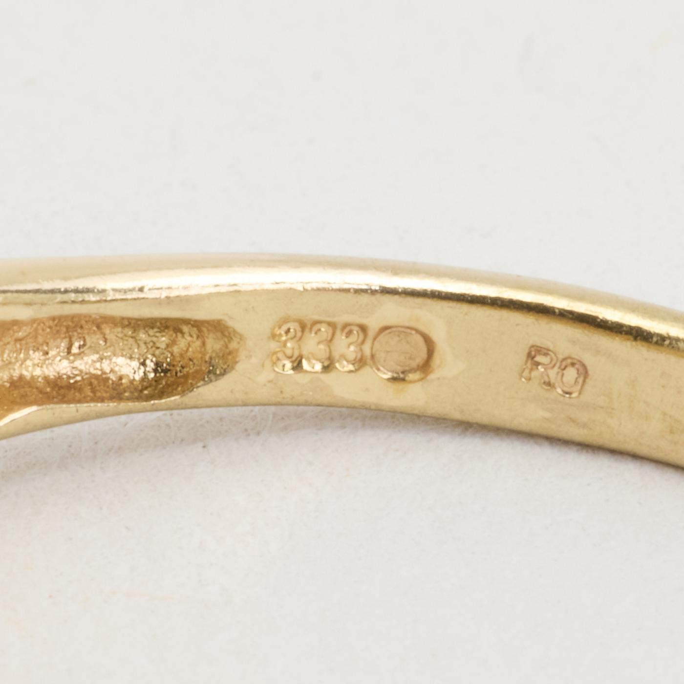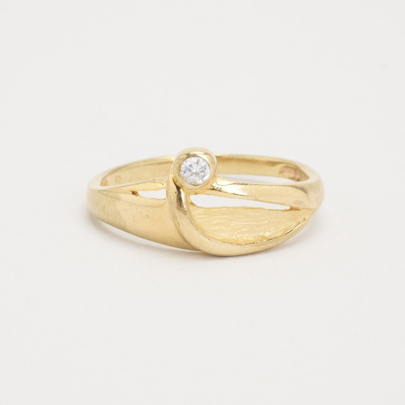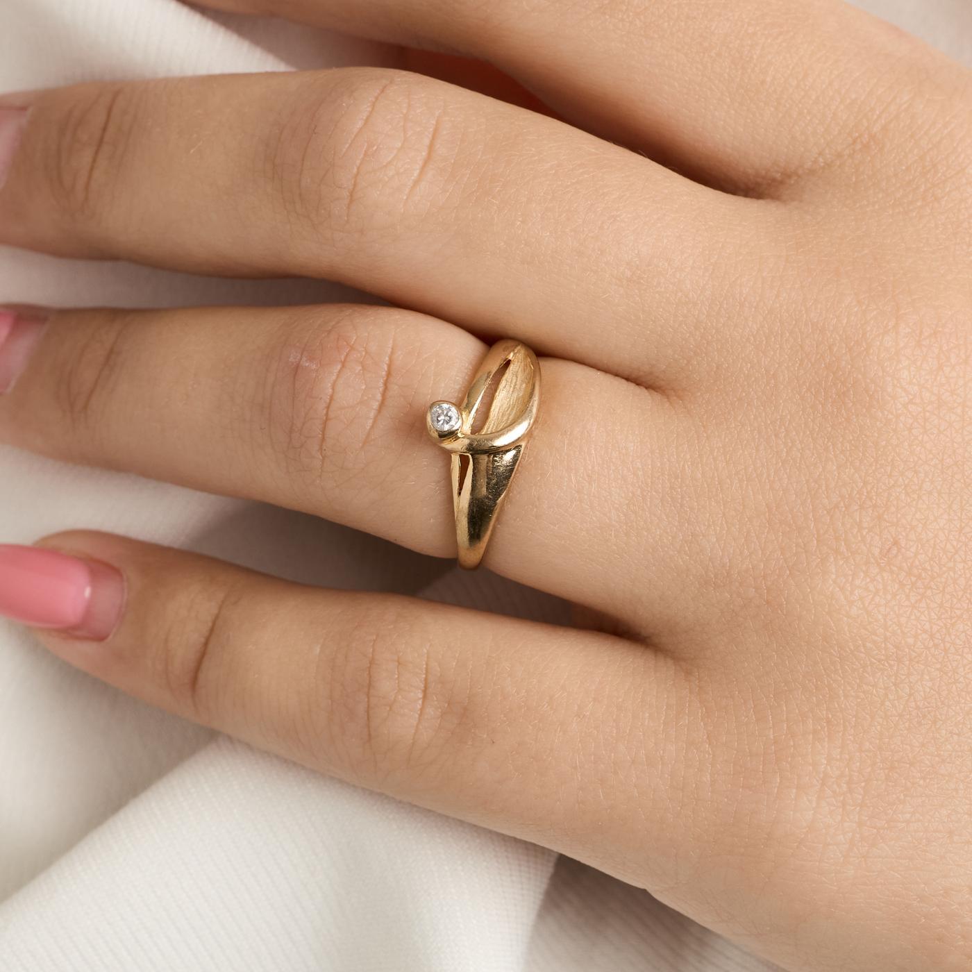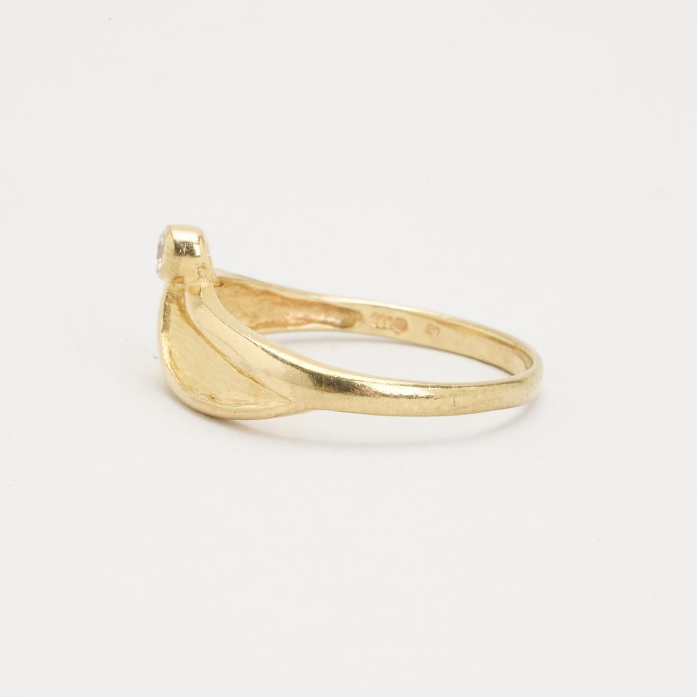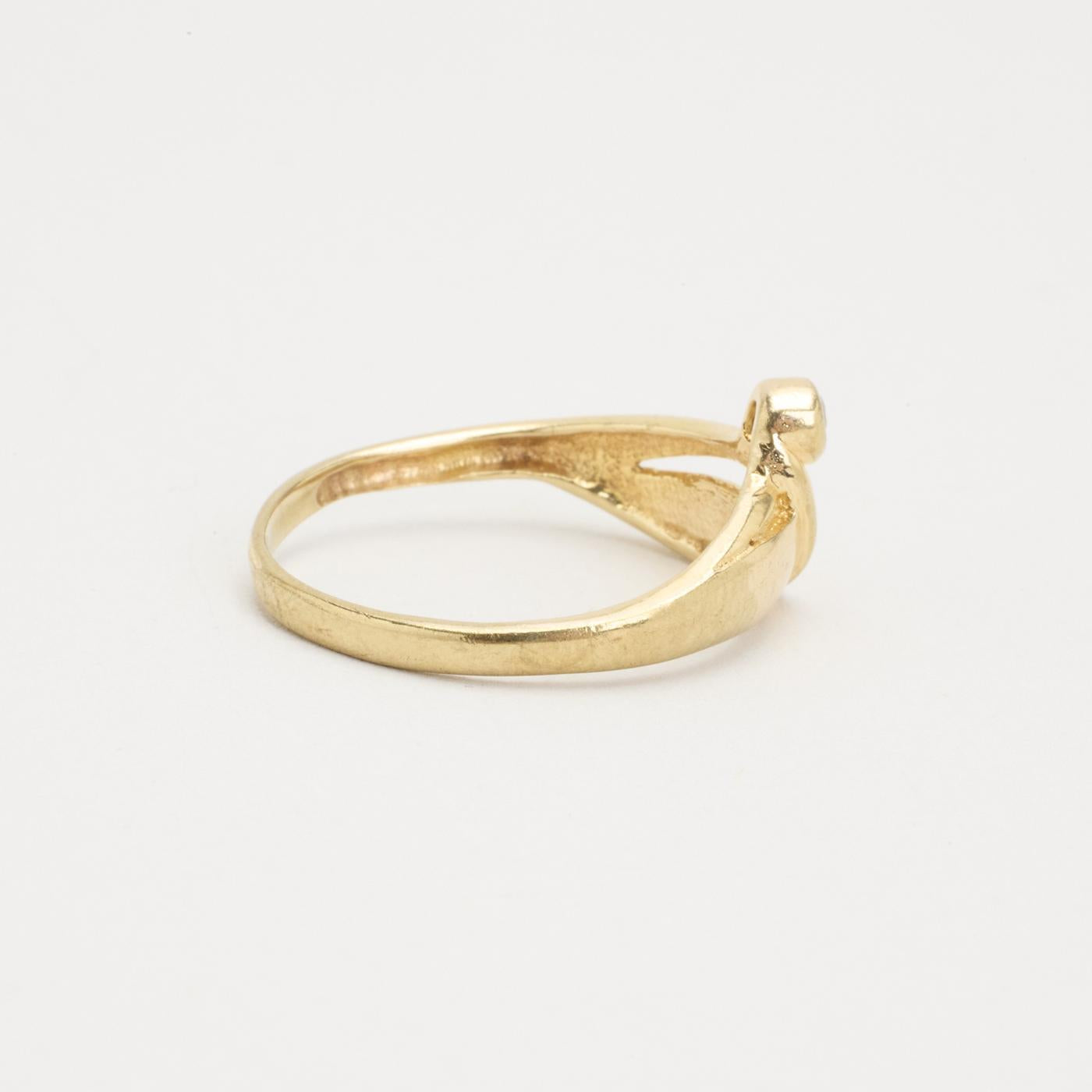 Crossoverring i 8K guld med en hvid sten, Str. 53