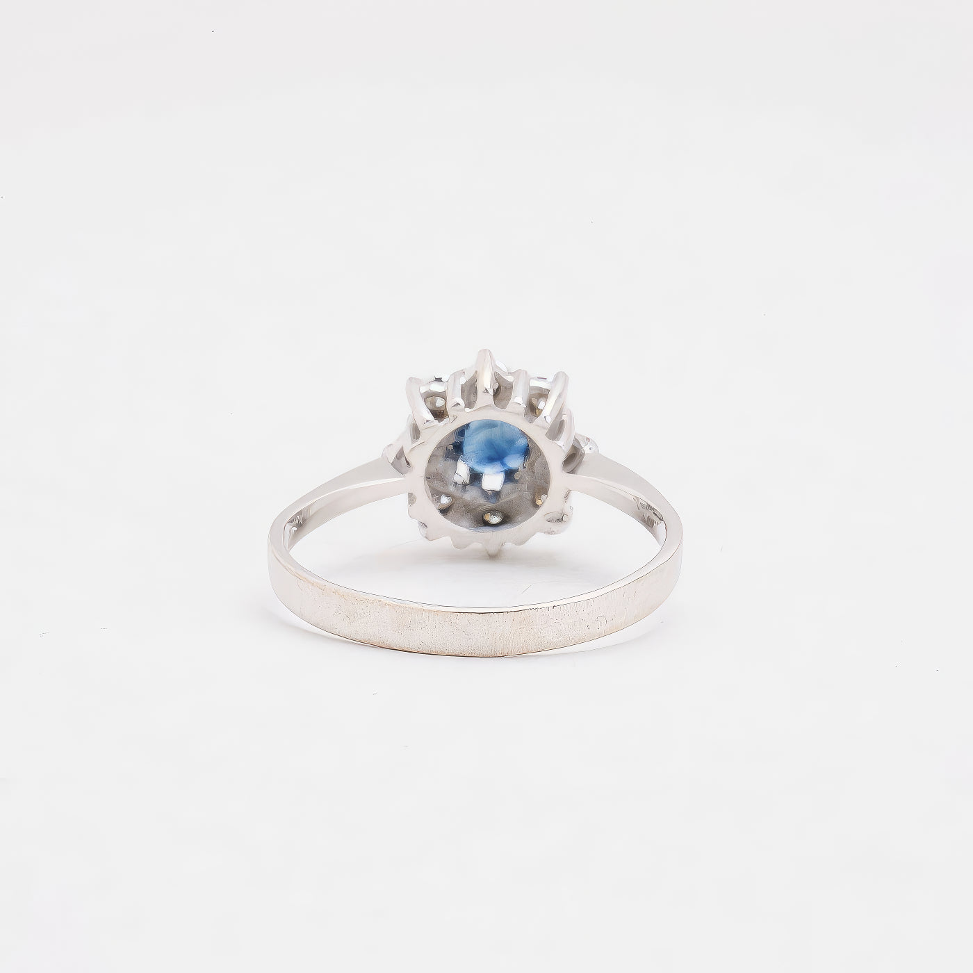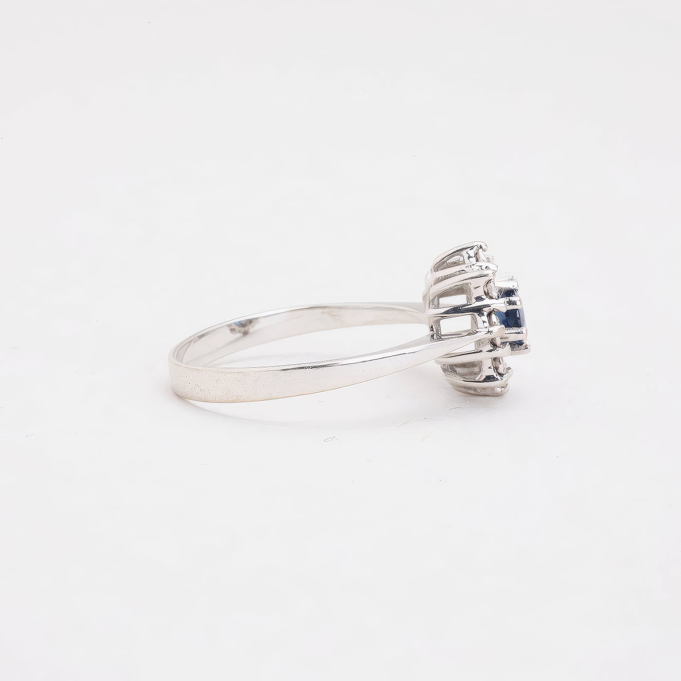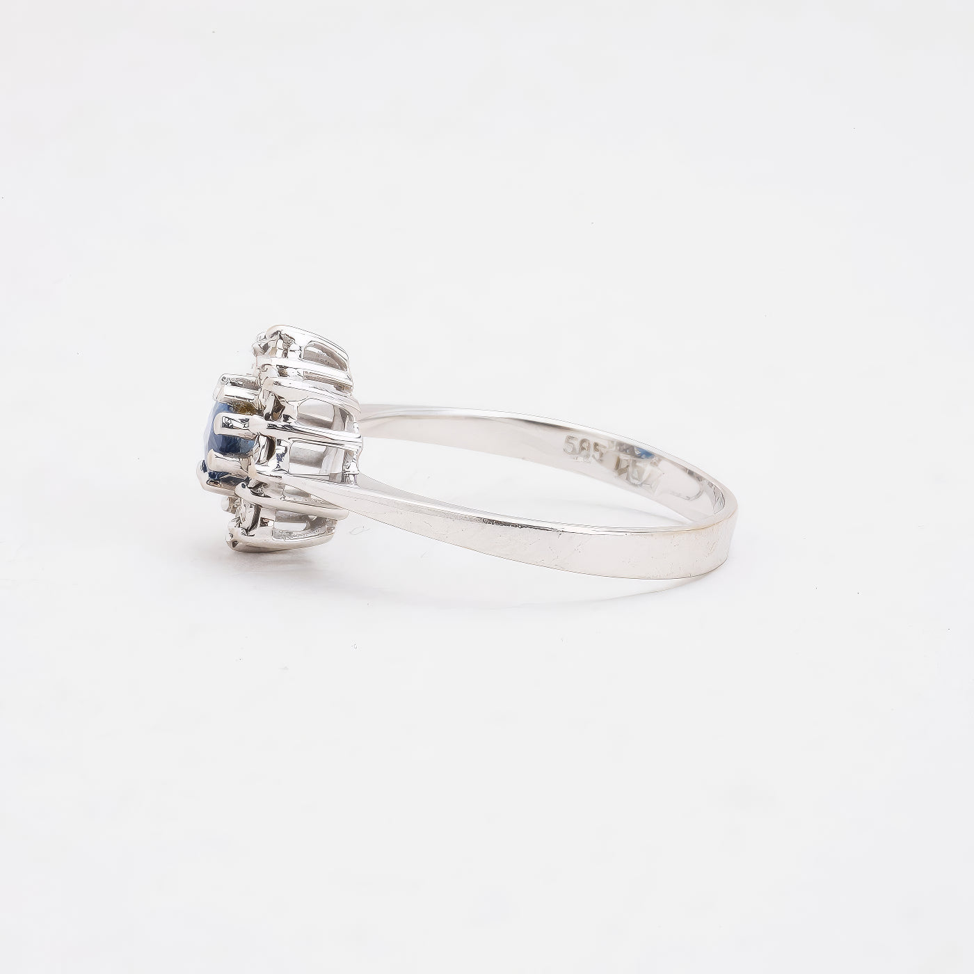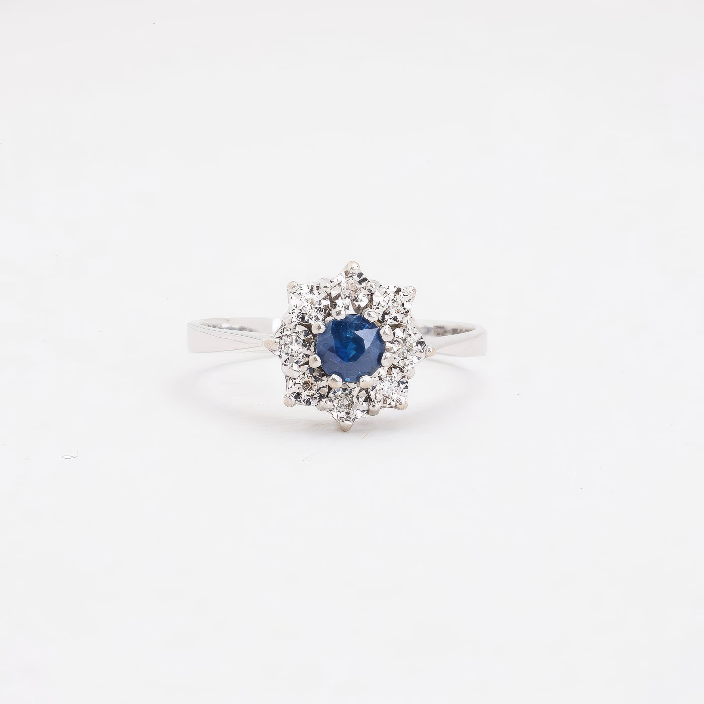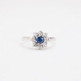 Rosetring i 14K hvidguld med diamanter (0.04 ct) og en blå safir, Str. 53