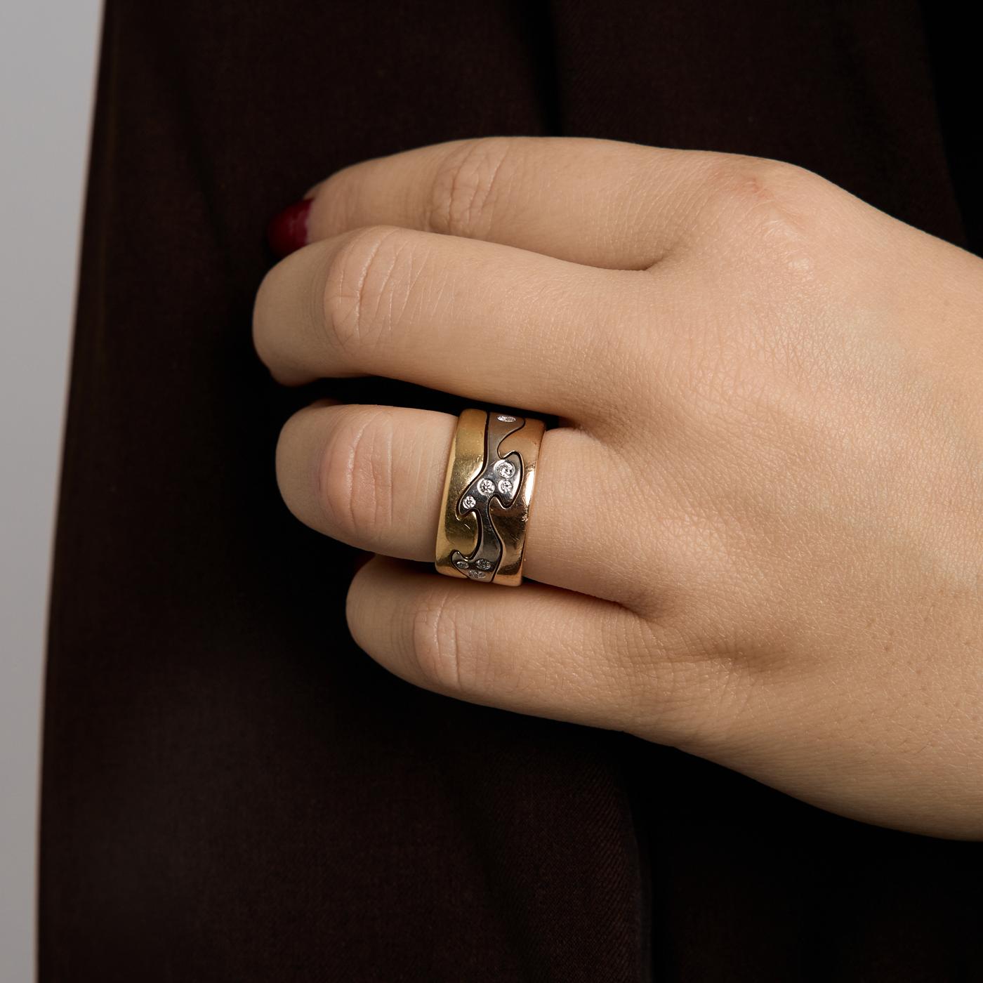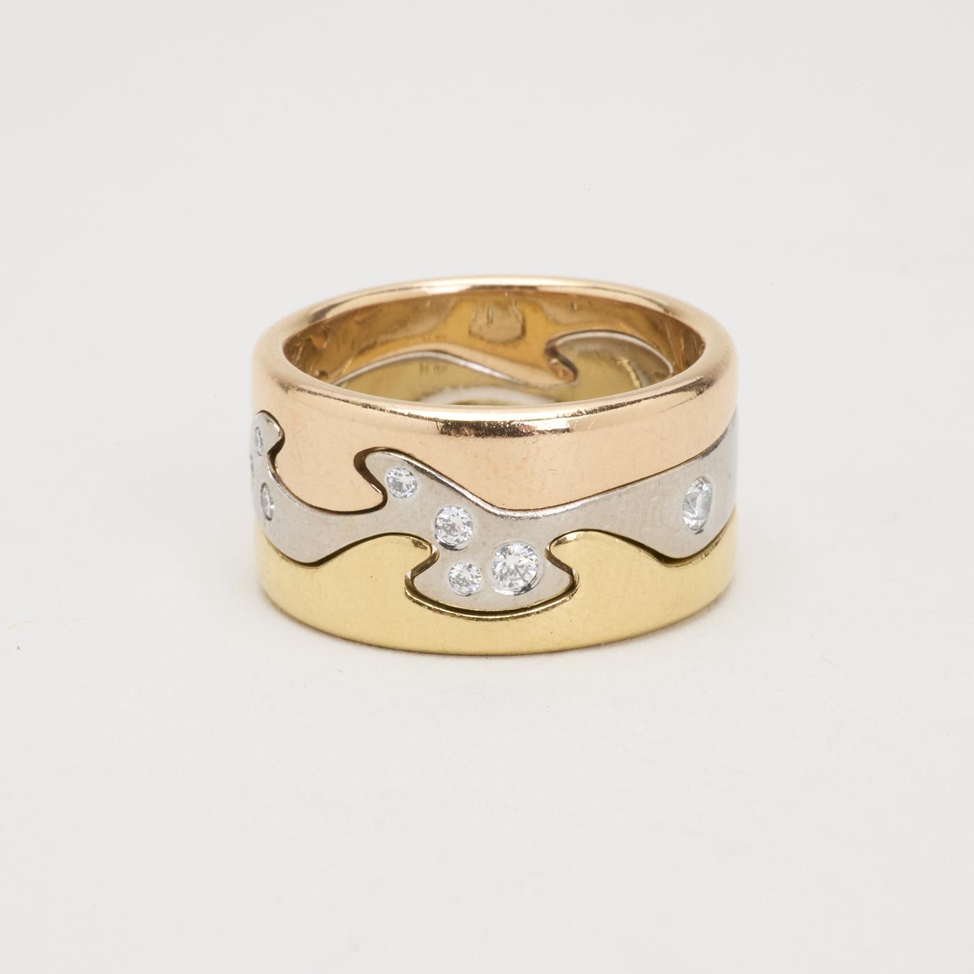 Georg Jensen bånd i 18K hvidguld og roseguld med diamanter (0.16 ct), Str. 54
