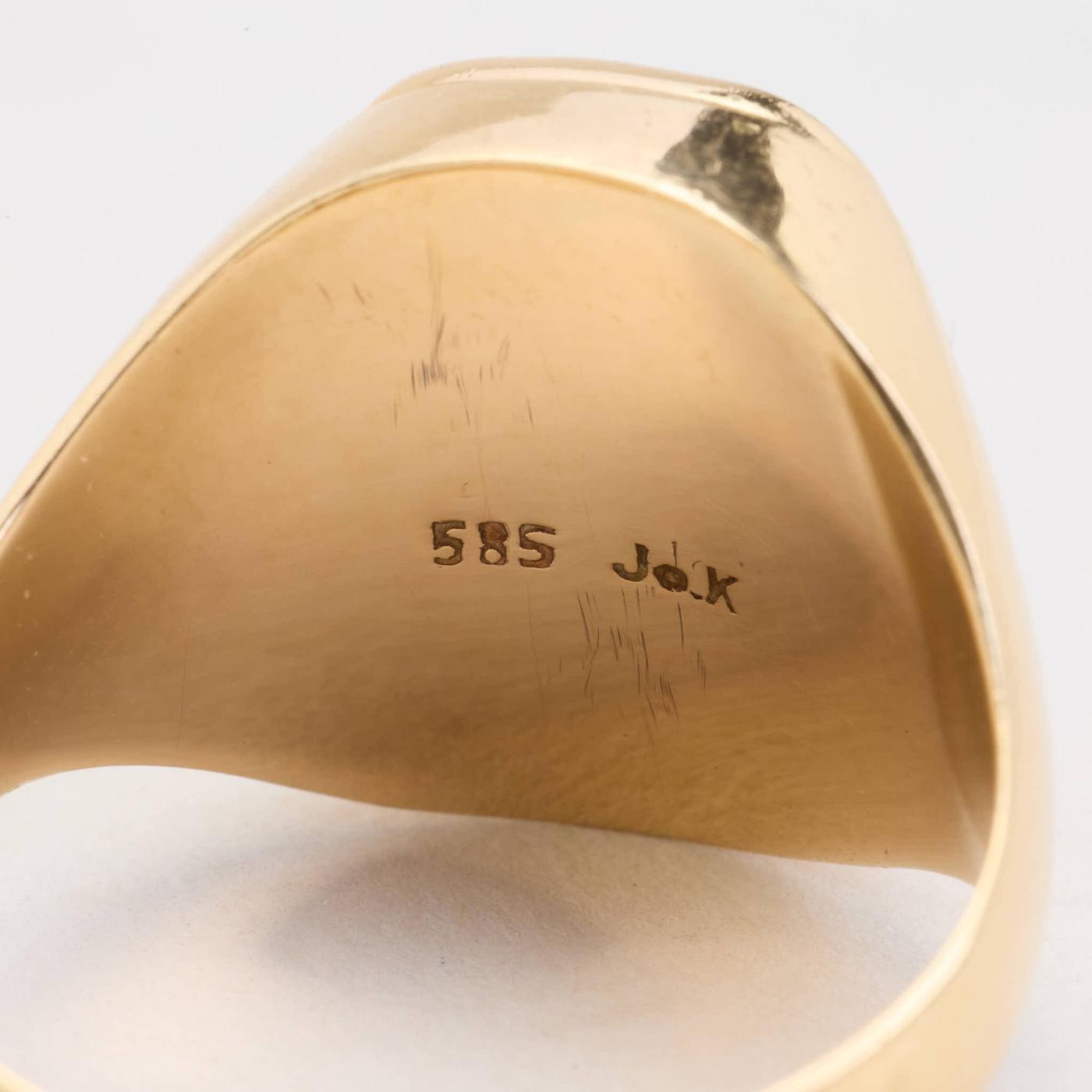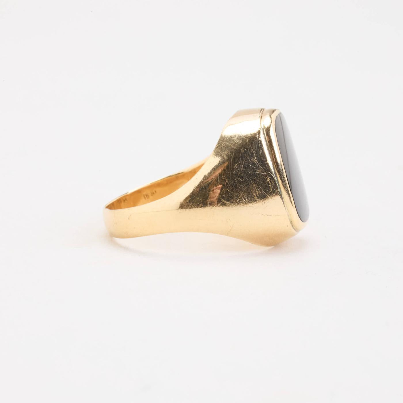 Signetring i 14 karat med en Onyks str. 59