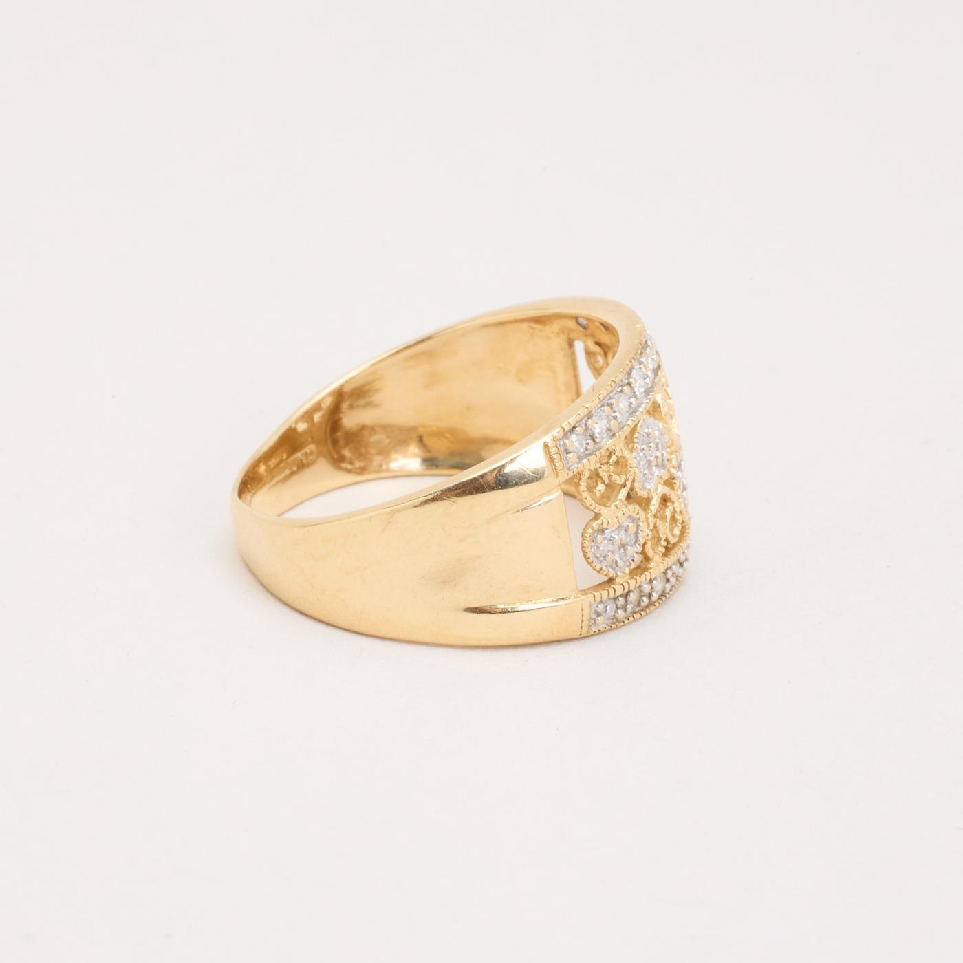 Hjertering i 14K guld med en diamant (0.07 ct), Str. 56