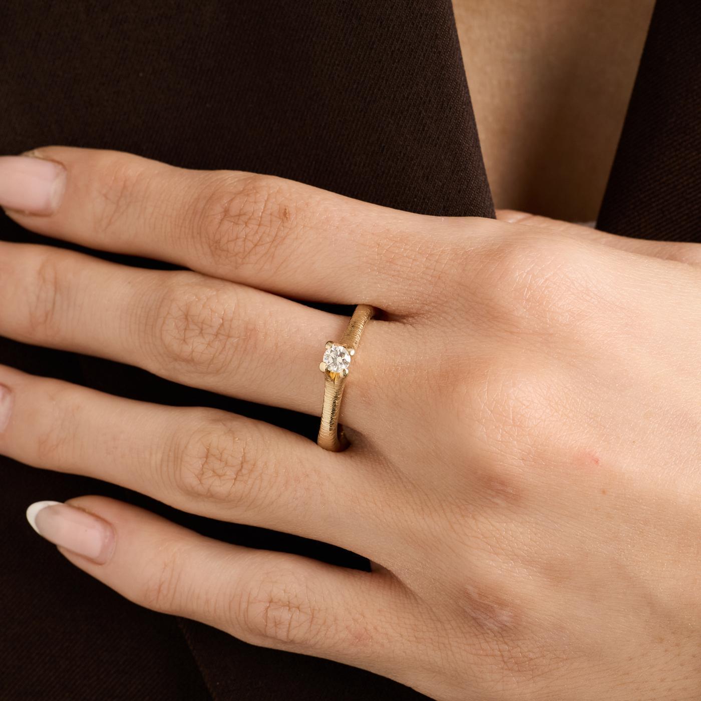Solitairering i 14K guld med en diamant (0.24 ct), Str. 57