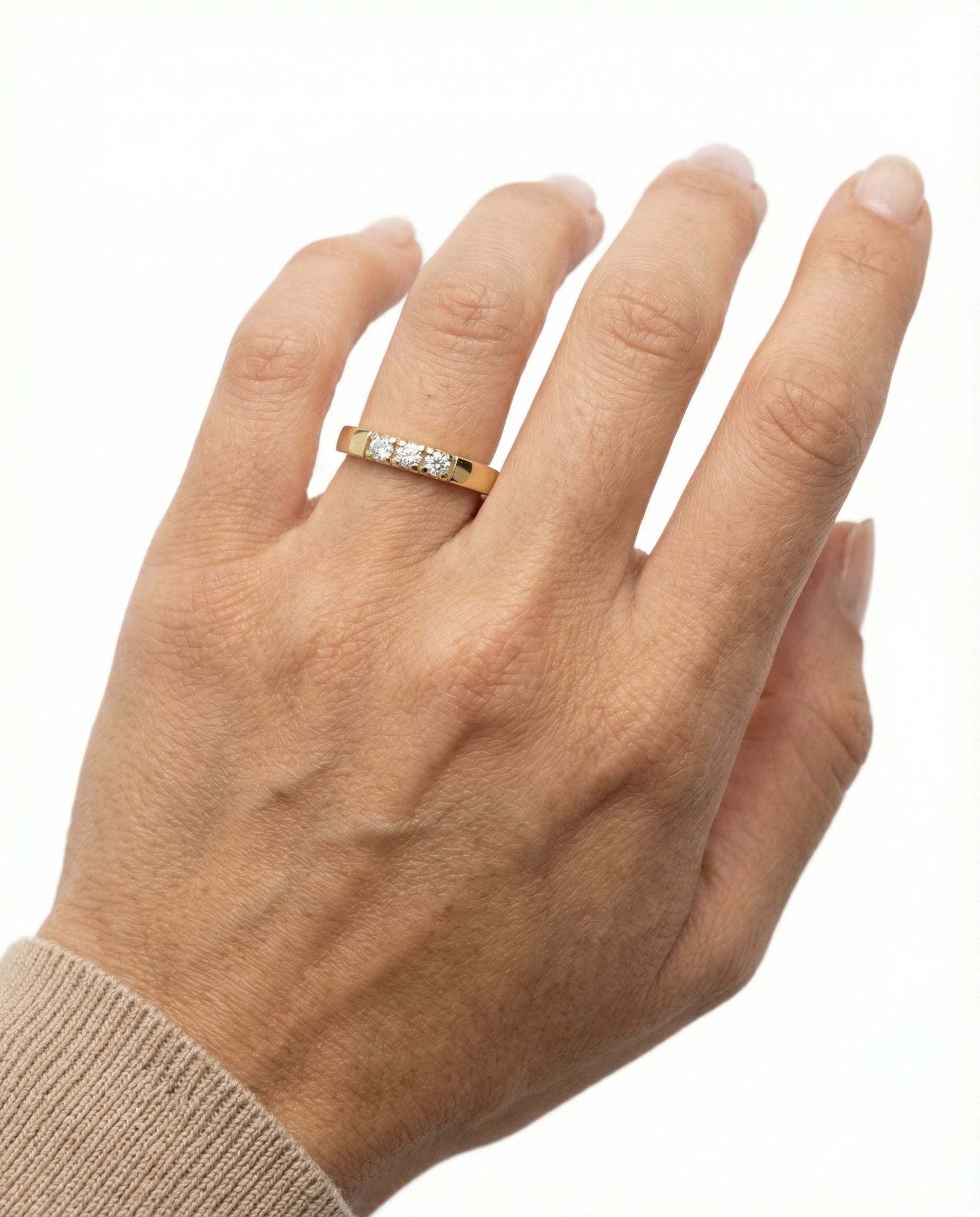 Alliancering i 14K guld med diamanter (0.13 ct), Str. 53