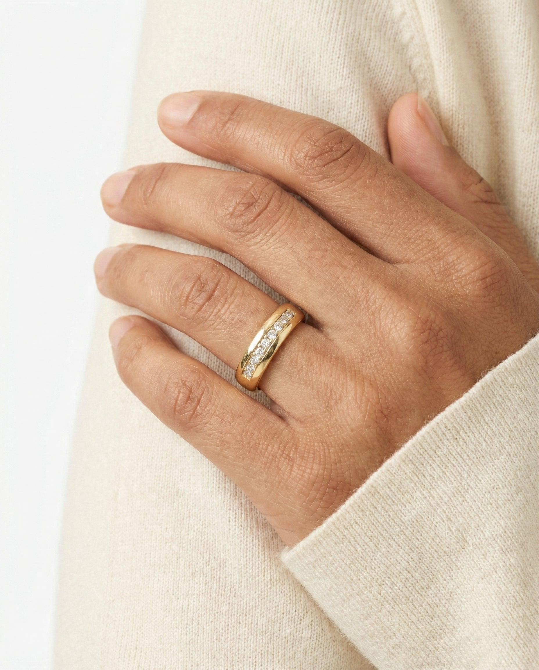 Bånd i 14K guld med diamanter (0.11 ct), Str. 54