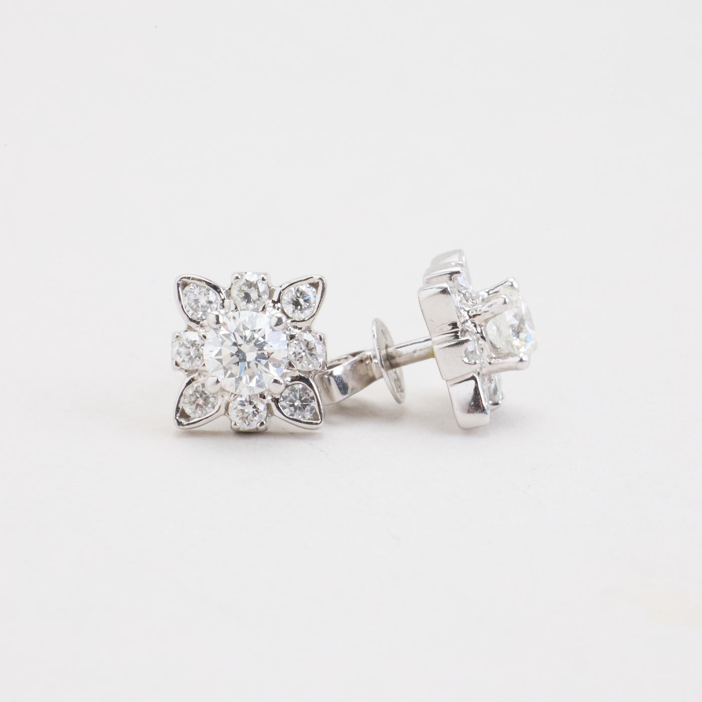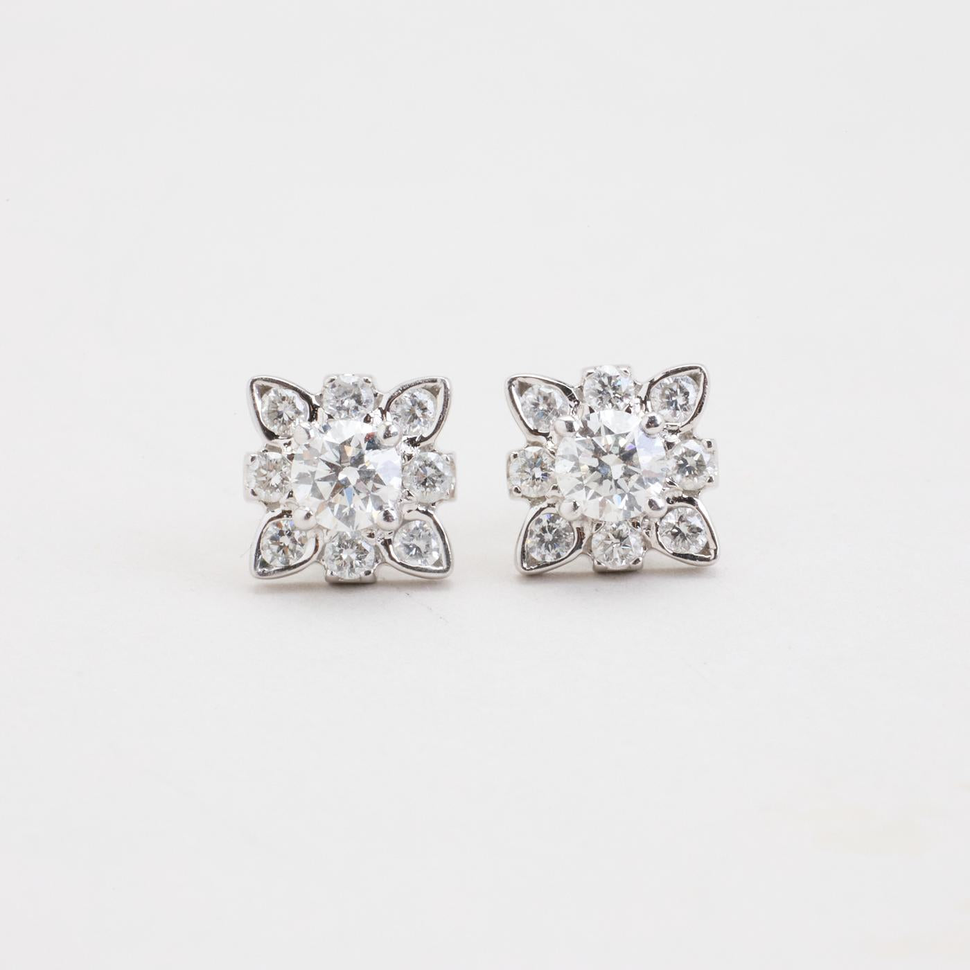Roset øreringe i 18K hvidguld med diamanter (0.65 ct), 0.8 cm