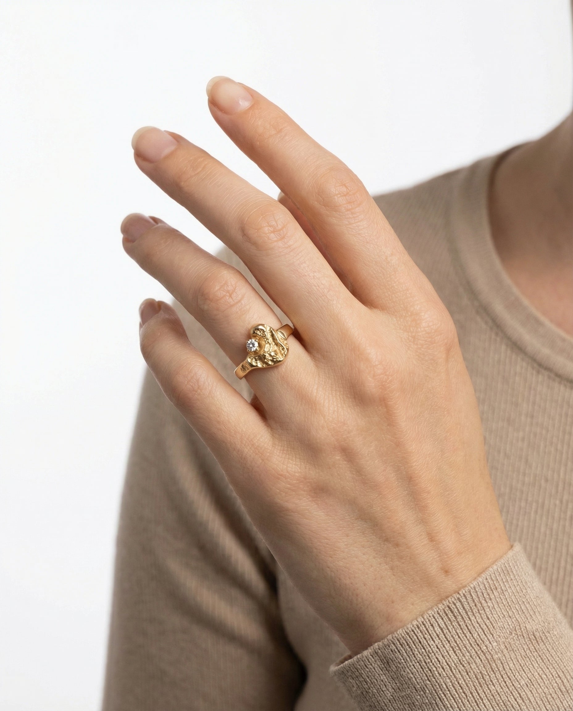 Statement ring i 14K guld med zircon, Str. 57